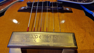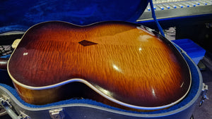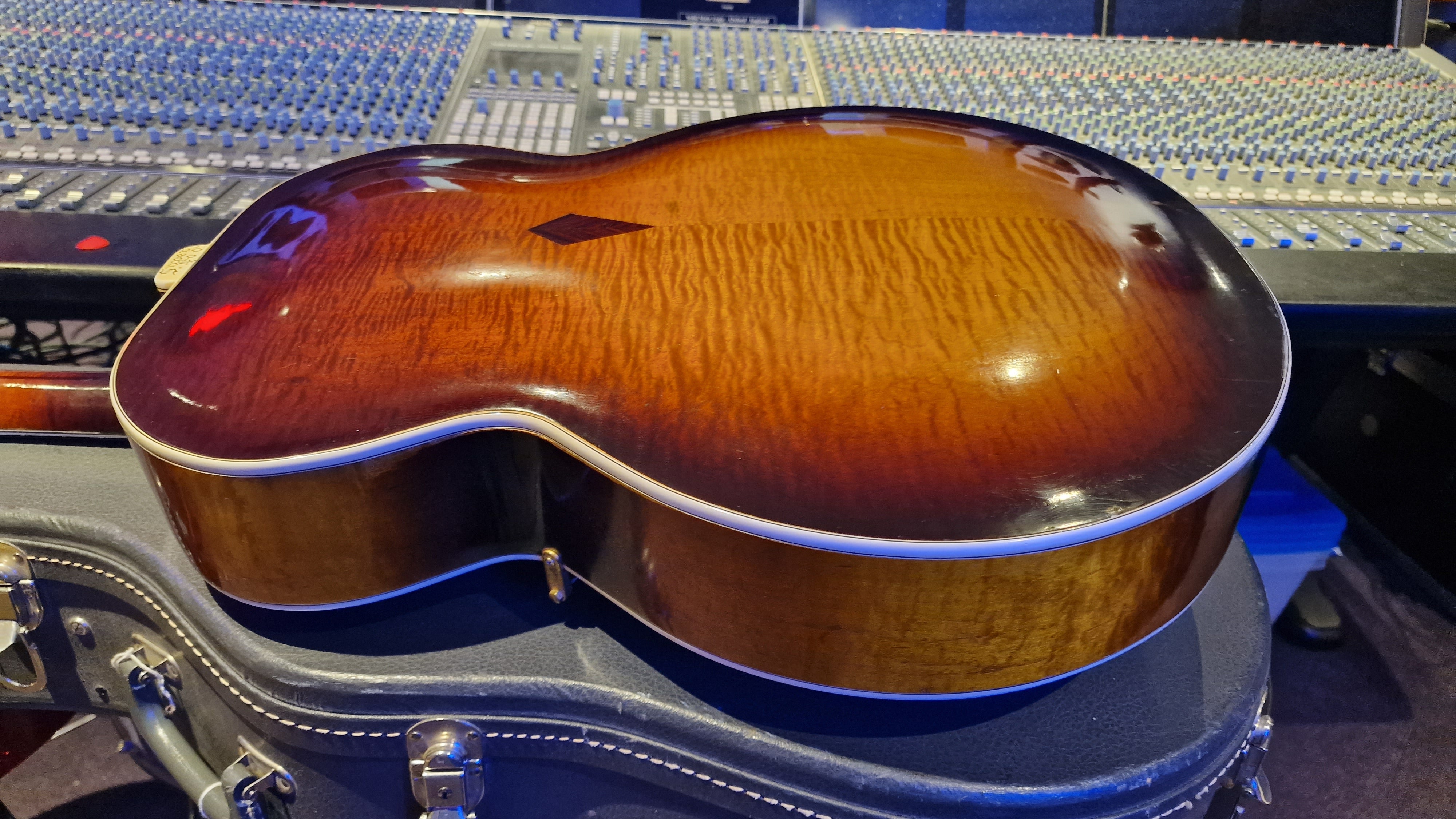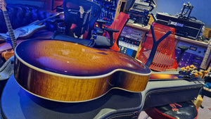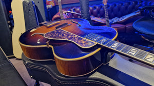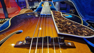 This guitar has started to go viral on our TikTok channel, where it currently has 350,000 views! When we showed the guitar to Gibson's Mark Agnesi at the grand opening of the Gibson Garage in London, Mark commented on how remarkable the Kluson tuners are with their amber buttons and ornate base. Mark said this model of tuner was made very briefly for only the most expensive instruments in the world, and that the set on this guitar is probably worth around five grand on their own. To own an original pre-war Gibson Super 400 from the first run is to own the ultimate bragging rights in the world of collecting guitars! Many players will update the guitar to a full electric guitar by implementing their choice of a free-floating pickup, which you can certainly do.