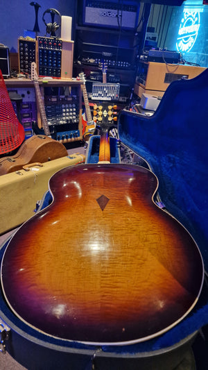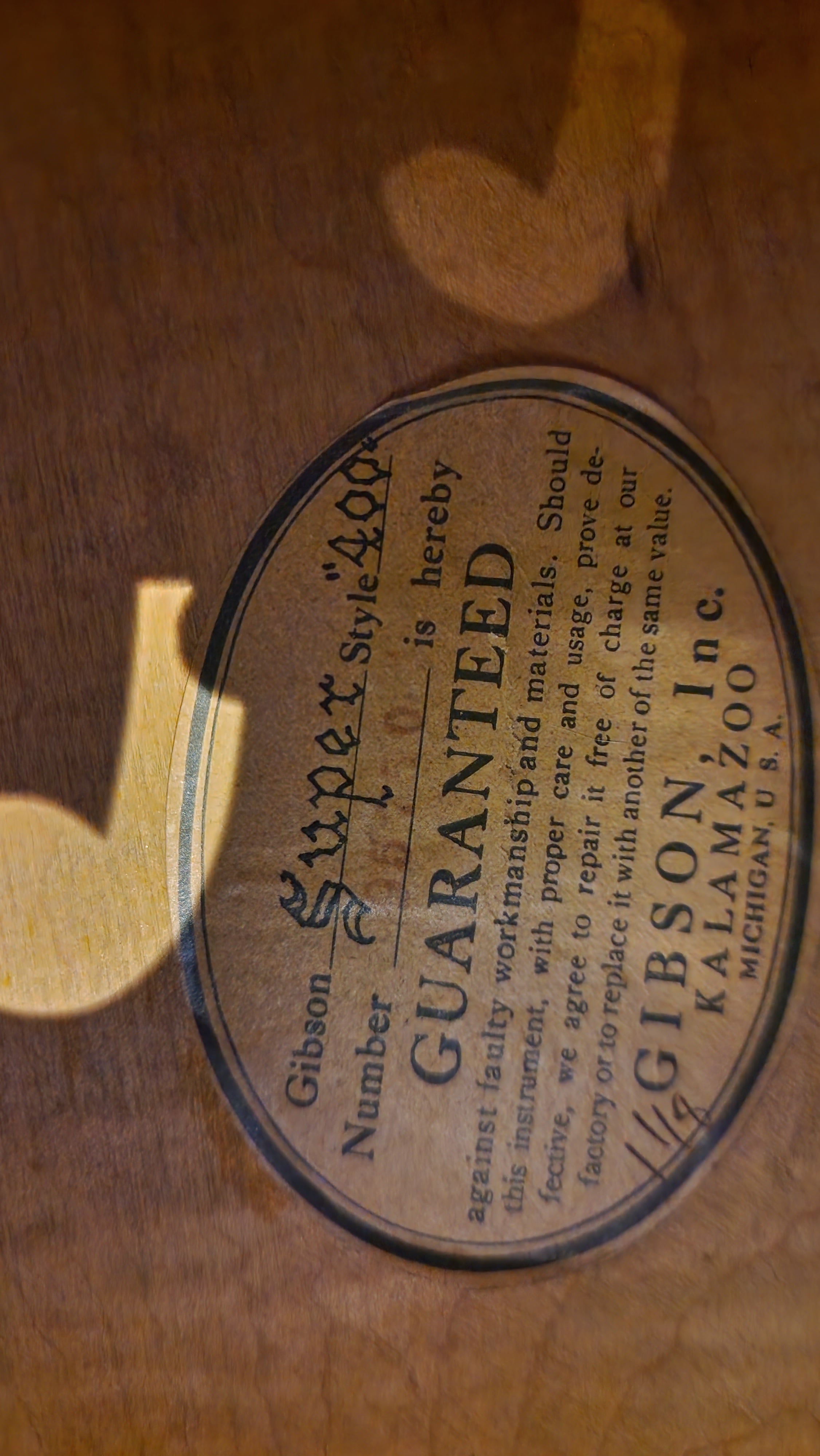 A total of four hundred and one Super 400s were made between 1935 and 1941 with this being one of seventy-eight made in 1938 right before World War II kicked off. It is a highly influential guitar model that inspired many other master guitar builders (including Elmer Stromberg and John D'Angelico). Elvis famously performed on a Super 400 during his '68 Comeback Special on NBC on December 3rd, 1968 where he returned to live performances for the first time after a seven year hiatus to focus on movies.