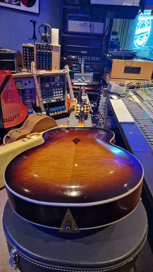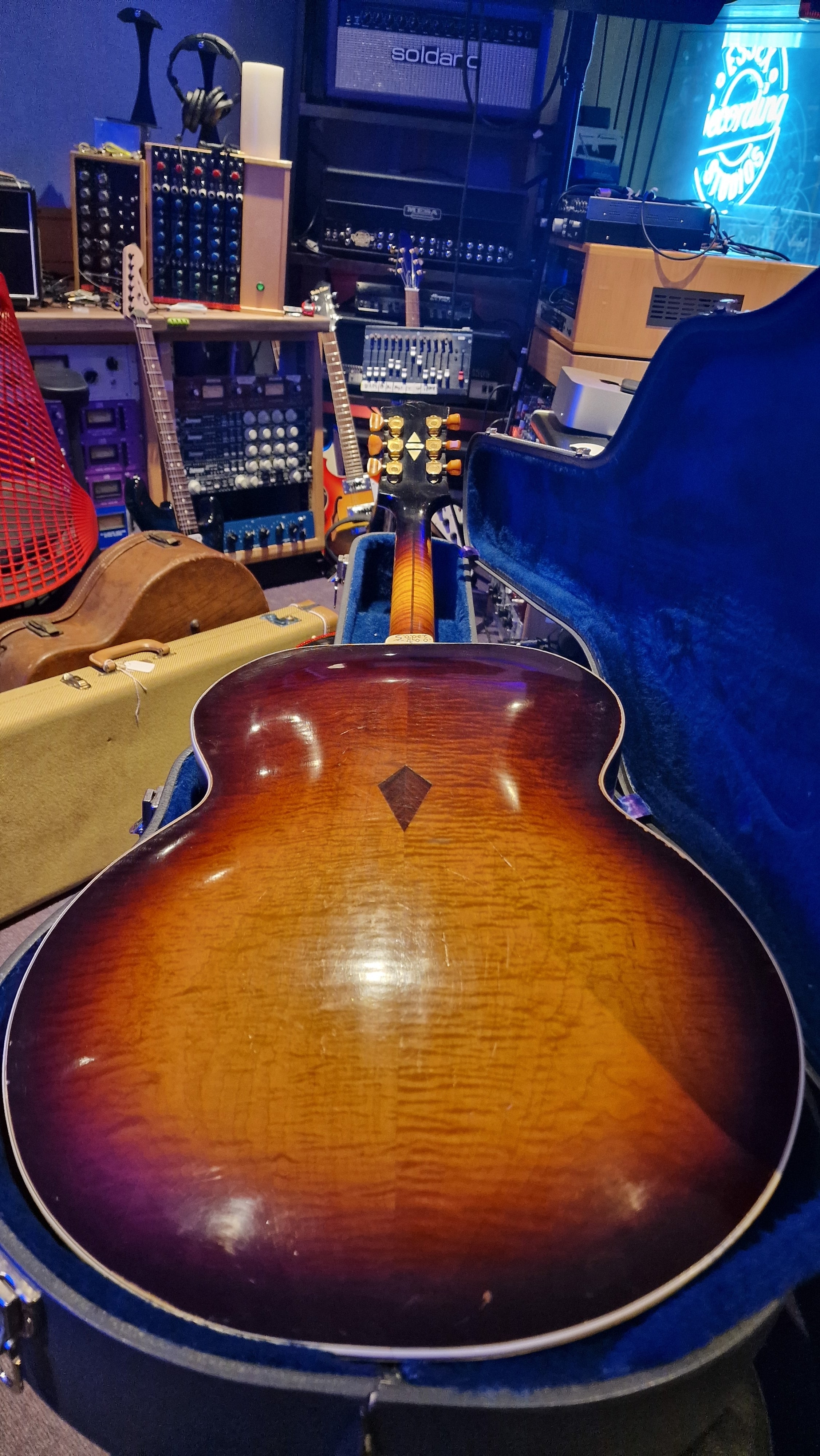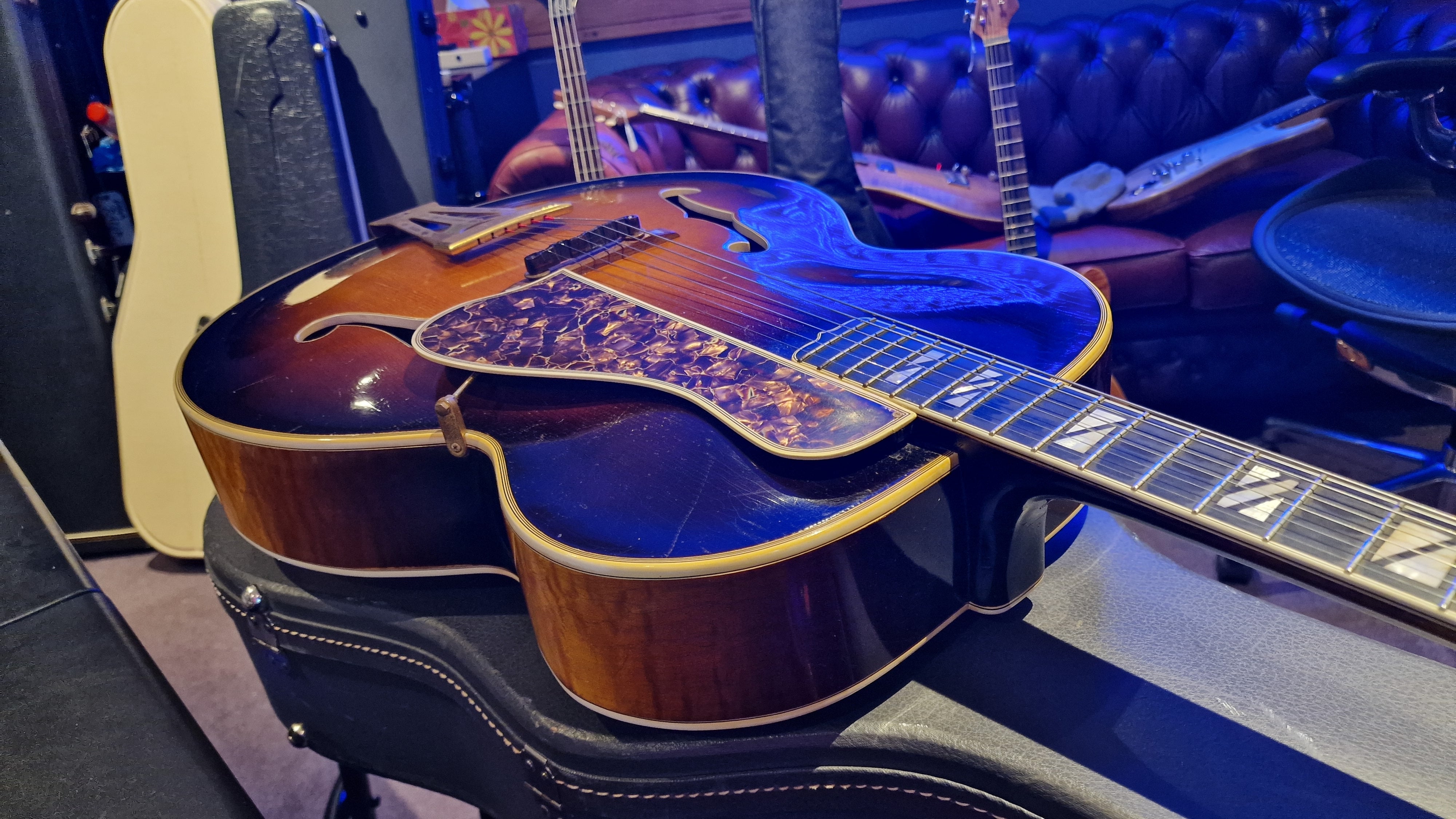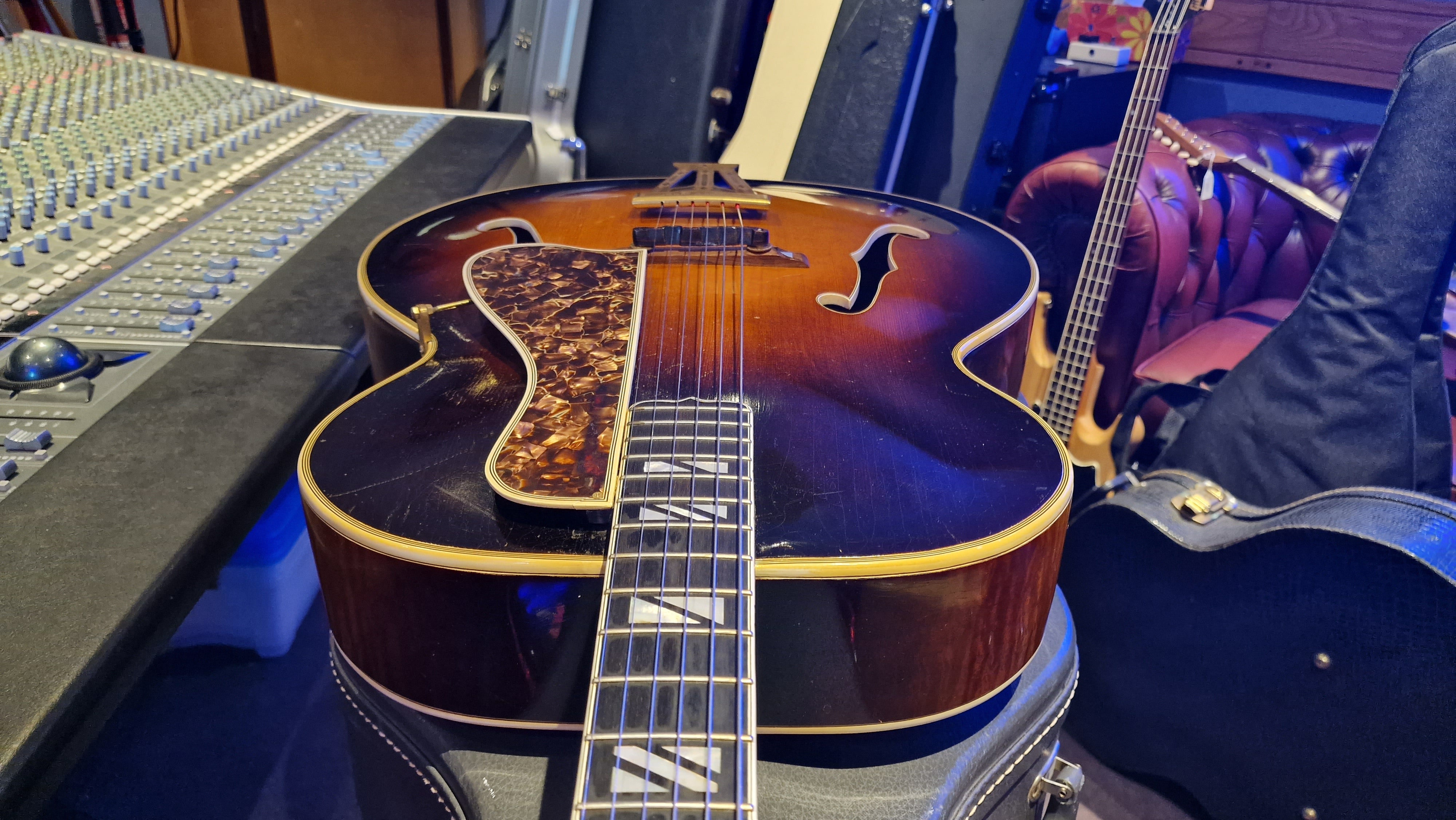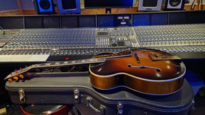 1938 Gibson Super 400 Archtop Jazz Guitar from the collection of British producer Tony Arnold (Rory Gallagher, King Crimson, Toyah, Robert Fripp). This was Gibson's flagship guitar and the most expensive in the world at $400 when it was first sold in 1934... more than the cost of a new car and a price that could purchase a house in London! Few have survived into the next century.