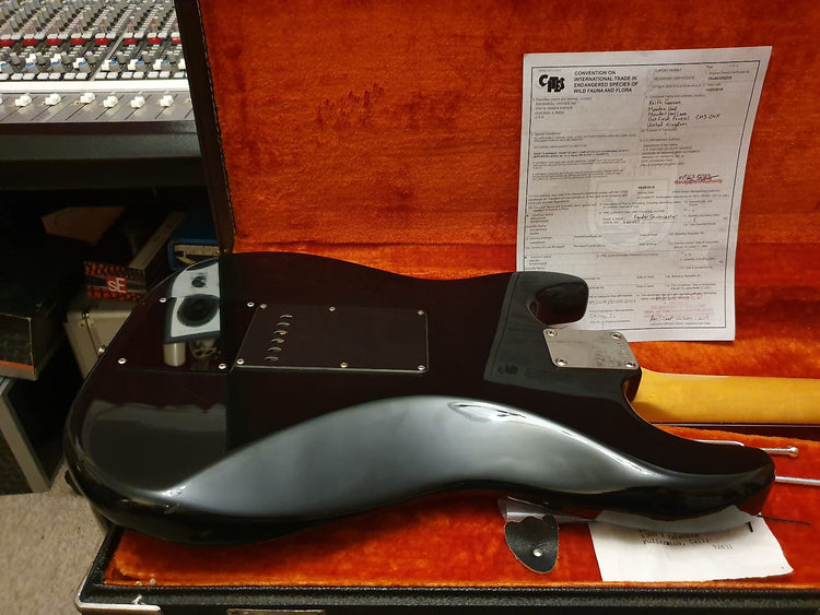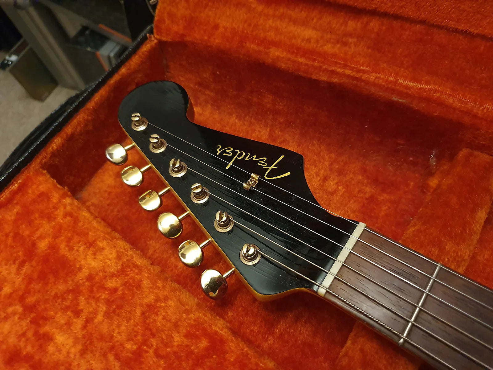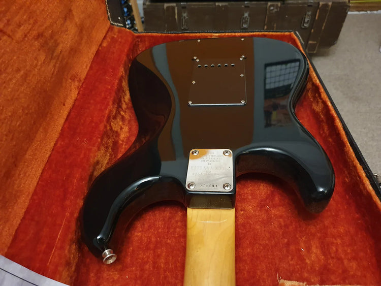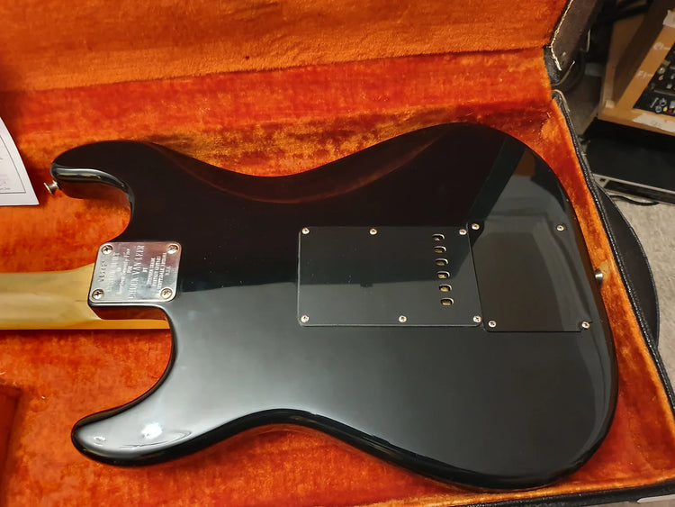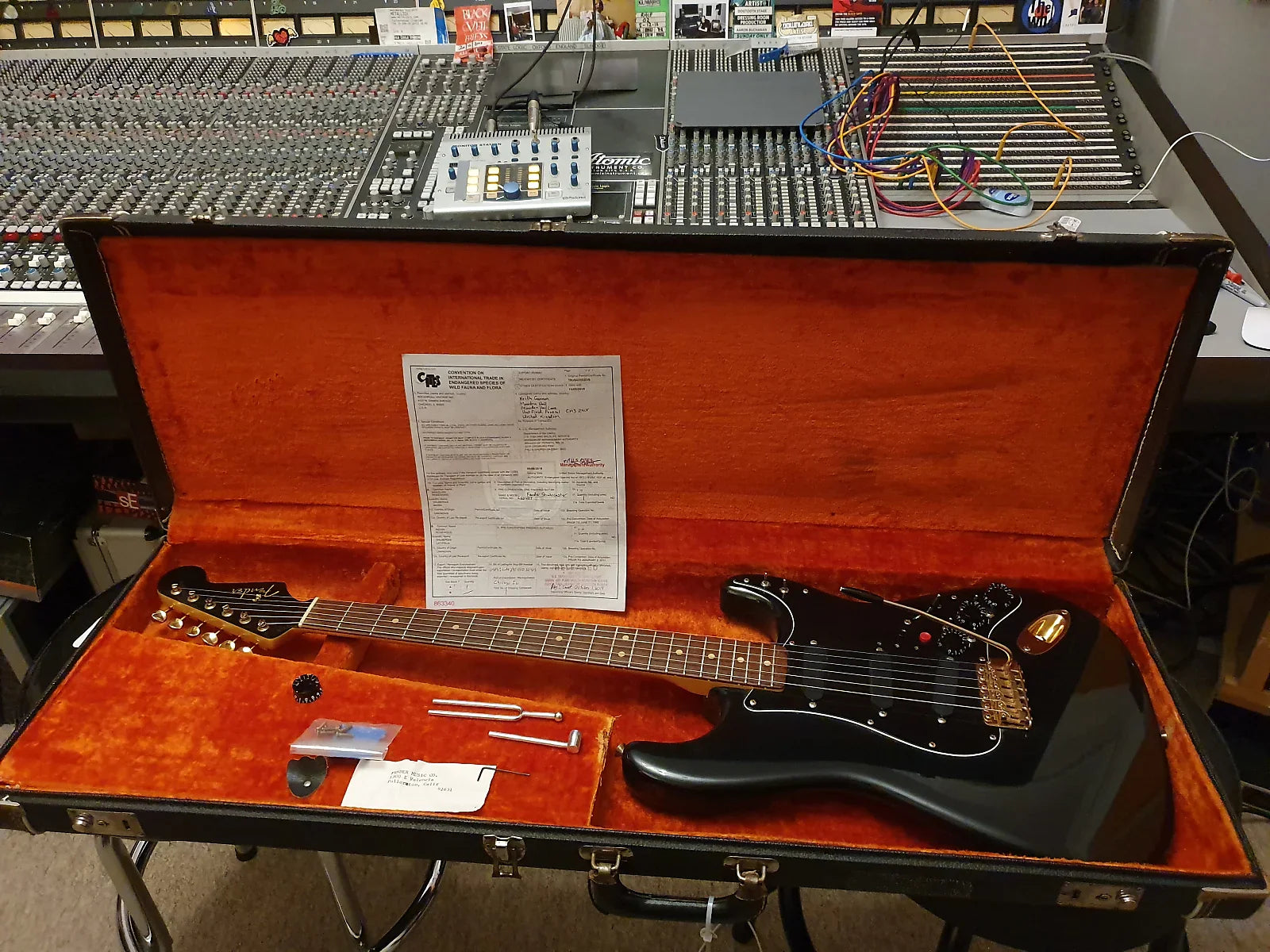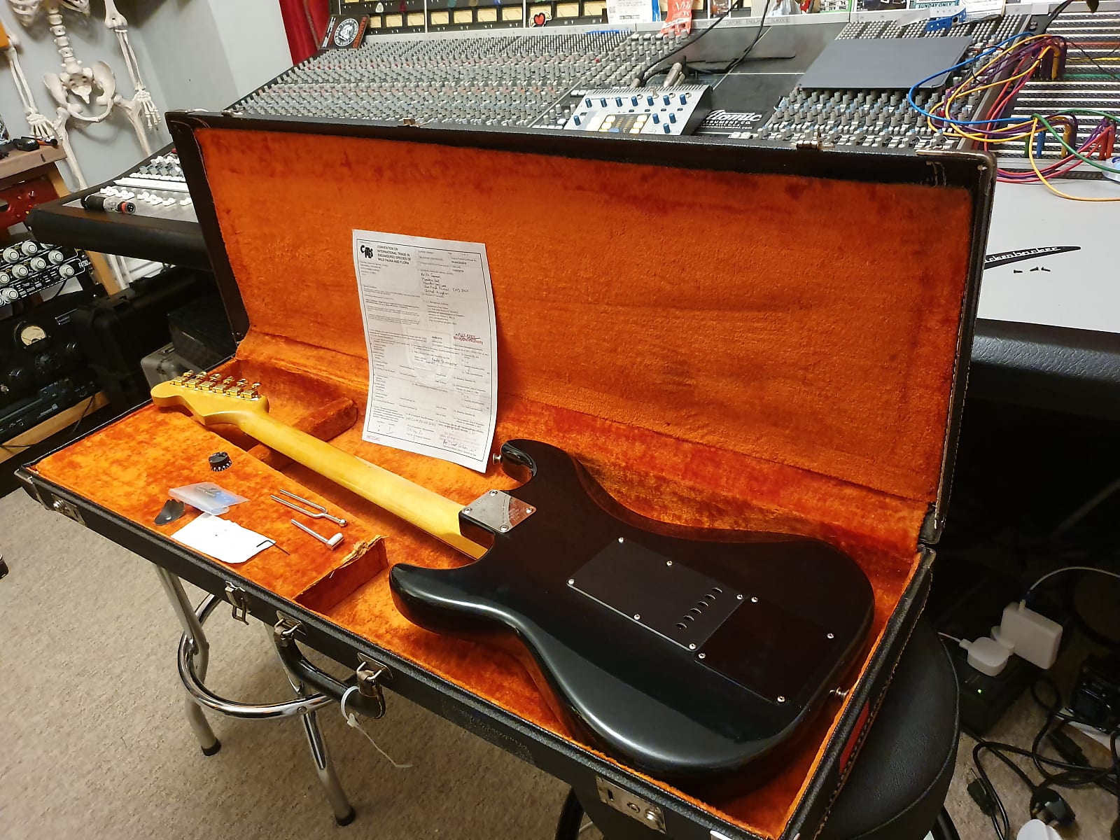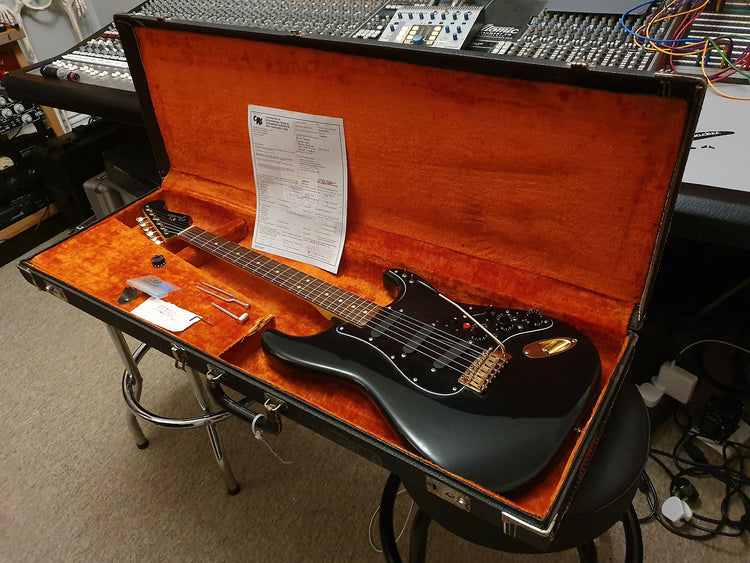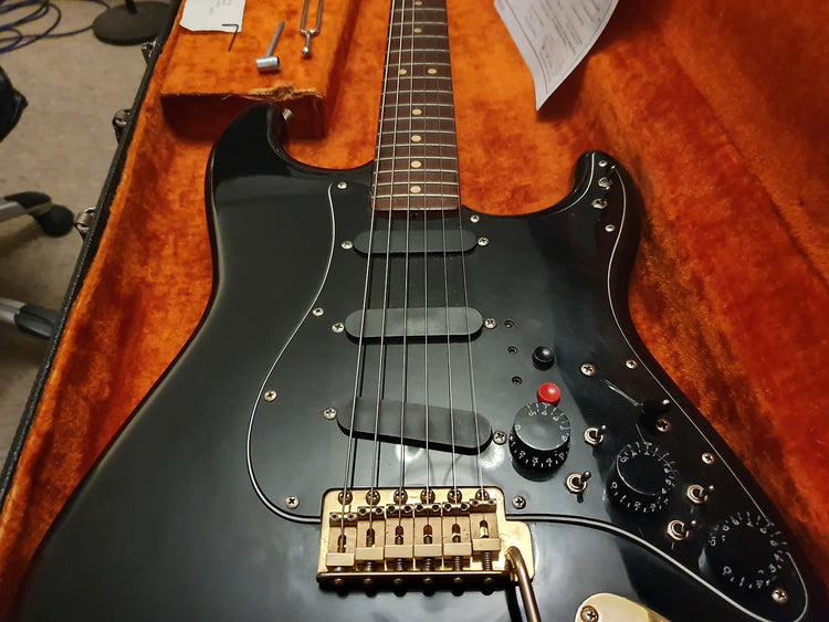 57 years ago Fender did not have a Custom Shop like we know today. We spoke with the original owner, who called us while on vacation from a beach resort in Mexico when he found out his guitar ended up with us in England! He said you couldn't get this level of customization from Fender when bought the guitar and wanted to own the "Ultimate Tricked Out Strat," so he took this 1965 strat to the best known custom shop in Scottsdale, Arizona in 1975 to have every conceivable "tricked out" feature of the era applied to the electronics of the guitar....phaser, wah, piezo...you name it, this guitar has it... and all from the analogue glory of a world class custom shop in the middle of the 70's! We had a long chat with the original owner. He said the guitar was built by Fender on January 2nd 1965. The body, neck and pickups are all original...but the paint, plastics and electronics were transformed into this legendary upgrade when he took it to the custom shop in 1975.