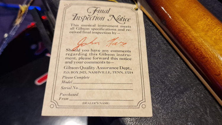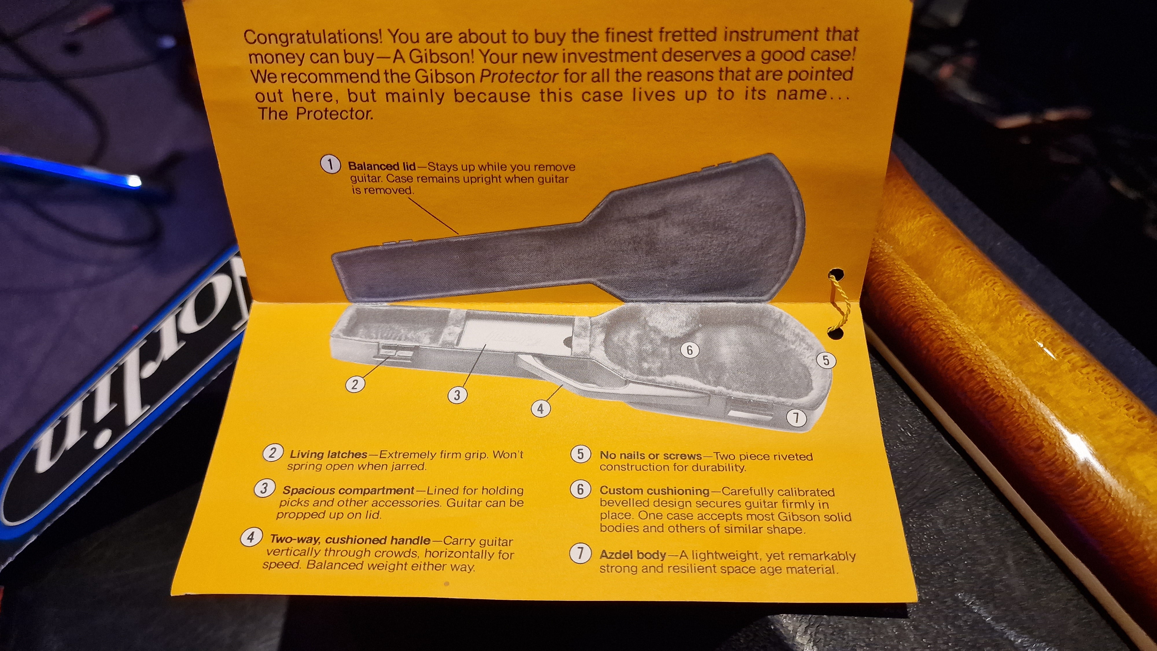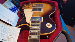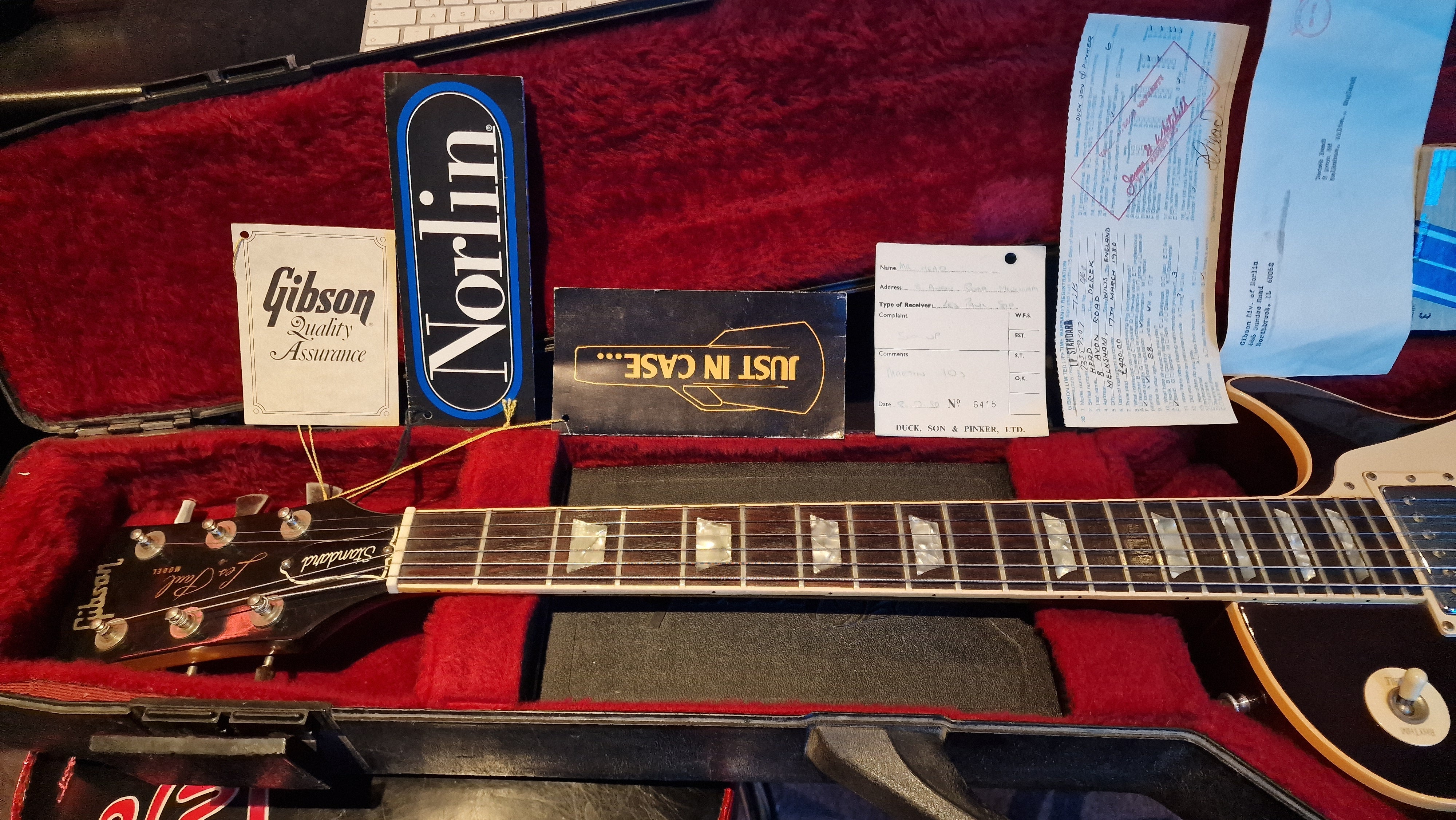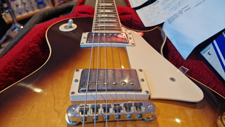 This is simply the best and most complete 70s Gibson Les Paul we have ever been able to find. The complete set of hang tags and documents is incredible. The original hard case has all of its latches present and functioning properly. The inlays have not yellowed and look stunning. Only minor marks and signs of play over 44 years of life. If you want the very best, you are looking at it.