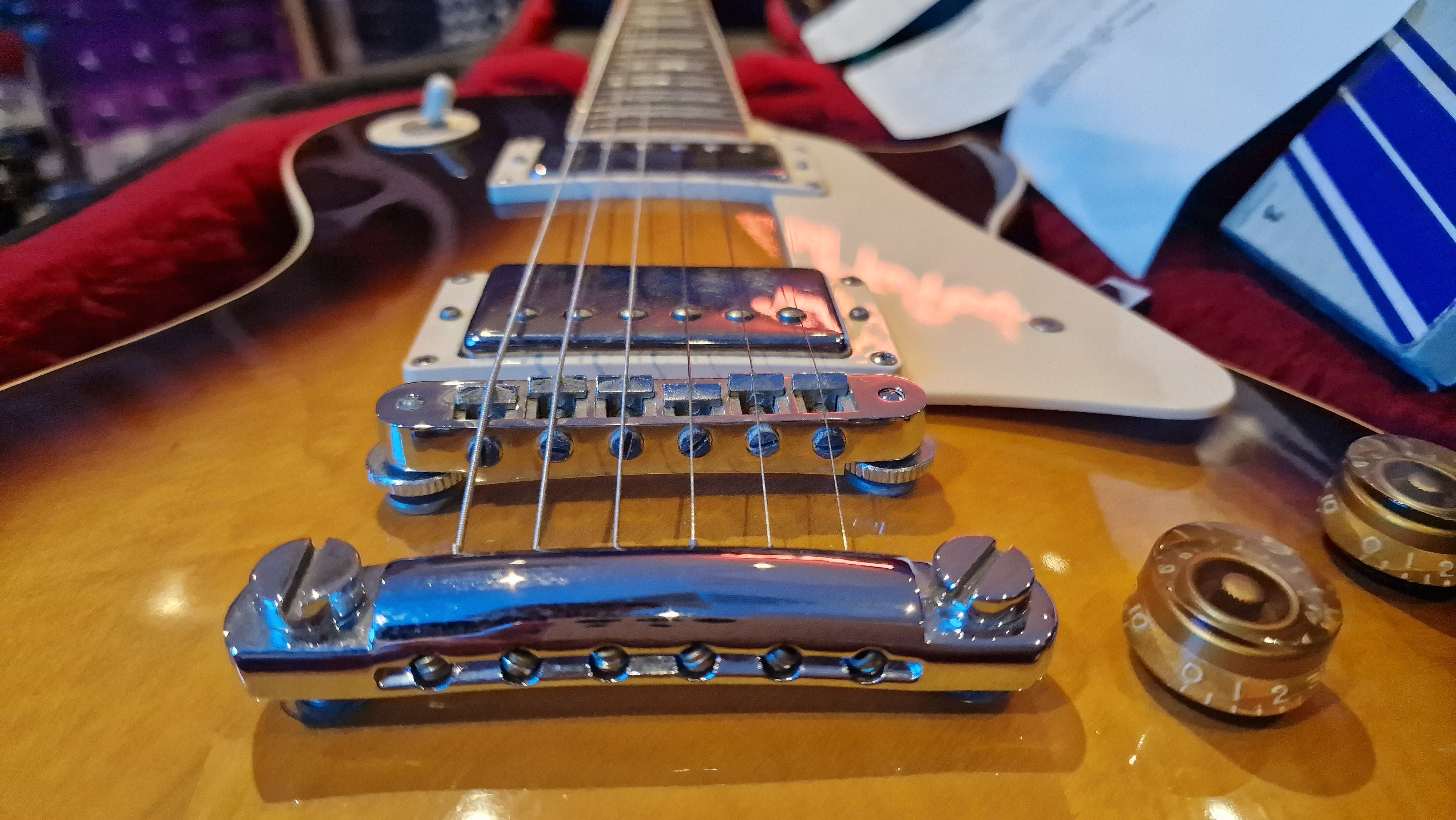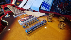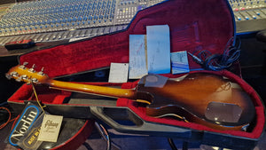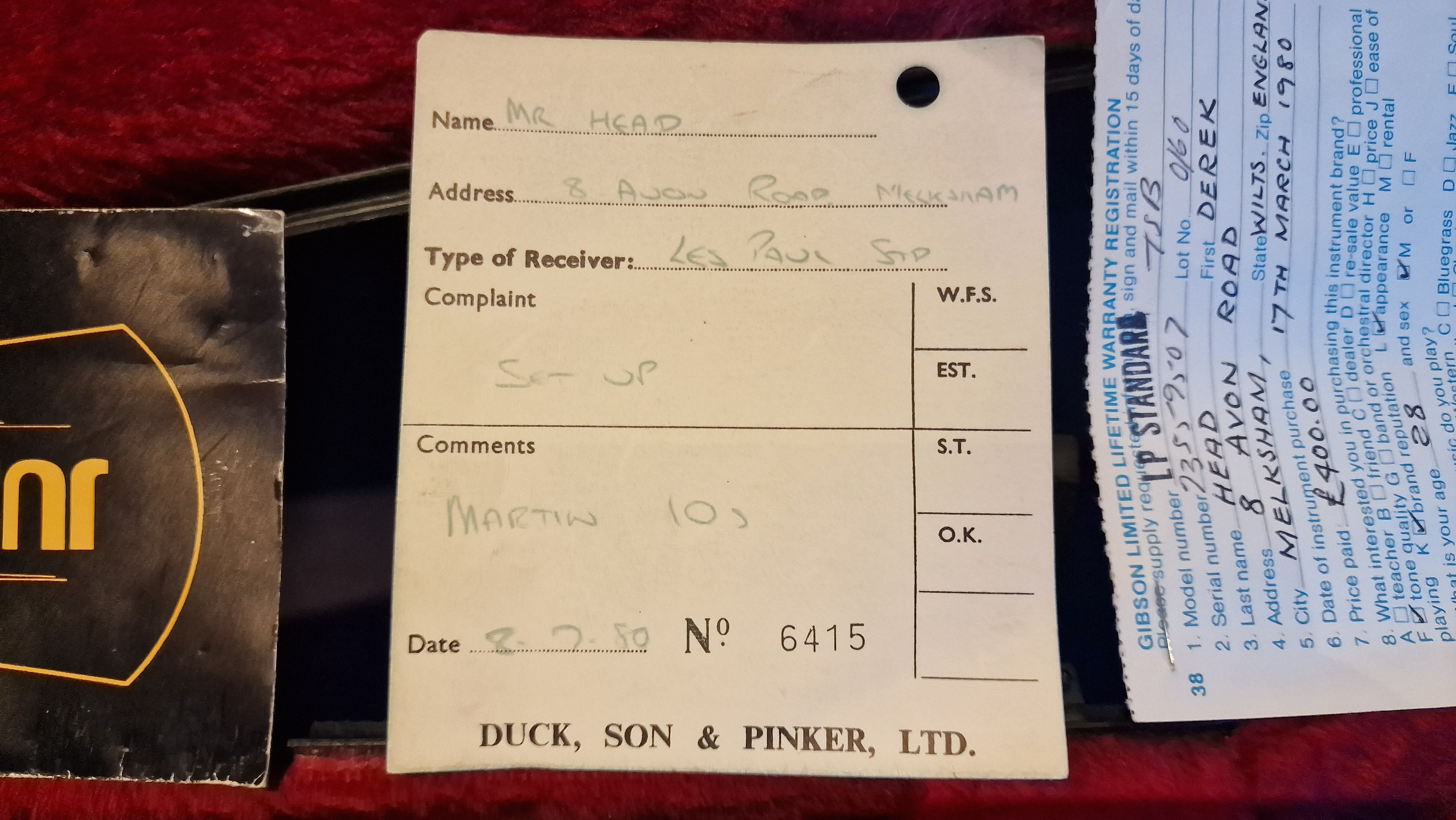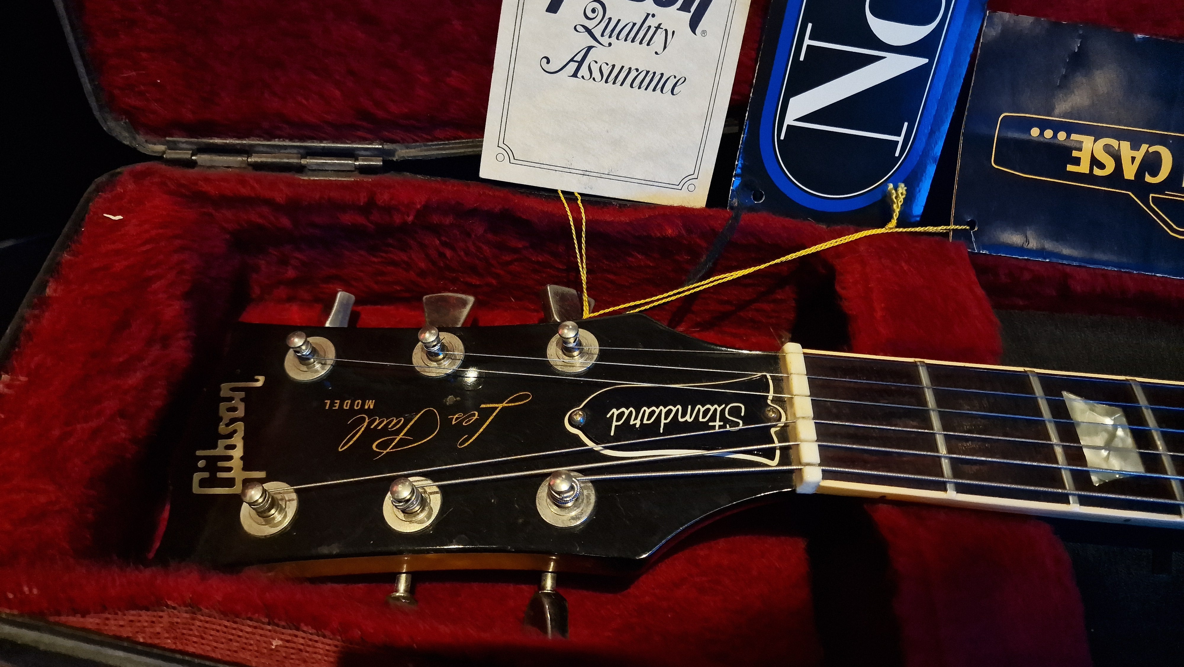 This is simply the best and most complete 70s Gibson Les Paul we have ever been able to find. The complete set of hang tags and documents is incredible. The original hard case has all of its latches present and functioning properly. The inlays have not yellowed and look stunning. Only minor marks and signs of play over 44 years of life. If you want the very best, you are looking at it.