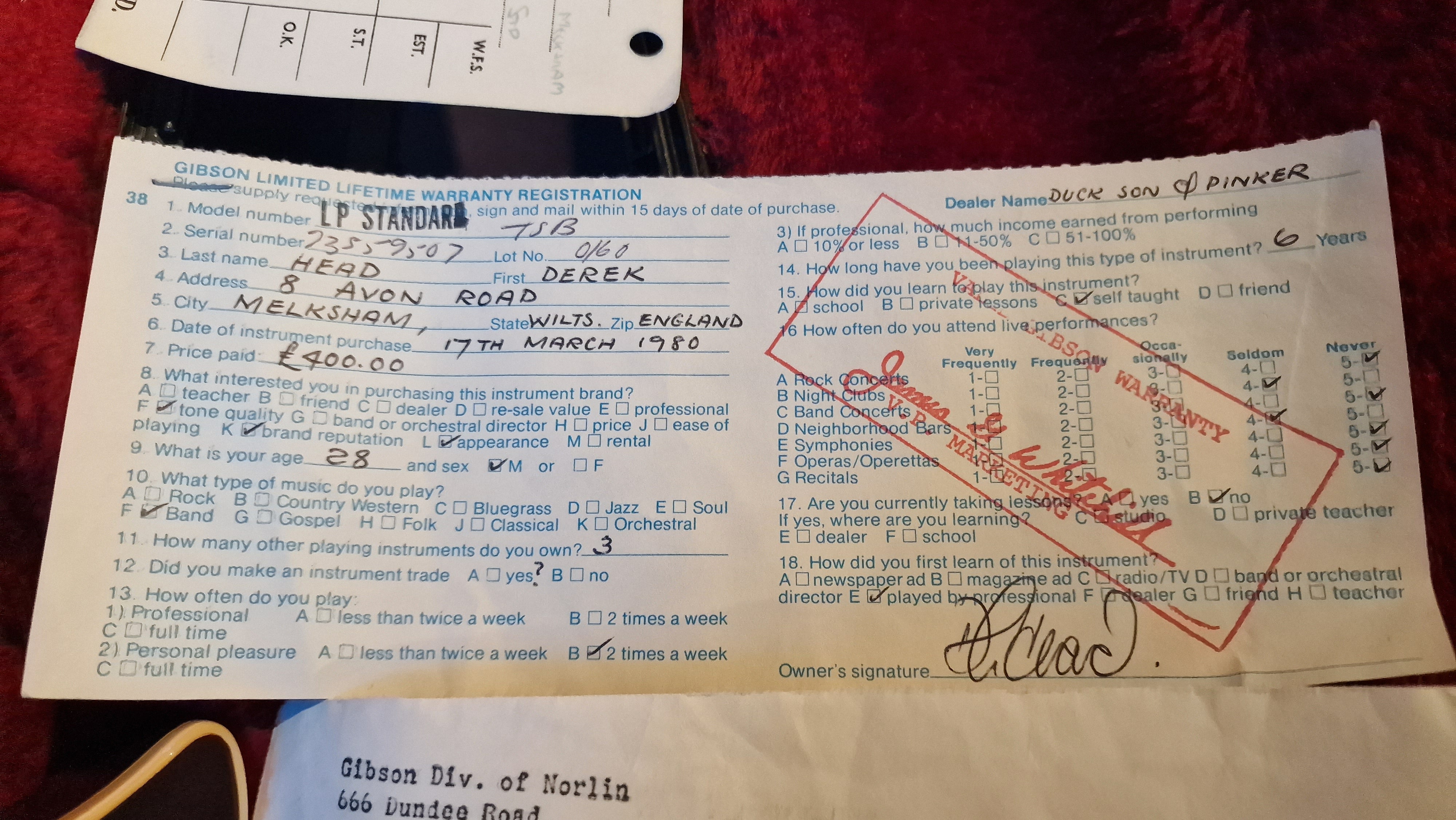 1979 Gibson Les Paul Standard 1 Owner Original Receipt Vintage 70s Tobacco Burst Electric Guitar