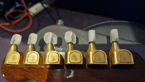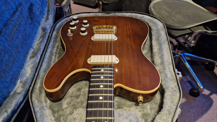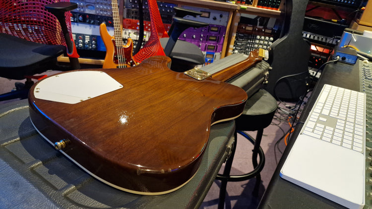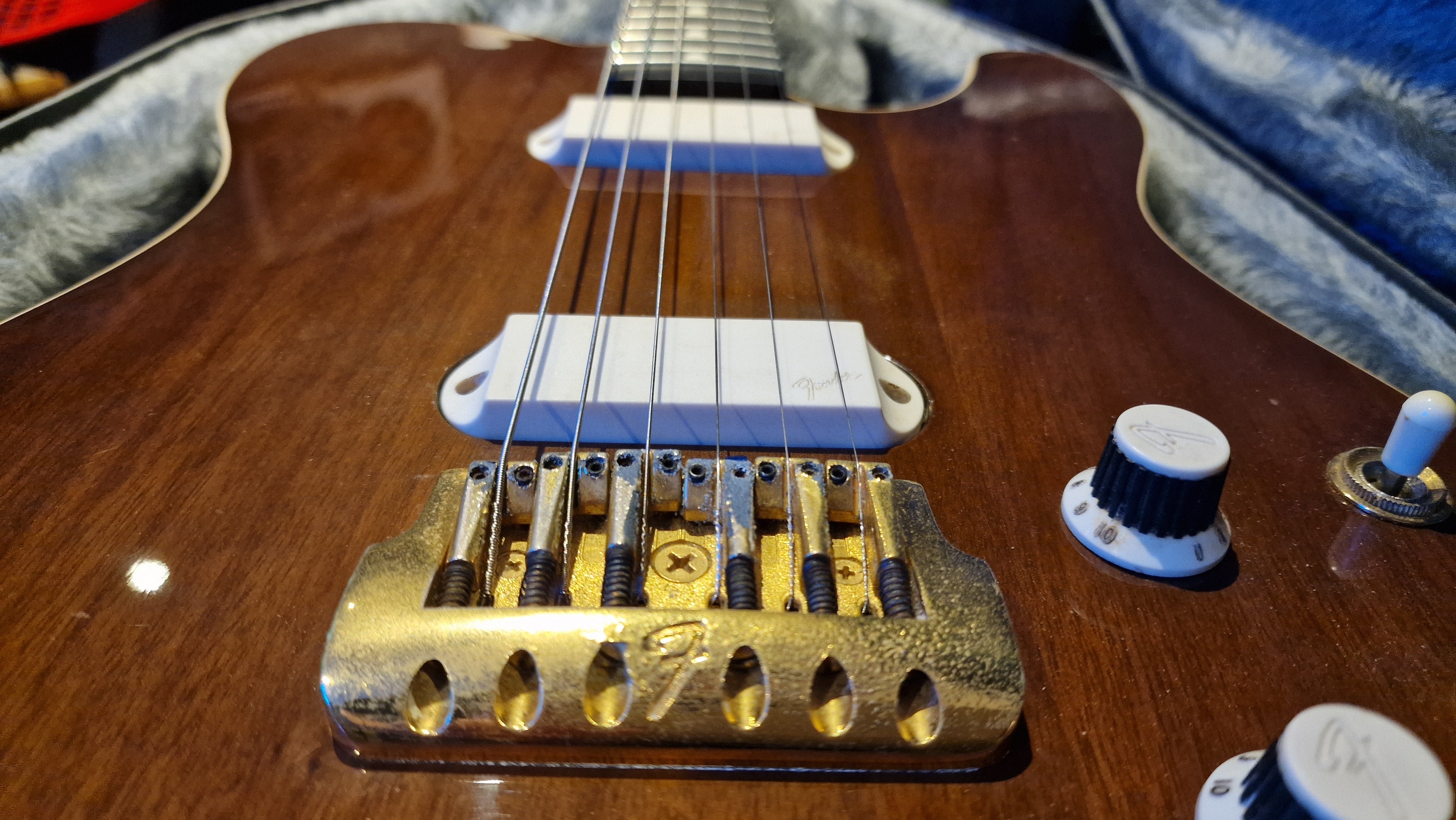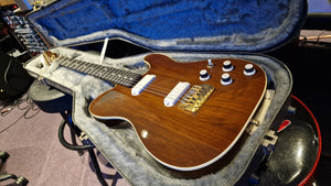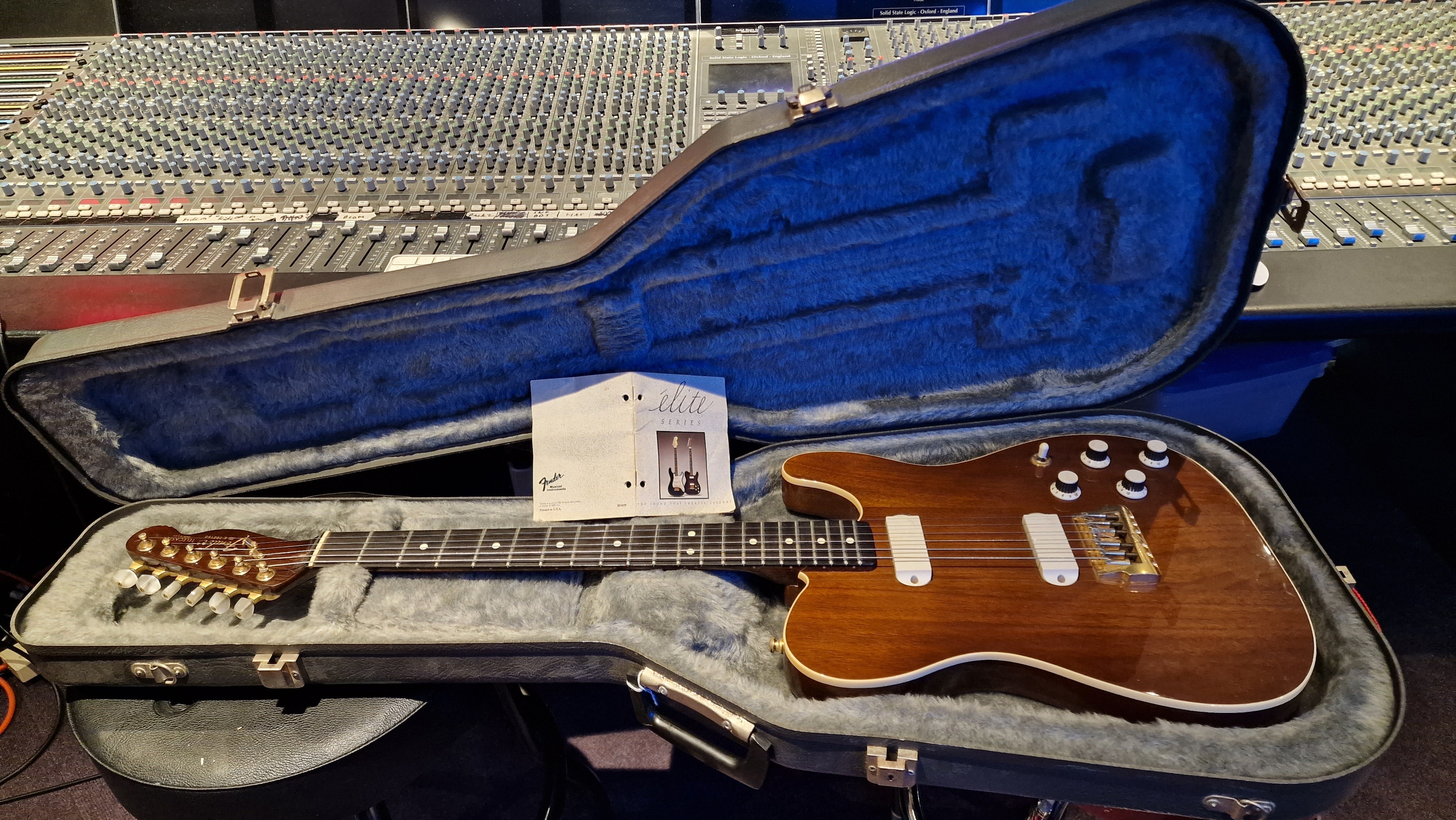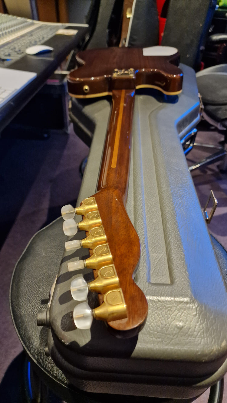 1983 Fender Telecaster Gold Elite in ultra rare Walnut natural finish! This was the highest spec and very best Telecaster money could buy in 1983 and was a major upgrade over the other Elite models. The Elite series were made for one year only due to CBS putting Fender up for sale in 1984. This was an absolutely revolutionary model that saw Fender introduce 14 new designs and patents that transformed their iconic models to present day. This guitar was the origin story for roller string trees, noiseless pickups, TBX active tone control and much more. The serrated rubber volume/tone knobs with embossed numbers and engraved F logo are incredible. Everything on this guitar is original and insanely well preserved. The tuners look like something out of a French palace with finely detailed gold and pearl tuner buttons. The Gold Elite was the very best, with walnut bodies with ebony fretboards being the rarest of the rare.