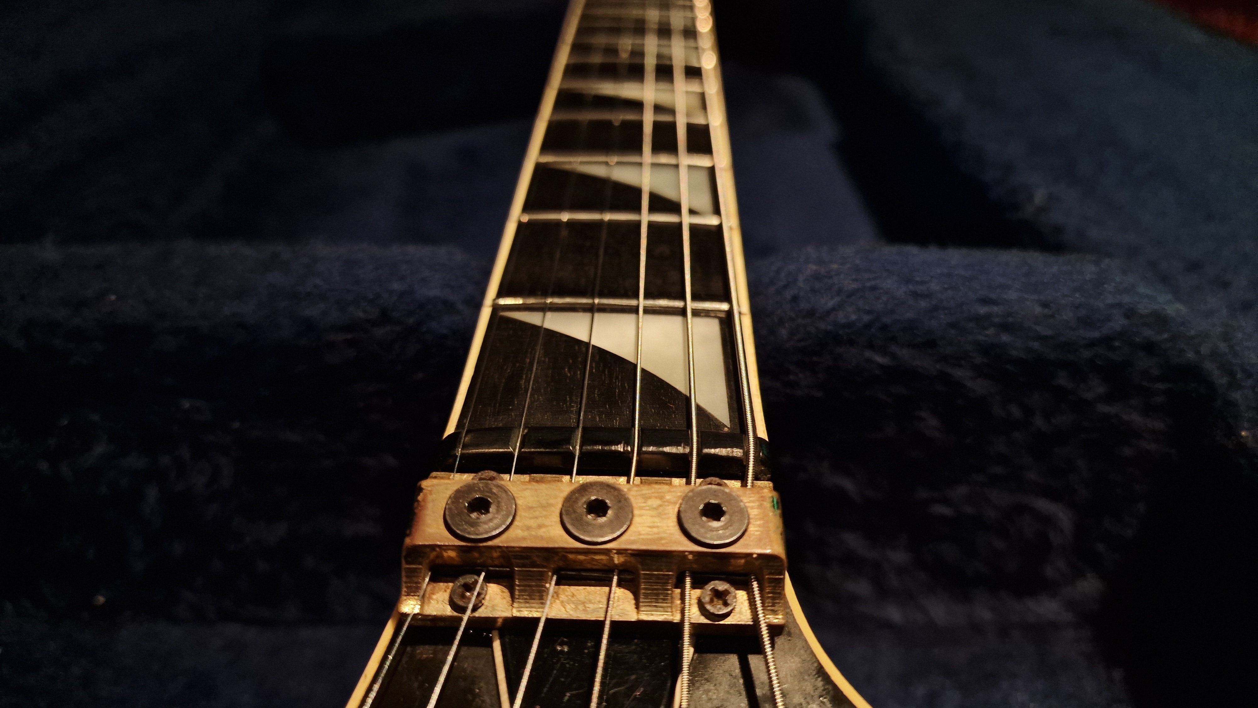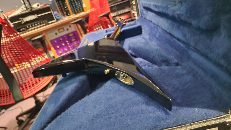 Incredibly rare EARLY 1984 Jackson San Dimas Custom Shop Randy Rhoads (Serial Number RR0649) in super clean condition with Kahler tremolo and original hard case! This has the highly sought after top-mounted Kahler tremolo that doesn't require any routing through the body! The early San Dimas Randy Rhoads guitars featured premium biding with fret nibs (Gibson Style). Early no-logo tuners, early no-logo pickups with exposed poles, early headstock shape and early brass Kahler and brass pickguard. Leather strap with matching brass Schaller strap locks made in West Germany. This is a piece of guitar history that shows where this iconic design truly began. Jackson guitars under the 1000 serial number rarely appear for sale and consistently climb in value. This is priced cheaper than many of the new Fender ownership era Custom Shop Jackson models, but has nearly 40 years of history built in and is from the rarest and most iconic San Dimas factory "Golden Era" of the Jackson Guitars brand history. It is the earliest Jackson Randy Rhoads we have ever been able to get our hands on at the studio, and they simply don't come in better condition than this. This is the iconic guitar design that defined the 80's and instantly makes a player stand out on stage!