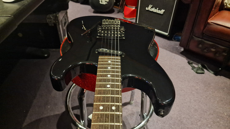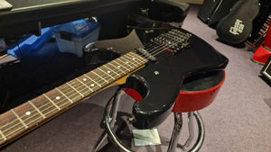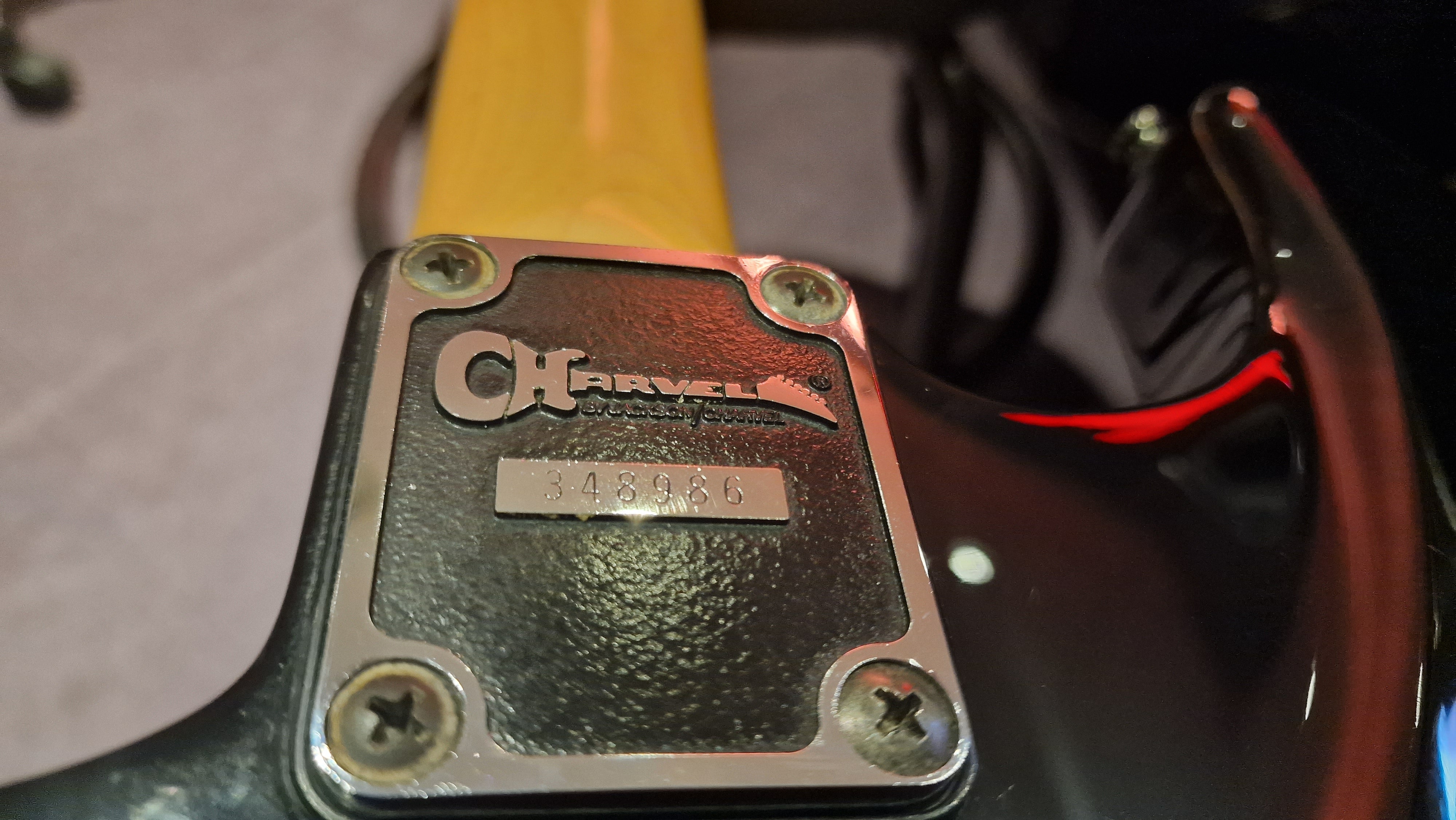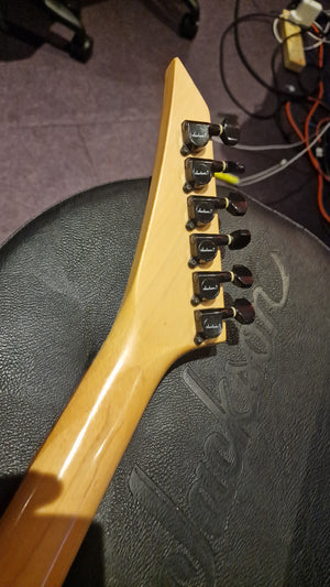 1989 Charvel 275 Deluxe. These were made for only one year in this format and spec and featured the Jackson JT-6 Tremolo found on other USA Jacksons of the same year and also USA Jackson pickups with a slanted USA Jackson J100 single coil neck pickup and a USA Jackson J-90C humbucker in the bridge position. This is your classic "Super Strat" and features the limited Charvel "toothpaste" headstock logo that only existed around the turn of the decade. It's hard to find premium Japanese built survivors that are this clean nearly 35 years later.