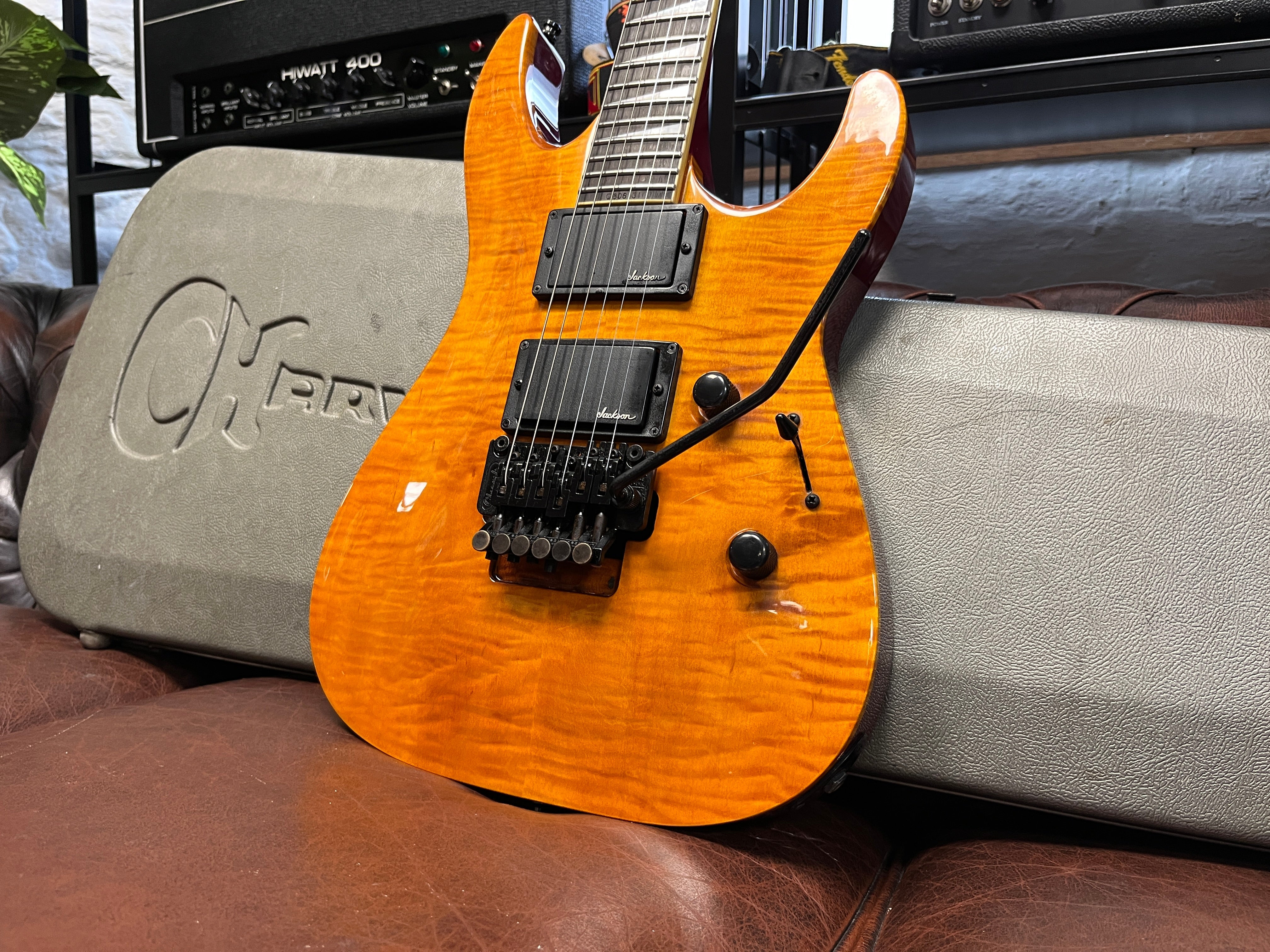 This is an original 1989 Charvel 750XL Professional Series Amber Flame Maple archtop set neck Mahogany body!