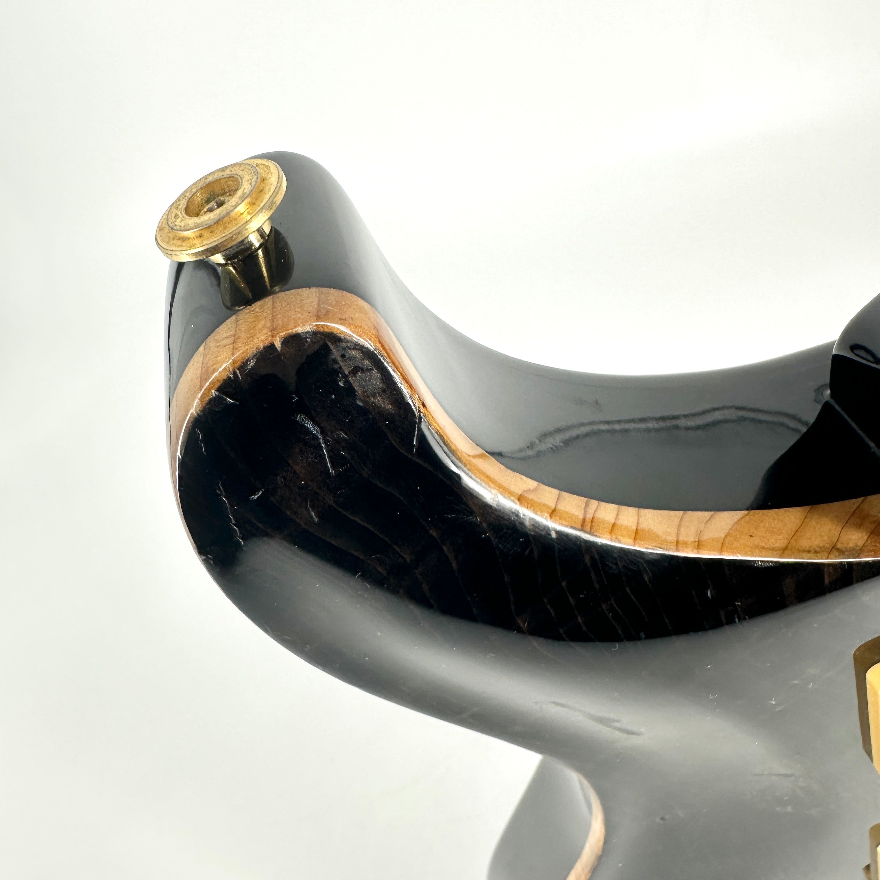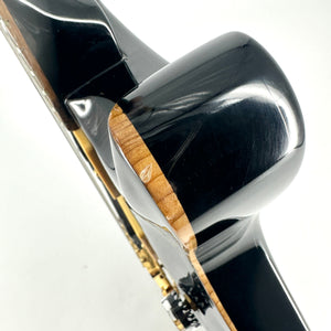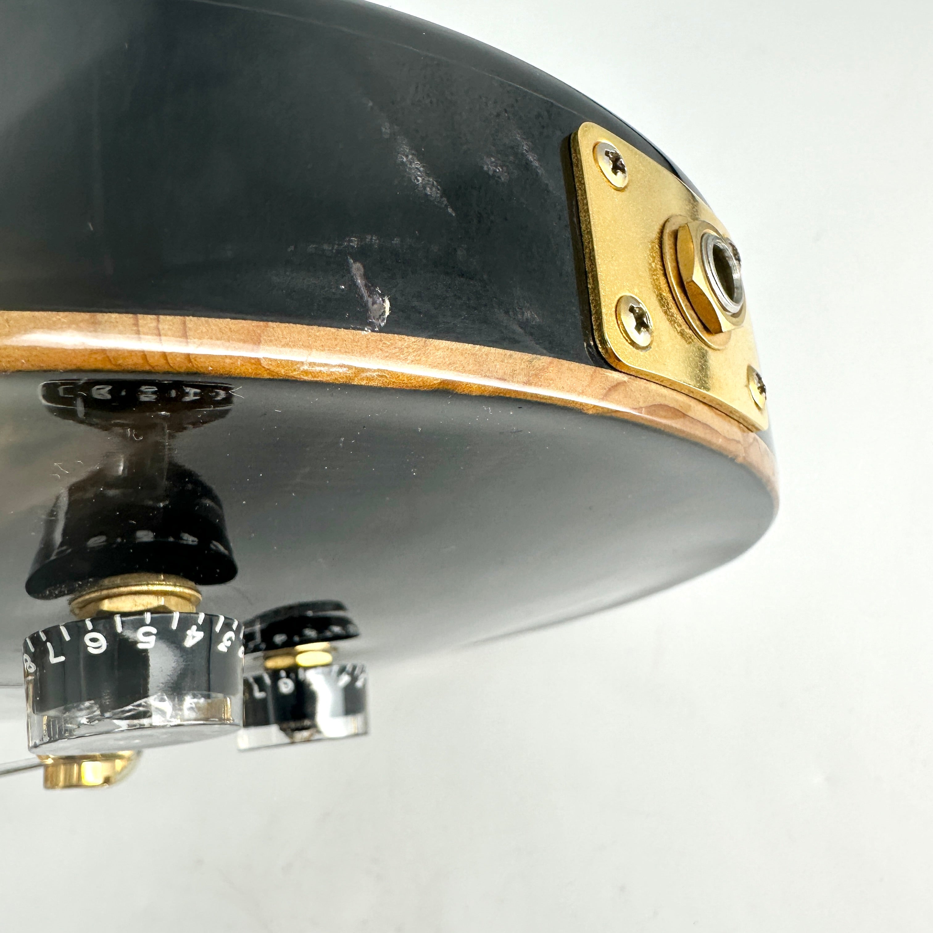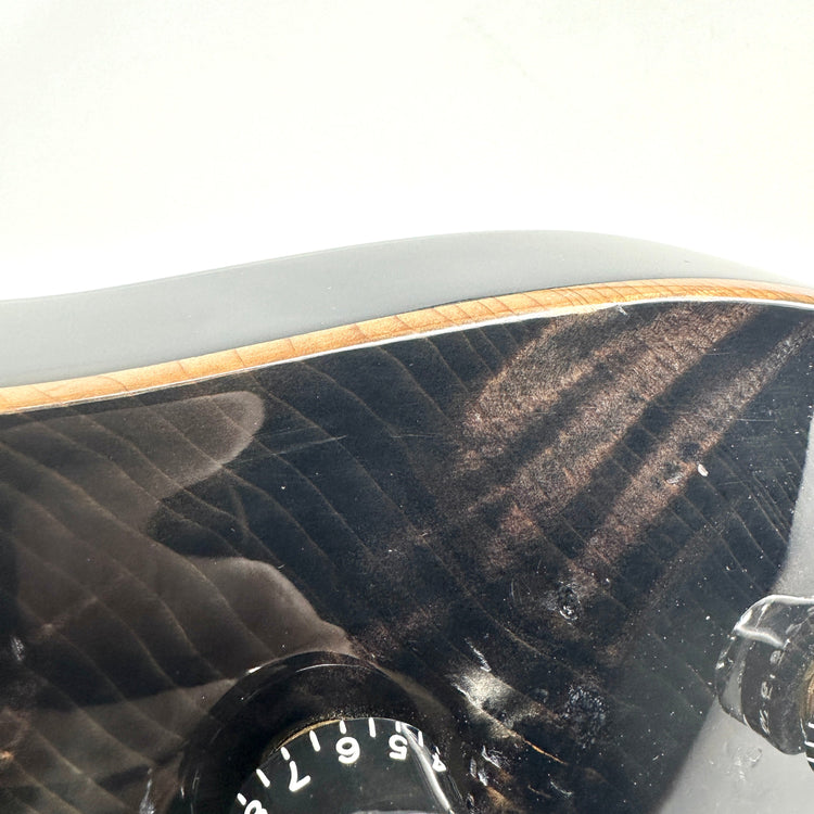 It’s in very good condition for age with some wear and blemishes on closer inspection. Some light surface marks on the back (visible if they catch the light) and everything works as it should. We've tried to capture blemishes by bouncing light onto the surface to exaggerate them as they are less visible in normal lighting conditions - note it is a black gloss guitar, so apologies for the unavoidable reflections in the photos.