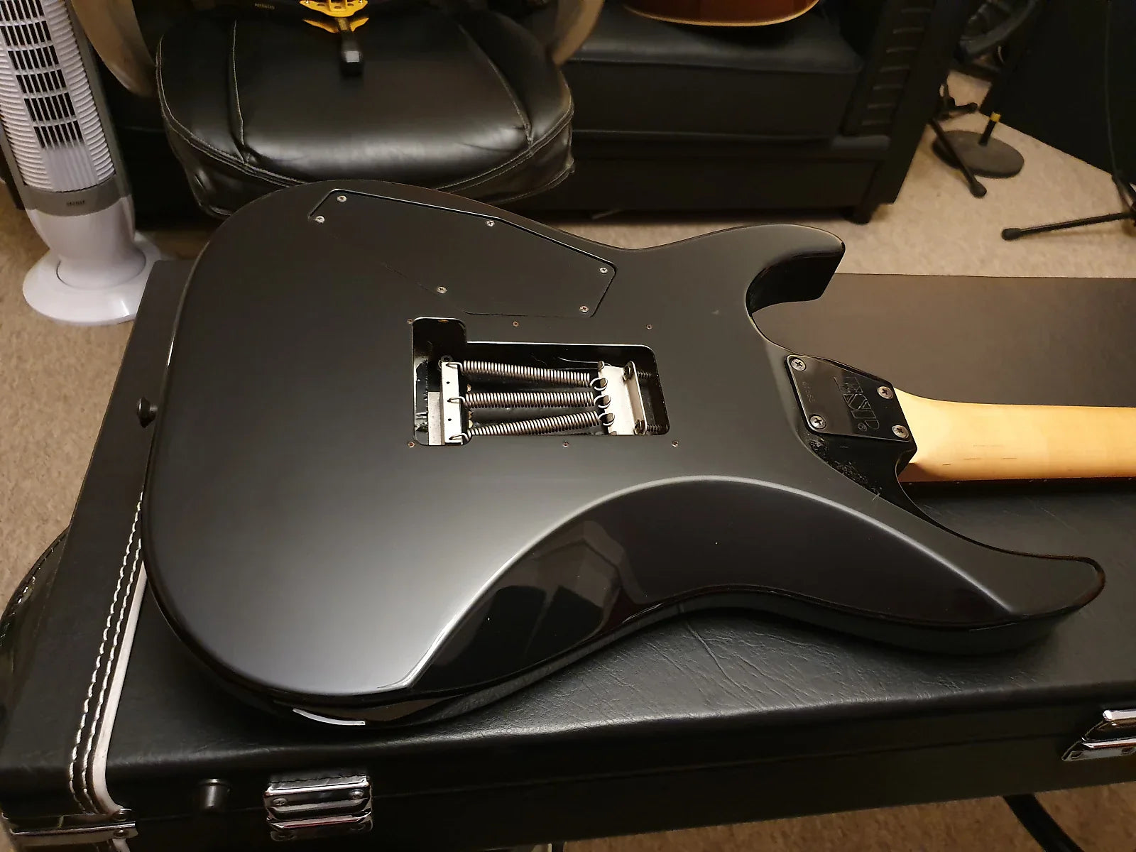 ULTRA RARE FIRST YEAR 1993 ESP CUSTOM SHOP KIRK HAMMET SIGNATURE!! This is the insanely rare M-2 Hammett model without the signature on the headstock! This is the earliest example and is more correct to what Kirk would actually have played on stage in the 90's! In all of my days, I have never seen one of these become available. It has the original hang tags from ESP with the note that these were for the European distributor: Selectron and a date of January 1st 1991! Very few of these exist still today, and you are unlikely to find another again! This is a must have for the true Metallica and ESP collector. Once it's gone, we cannot replace it.