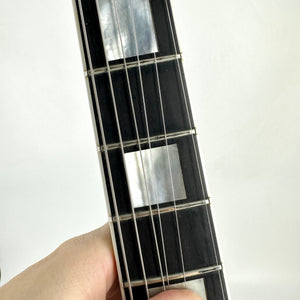 You get all of the traditional custom specs including the Mahogany body with custom binding, comfortable medium-profile Mahogany neck, Ebony fingerboard, Pearl block inlays and gold hardware. Tone-wise this guitar really sings and the original 490/498 pickups sound huge when driven.