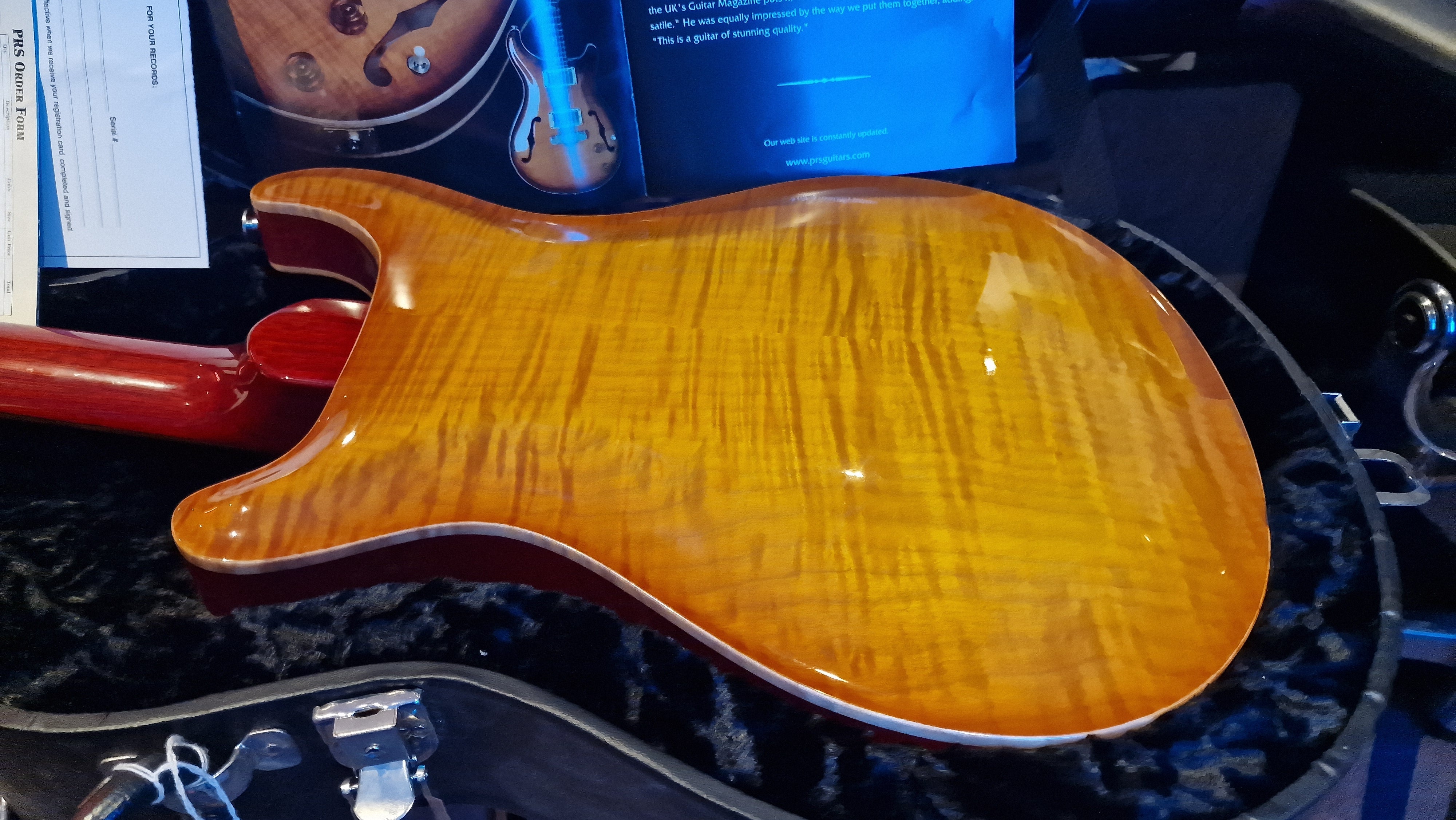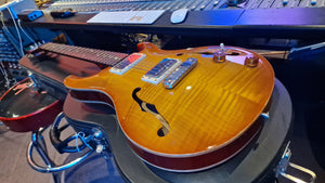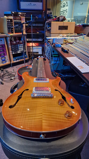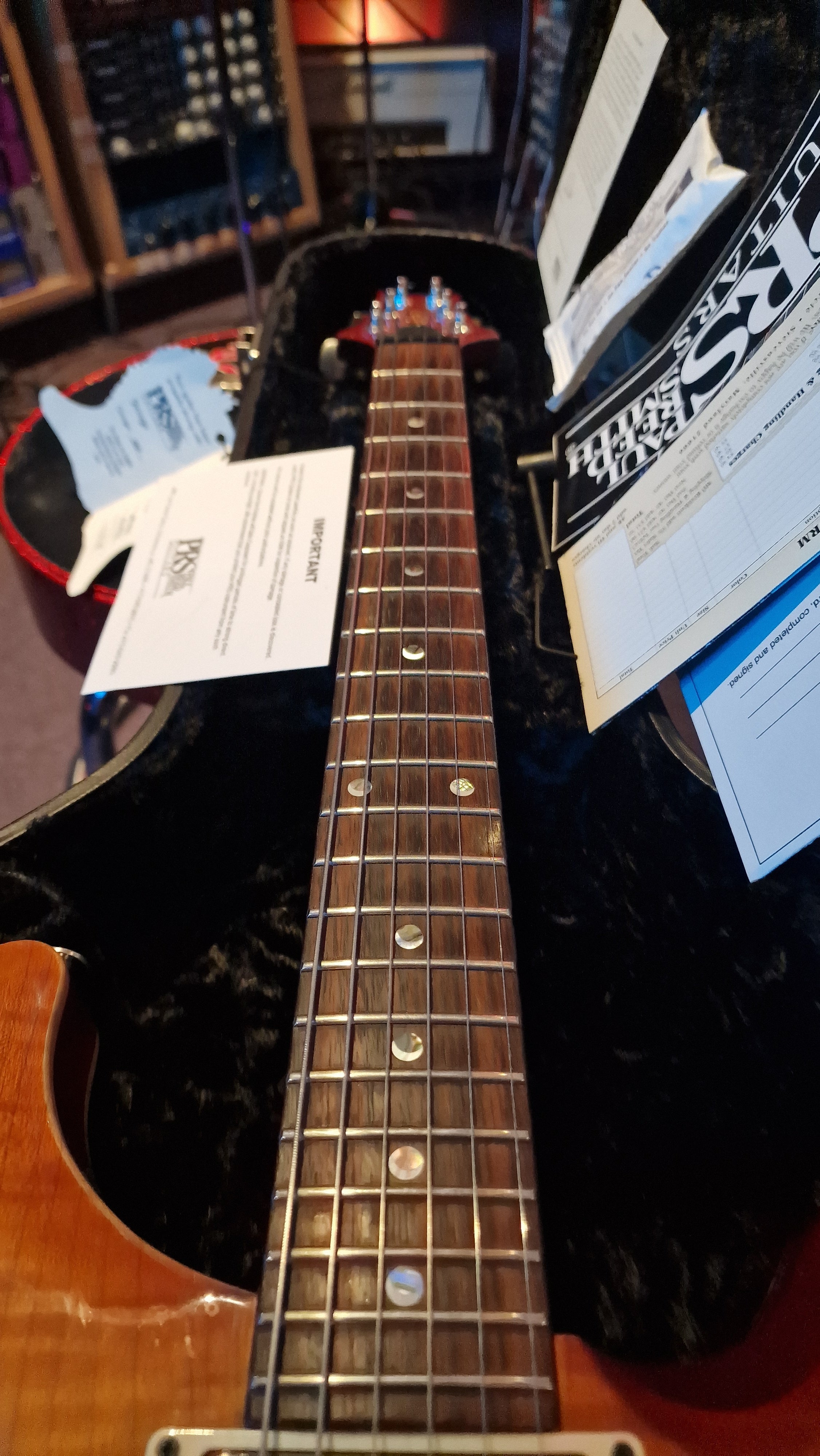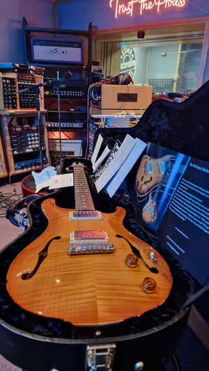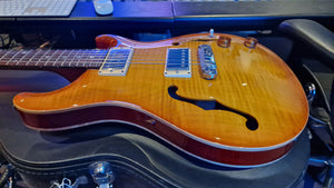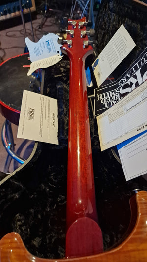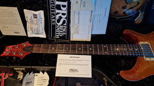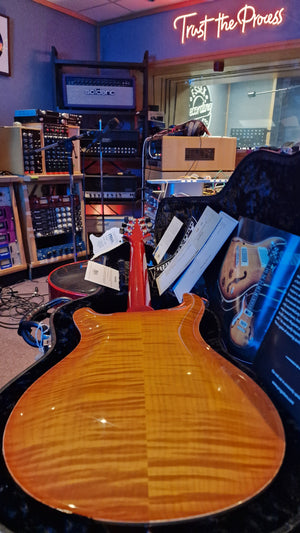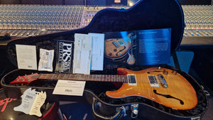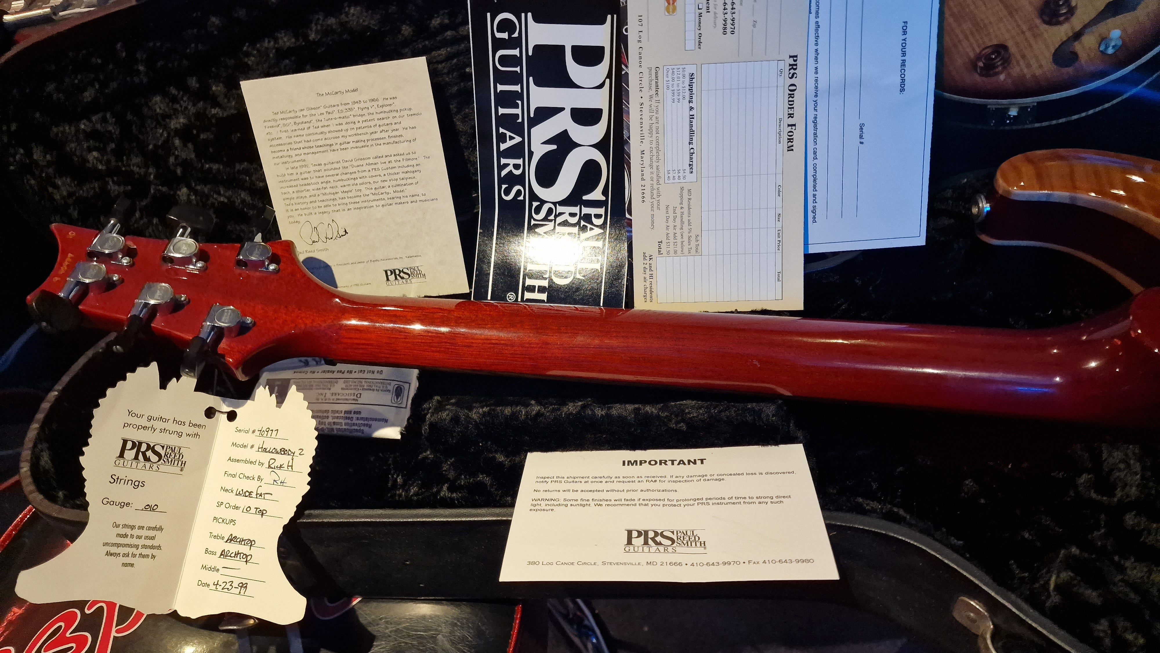 1999 Paul Reed Smith PRS McCarty Hollowbody II 10 Top Electric Guitar with stunning AAA flame maple top and back! This is the ultimate PRS guitar in both sound and appearance. It is in fantastic condition for 24 years of age and comes complete with its original case and all paperwork and hang tags! This is like stepping back in time to the 90's when PRS first introduced the world to the McCarty model. Finding an early example this complete with a 10 Top in this condition is extremely difficult. You would be crazy to purchase a new model when you have a quarter-century of history and value built into this example. If you want the very best guitar that will set you apart sonically in the studio and visually on stage, this is your guitar. It is a piece of stunning, functional art that deserves to be out on display.