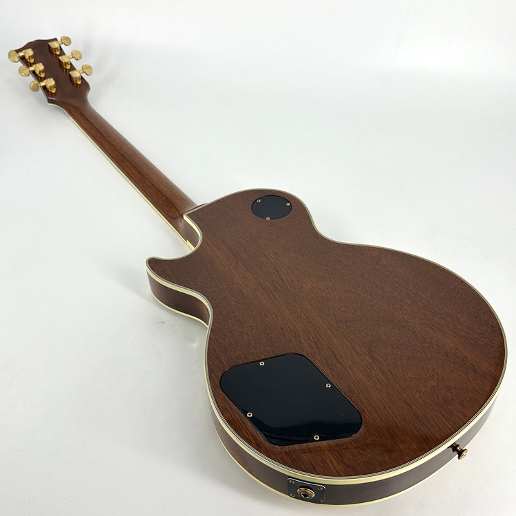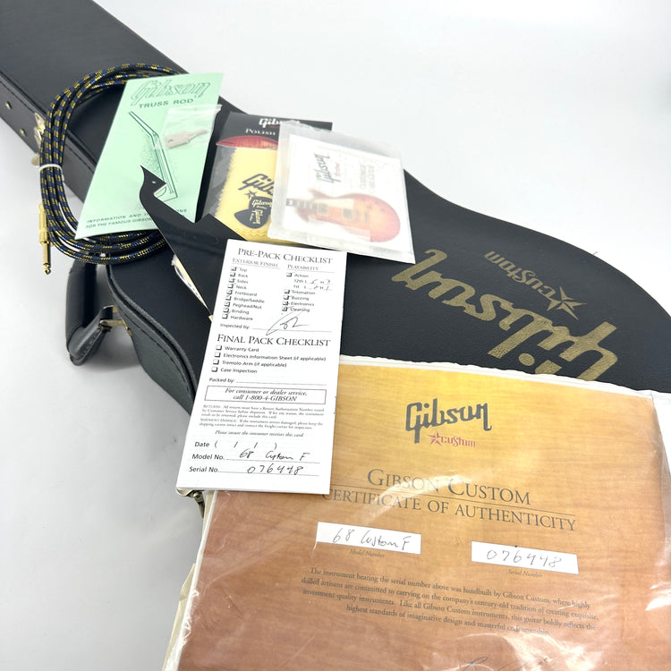 You get all of the traditional custom '68 specs including that Mahogany body with Maple top, custom binding, a medium C profile Mahogany neck, Ebony fingerboard, Pearl block inlays, gold hardware and it's 2 original Gibson pickups sound fantastic, with classic, powerful Les Paul tone.