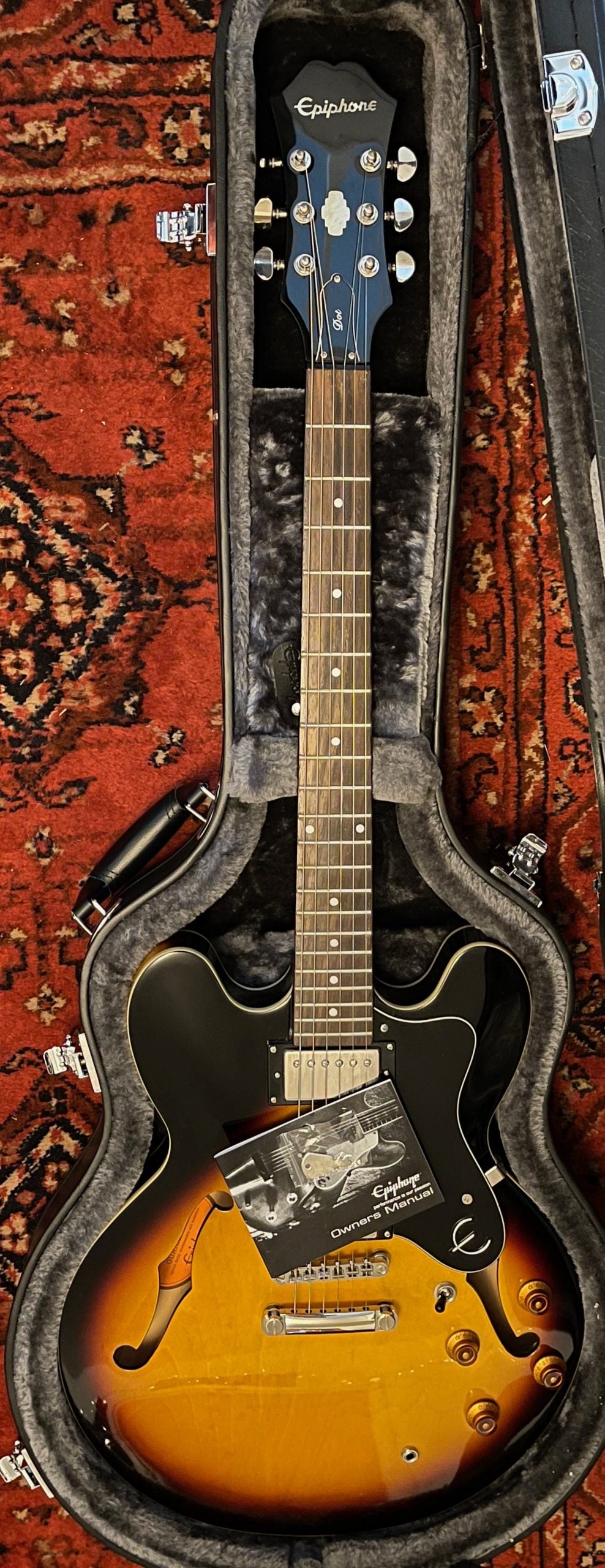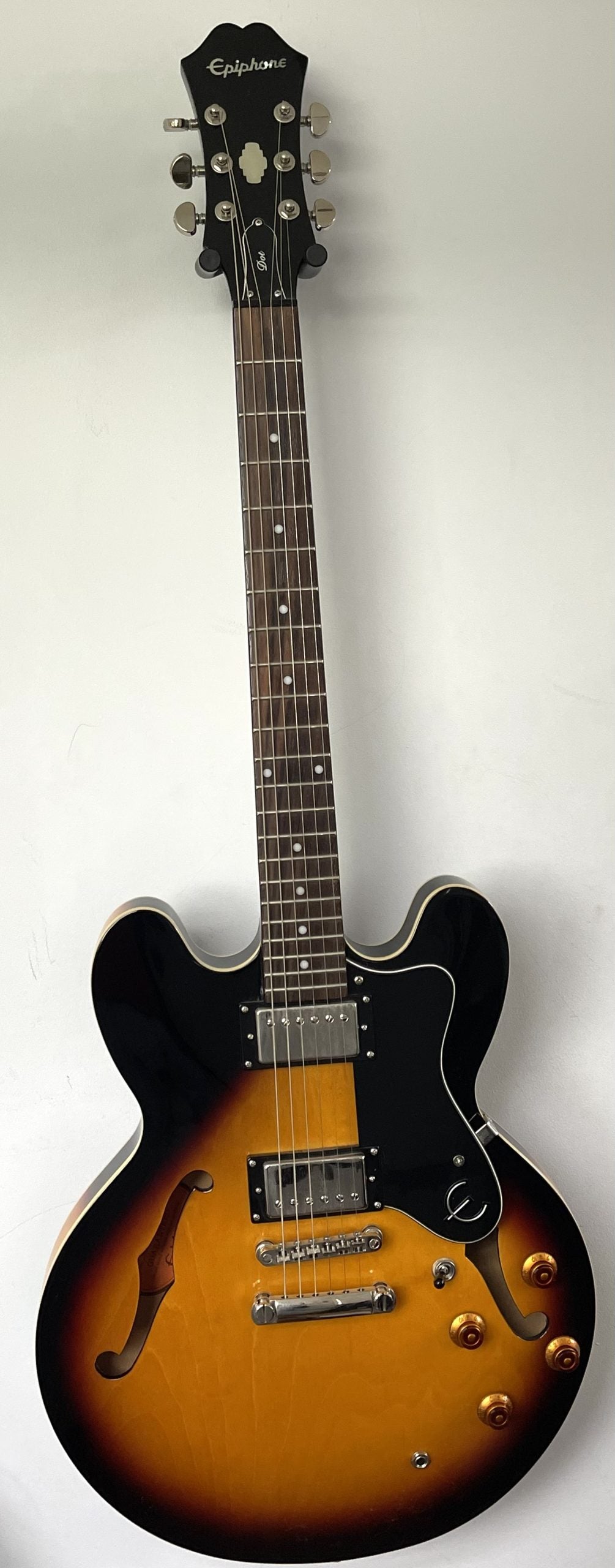 2016, Epiphone Dot, finished in vintage Sunburst,This guitar is in stunning condition, Virtually mint. It is set up nicely and plays wonderfully as you would expect. It has the added bonus of coming complete with an Epiphone Fitted hardcase. These online are approximately £100