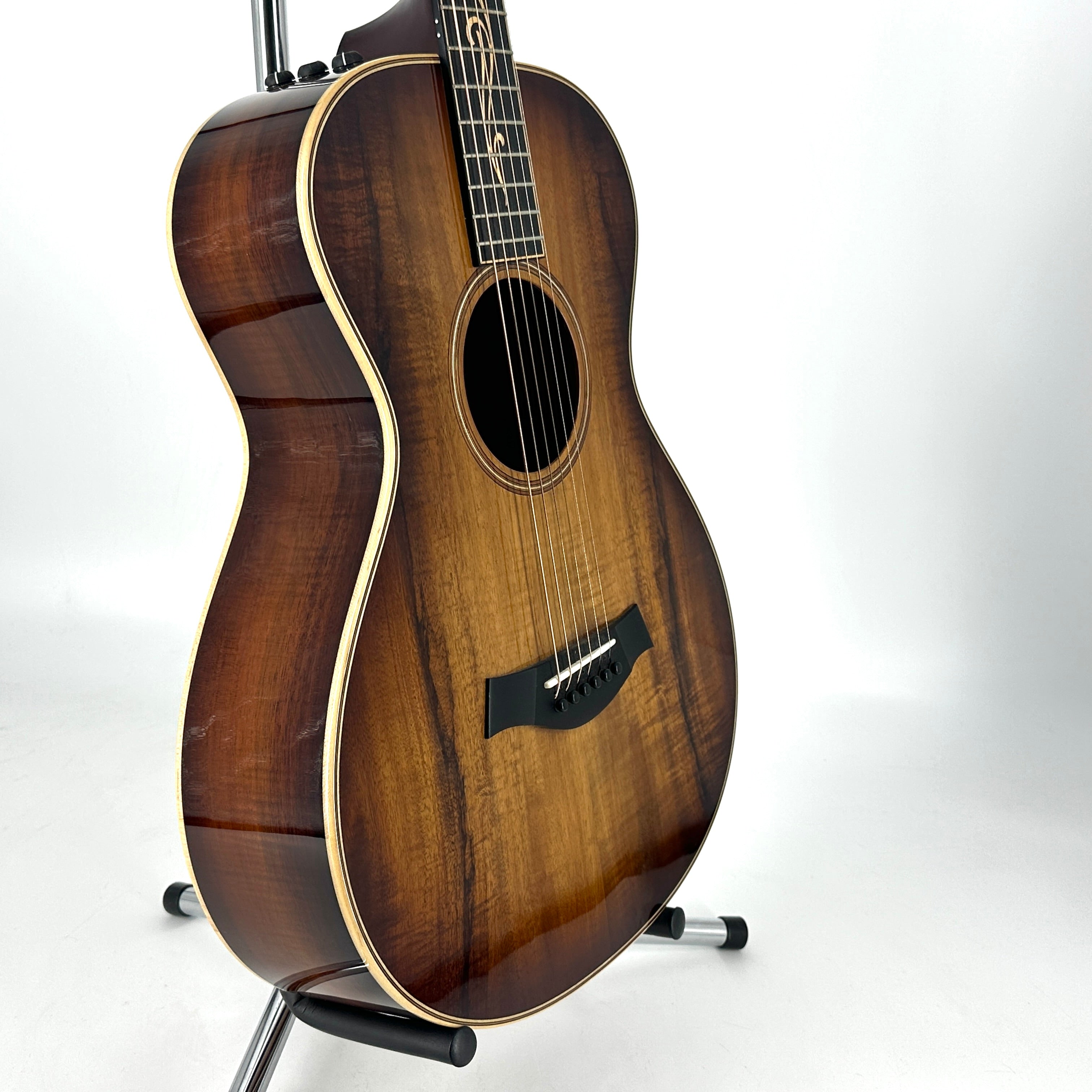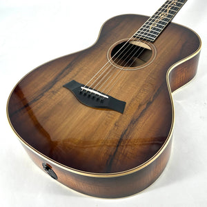 The Koa gives this guitar a rich tone and it has great projection and a comfortable playing position that to its Grand Concert body shape. It has V-Class bracing, Rock Maple binding, Tropical Mahogany neck, West African Ebony fingerboard, 1-3/4" but width, slot head with Ebony button tuners and Taylor's excellent Expression 2 pickup system to ensure it sounds as good when amped as it does unplugged.