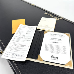 It is Murphy Lab aged and is completely covered in lacquer checking which looks amazing when it catches the light (we've tried to capture this on the photos). It has some small dings, and lightly aged hardware that simulating decades of light play wear, giving it the unique character, vibe, and feel of an original example from the Gibson Golden Era.