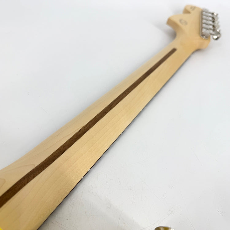 The spec includes an Alder body, Maple neck with modern-C profile, slab Rosewood fingerboard with 9.5" radius, 21x medium jumbo frets tuners, and hardtail string-thru-body bridge.