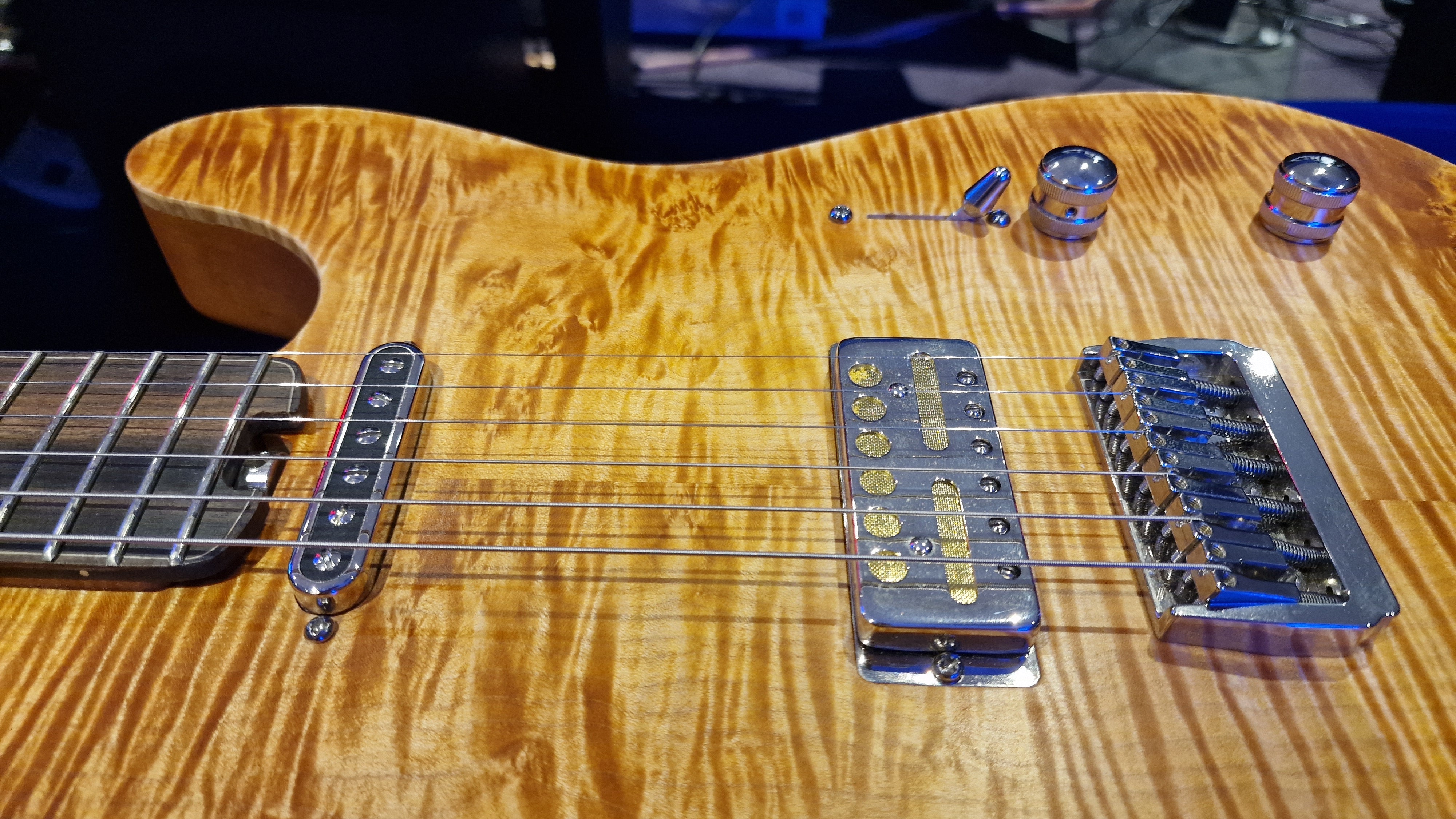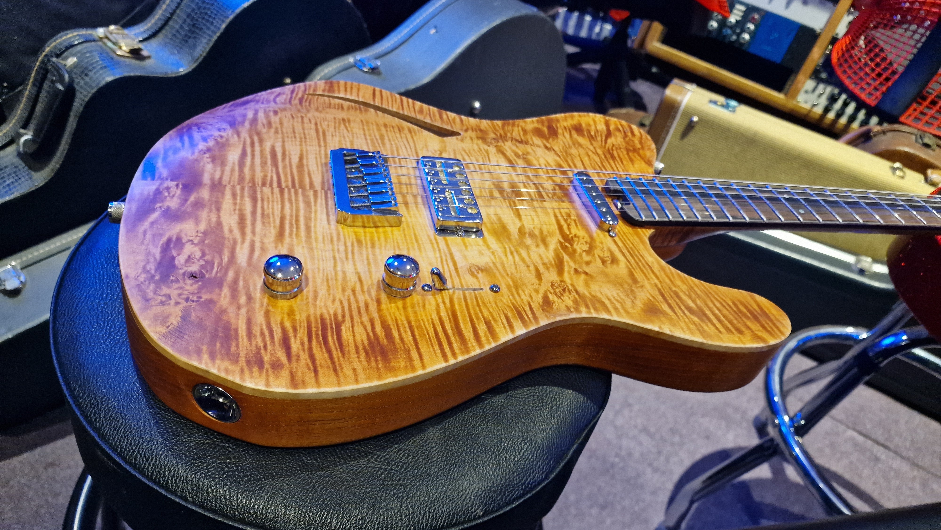 RARE British Boutique Custom Shop Telecaster with the nicest flame maple neck we have ever seen! This guitar has the most premium top spec features we have seen on UK built bespoke guitars. The fit and finish is amazing! Only the finest woods were selected. British custom shop guitars are rare and snatched up by collectors quickly. If you want the very best, you're looking at it! We have two of these master built guitars available: 1 1 Tele and 1 Jaguar variant...we sold the Stratocaster a few months ago.