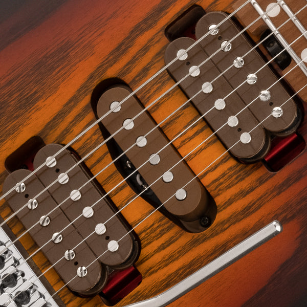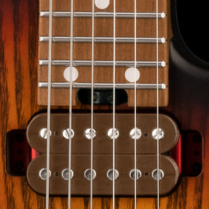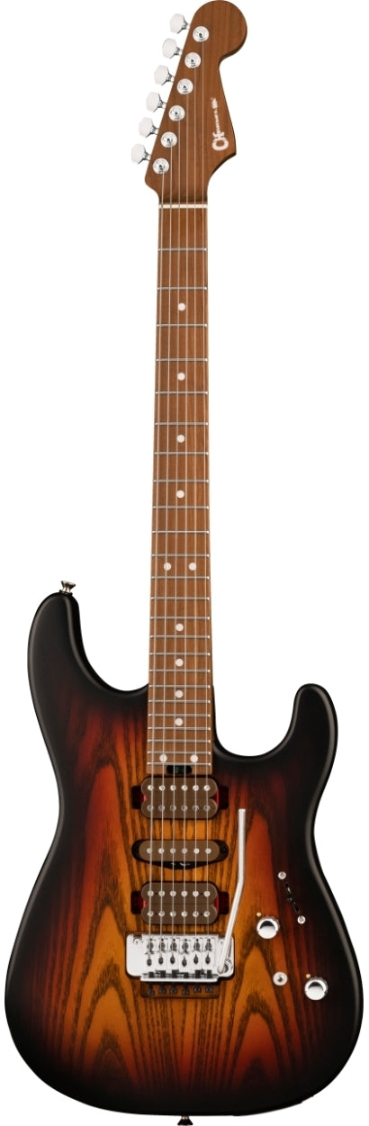 Other premium features include three specially wound Charvel custom pickups arranged in a versatile HSH configuration with five-way switching for the expansive tonal openness and dynamic sensitivity that Govan demands, along with a two-way mini toggle switch to engage single-coil simulation in bridge and neck humbucker positions. This instrument also comes loaded with two Luminlay numbered dome control knobs for volume and tone, recessed Charvel locking tremolo bridge with pop-in tremolo arm and brass block, Gotoh die-cast locking tuners and Graph Tech TUSQ XL nut.