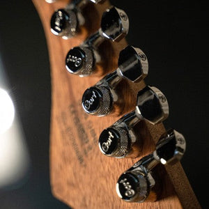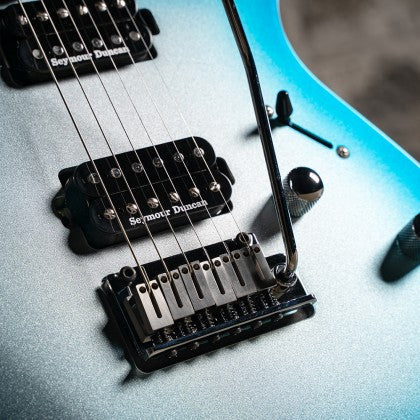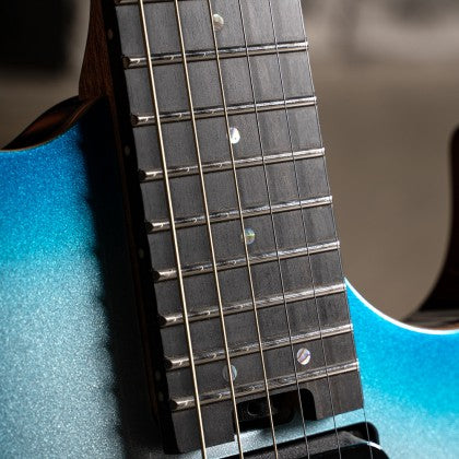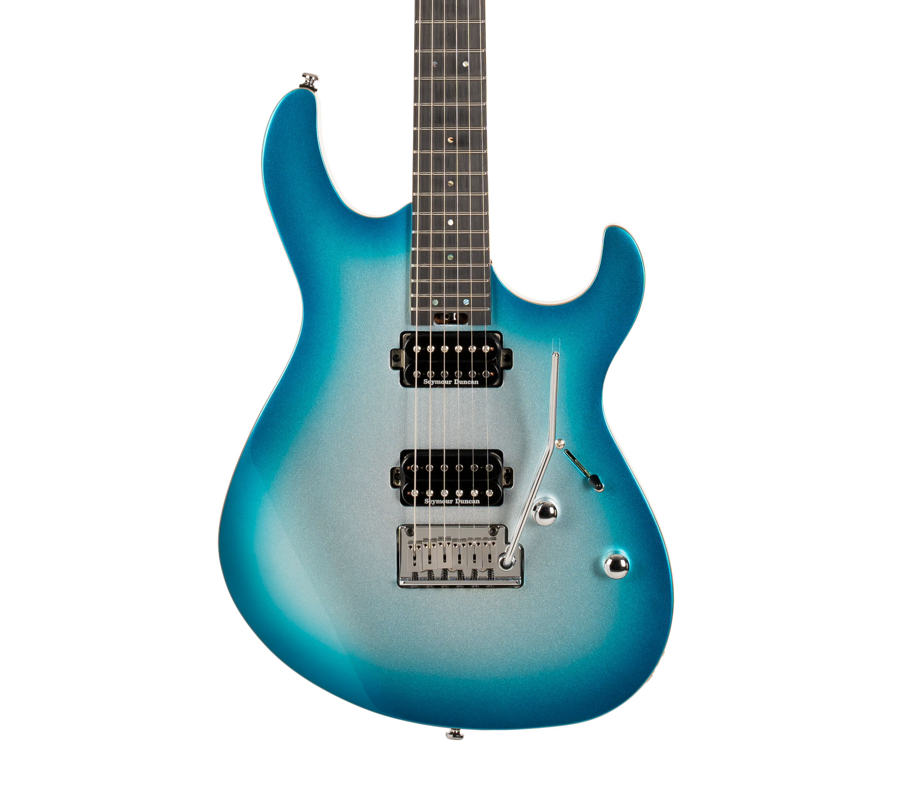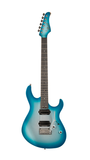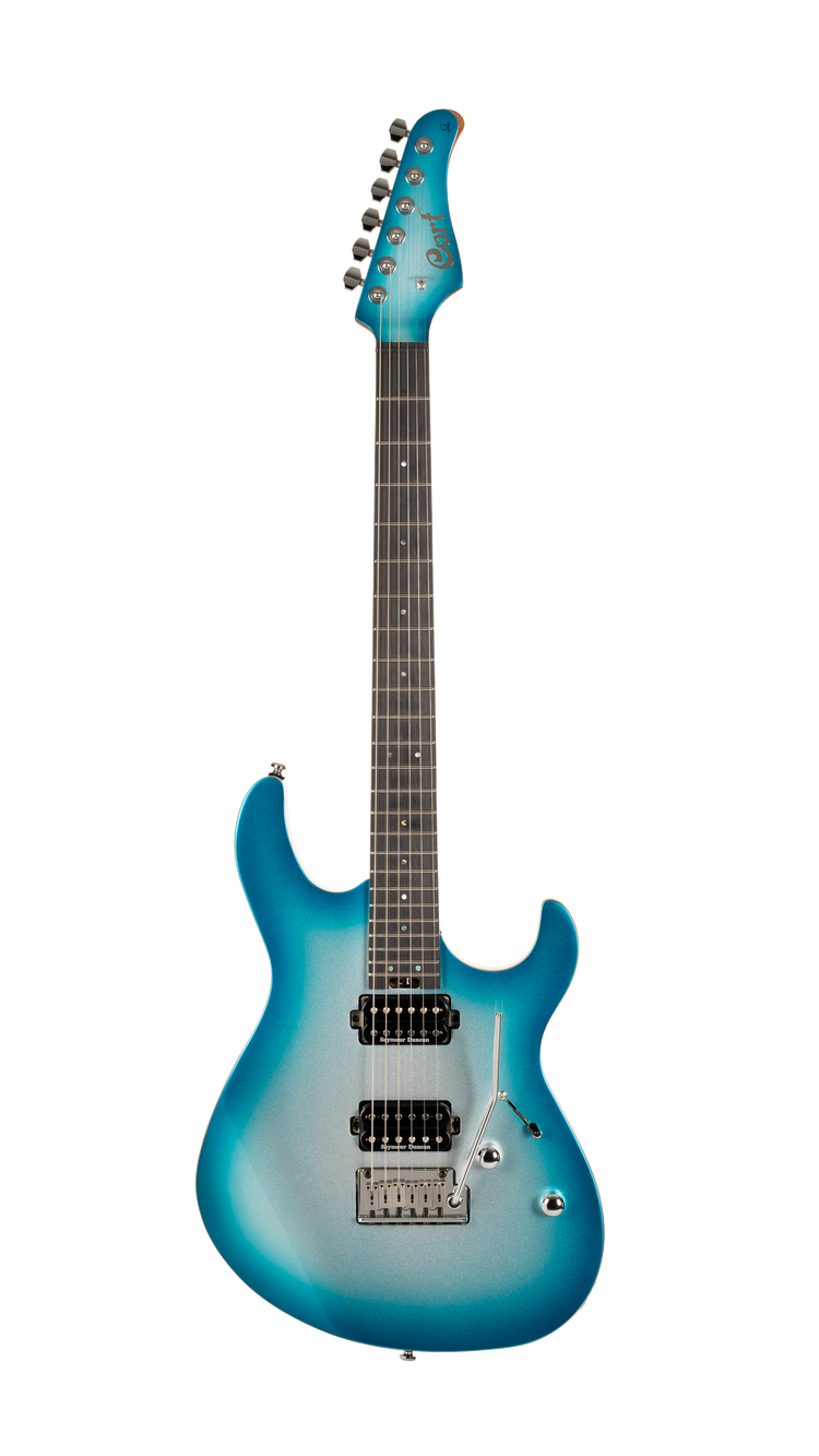 As a follow-up variant of the widely successful, multi-awarded G300 Pro, the new G300 Glam was designed for guitarists seeking a studio-grade versatile guitar with top-tier build quality and components in a glamorous eye-catching sparkling finish. The main feature that differentiates G300 Glam from G300 Pro is the 6mm maple top on a chambered African mahogany body that provides a perfect combination of deep, warm lows and bright punchy mid-highs with superb sustain while keeping the weight light. The ebony fretboard on the African mahogany neck provides sparkling highs and smooth slick playability. Available in the newly designed Polar Ice Metallic Burst finish. Chambered African Mahogany Body with 6㎜(1⁄4”) Walnut Top | Seymour Duncan® SH2N & TB4 Humbucker | Custom Wired Electronics | Cort® CFA-III Tremolo | African Mahogany Neck & Rosewood Fretboard | Ergo-V Neck Profile | Graphite Reinforced Neck | Compound Radius Fretboard | Graph Tech® Black TUSQ Nut | Stainless Steel Frets | Cort® Staggered Locking Tuners | Luminlay Side Dots