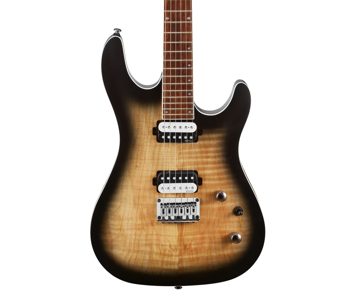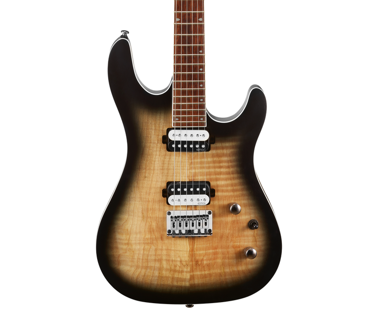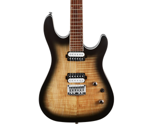 The KX300 takes the KX Series to a new boutique level of quality and features with Spalted Maple top on Mahogany body, EMG® RetroActive Super77 dual humbuckers with the classic zebra open-coil look and two cool-looking open pore sunburst finishes.