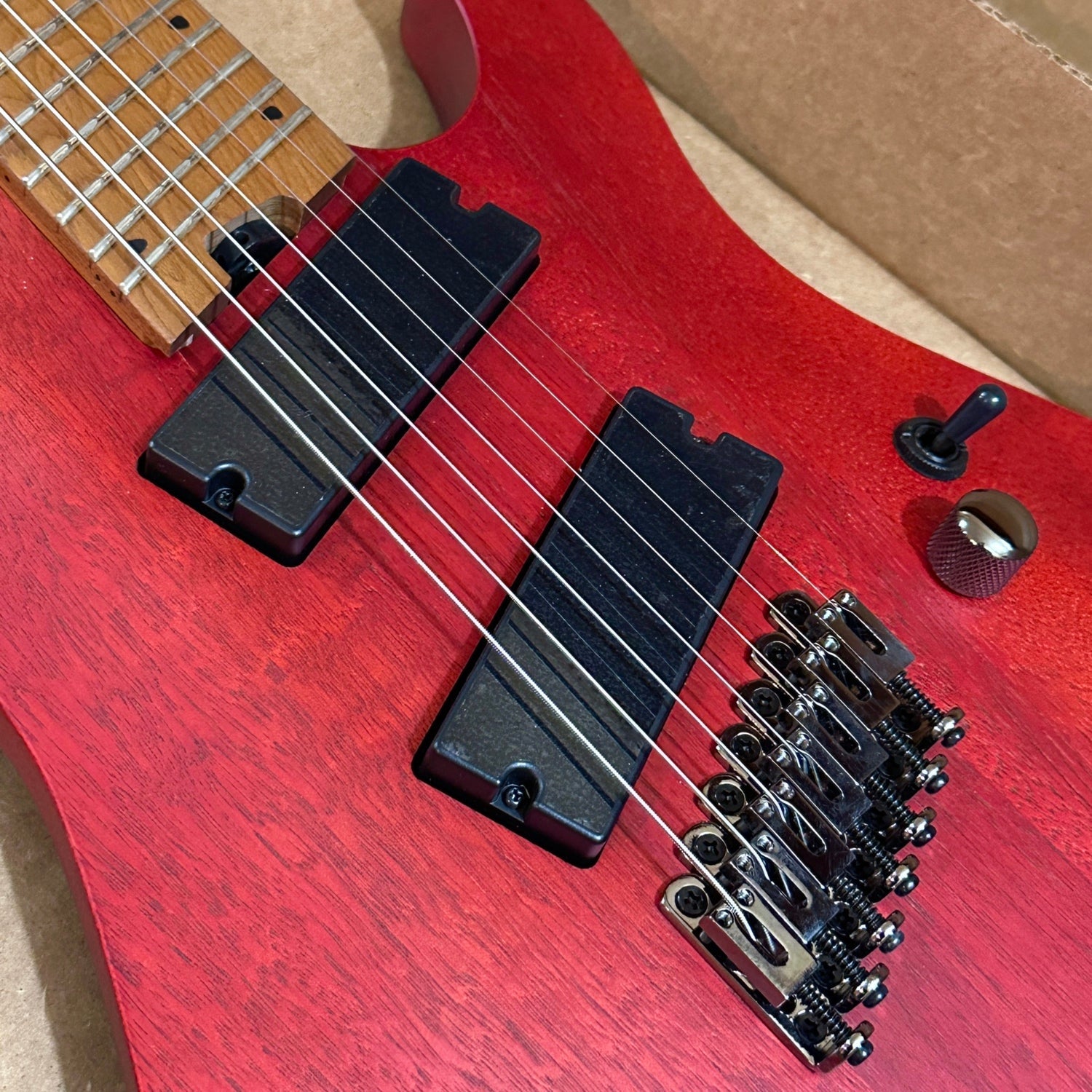 The Cort KX307MSOP Multi-Scale 7-String electric guitar is designed for modern players who need tight low-end and clear articulation for extended range playing. Featuring a mahogany body and roasted maple neck and fretboard, the KX307MSOP offers a balanced, resonant tone with excellent stability. The multi-scale design (25.5" to 27") provides optimal string tension for both low and high strings, ensuring a comfortable playing experience and improved intonation. The PowerBar pickups deliver powerful output and are specially designed for 7-string guitars, providing clarity across all seven strings.