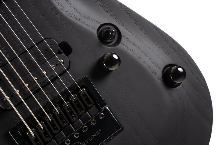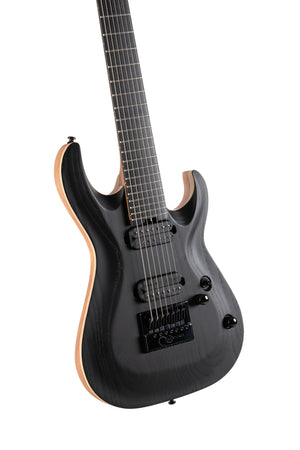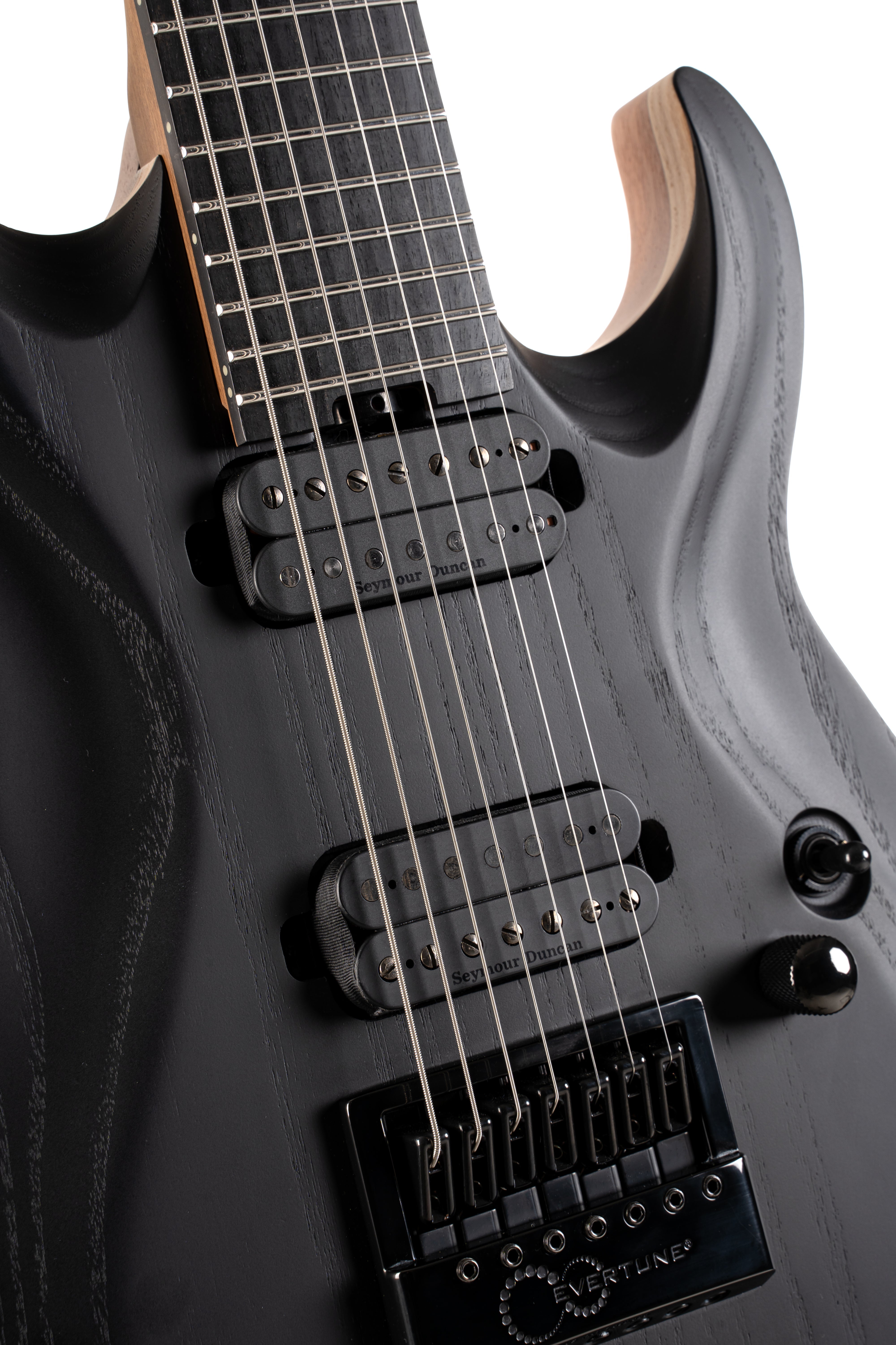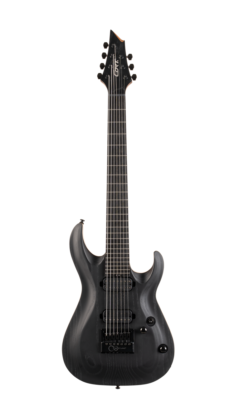 The daring and innovative KX700 EverTune pushed the envelope of what a modern extreme metal guitar can be and now, this concept has been adapted to the new KX707 EverTune 7-string model that further expands the tonal palette and the low-end aggression that today’s extreme musicians seek. Aggressive yet organic and stylish, the KX707 EverTune, like the KX700, features a redesigned body contour, powerful Seymour Duncan® Sentient and Nazgul 7-string humbucker set that perfectly complements the aggressive aesthetics of the KX700 family, and the EverTune® bridge system for maximum tuning stability and integrity. The KX707 EverTune takes the modern extended range concept to the next level of all-round performance. - Construction: Bolt-On - Body: Ash top(19/32" 15㎜) on Mahogany - Neck: 5pcs Maple & Walnut - Fretboard: Ebony - FB Radius: 15.75" (400㎜) - Frets: 24 (Stainless Steel Frets) - Scale :25.5" (648㎜) - Nut Material: PPS - Nut Width: 1 57/64" (48㎜) - Inlay: Luminlay Side Dots - Tuners: Cort® Locking Tuners - Bridge: EVERTUNE ET001F 7ST - Pickups: Seymour Duncan® Sentient & Nazgûl Humbucker Set - Electronics: 1Volume, 1Tone, 3Way Toggle Switch - Hardware: Black - Strings: D'Addario®EXL120 +NW059 - Colour: OPBK (Open Pore Black) - Gig bag included
