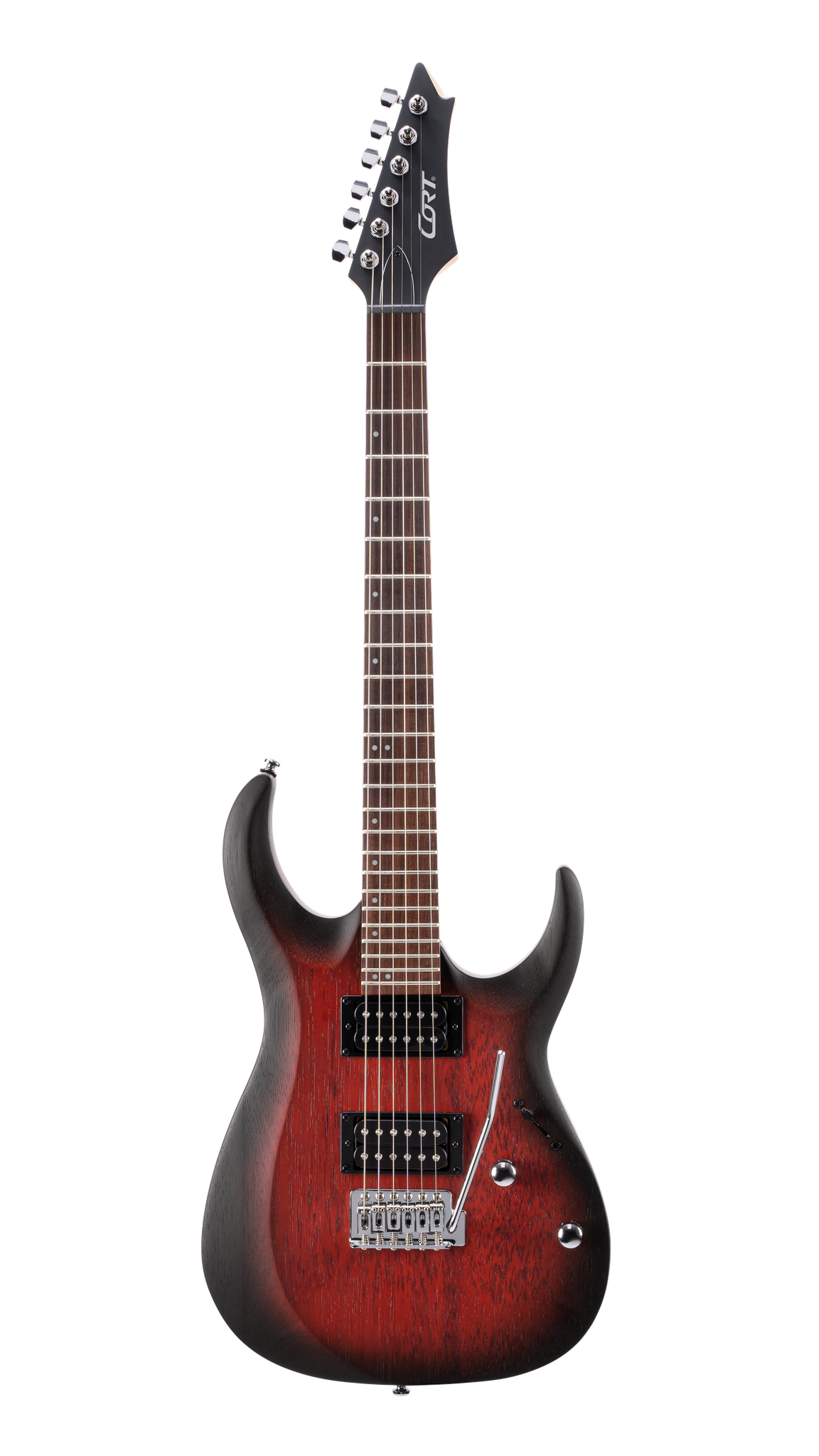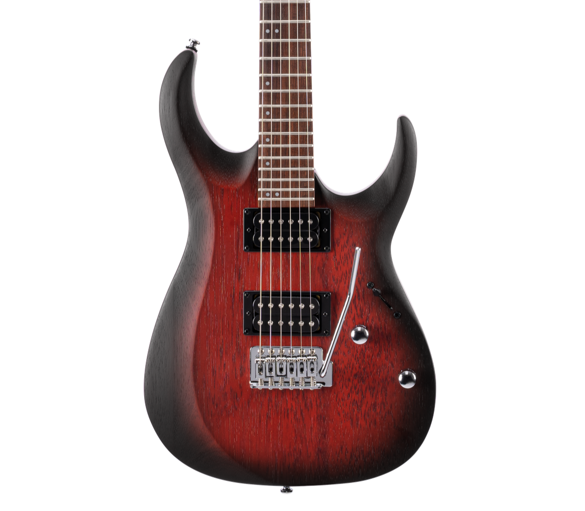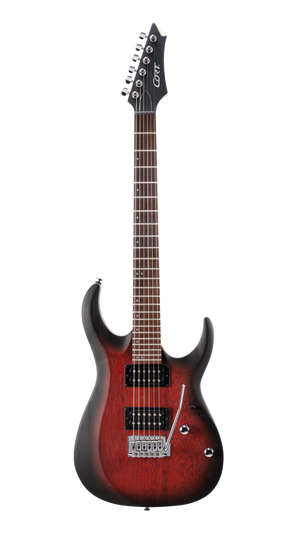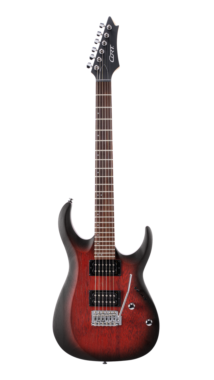 The entry level model of the new X Series, the X100 features the same slick and fast playability of the higher-end X Series models with Meranti body wood and hard rock Maple neck, Jatoba for fingerboard with 400mm(15.75”) radius, two high output humbucker pickups, and 6-point tremolo system available in three open pore finishes: Black, Black Cherry, and Black Cherry Burst. Meranti Body | Powersound Pickups | 6-Screw Vintage Tremolo | Ergonomic Body Contour | Hard Maple Neck | Jatoba Fingerboard | 'Next Gen' Cort Logo