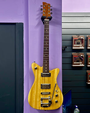 Set neck made from nicely one-piece mahogany, C-shape carve and Rosewood fretboard (12" radius). Nickel Silver jumbo frets, including stainless steel zero fret, 25.5" scale. Sycamore inlays.