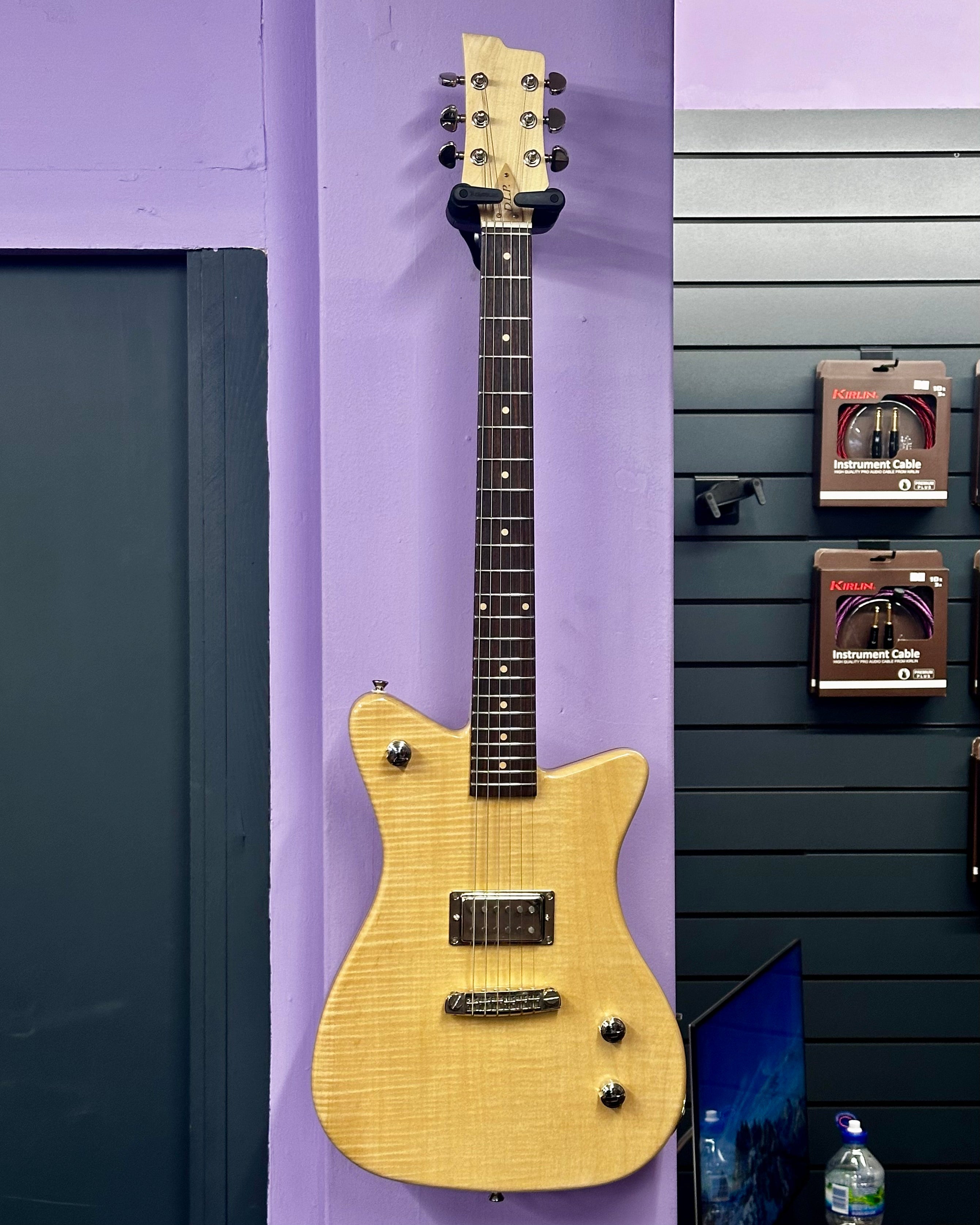 Set neck made from nicely flamed Sycamore, C-shape carve and Rosewood fretboard (12" radius). Stainless steel jumbo frets, including zero fret, 25.5" scale.