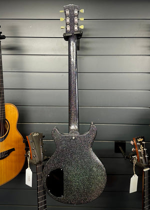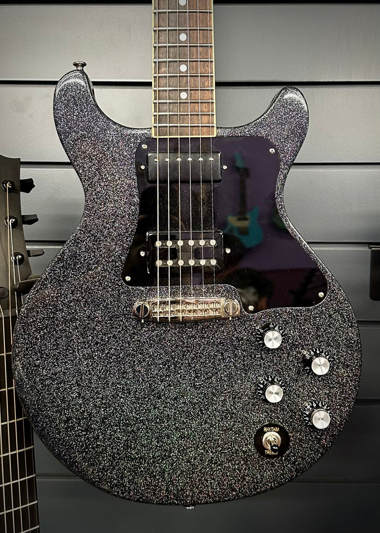 A one-off from DLP, this double cut Junior style guitar is finished in a stunning Holo-Flake paint. Hard to capture on camera but it looks incredible in person.