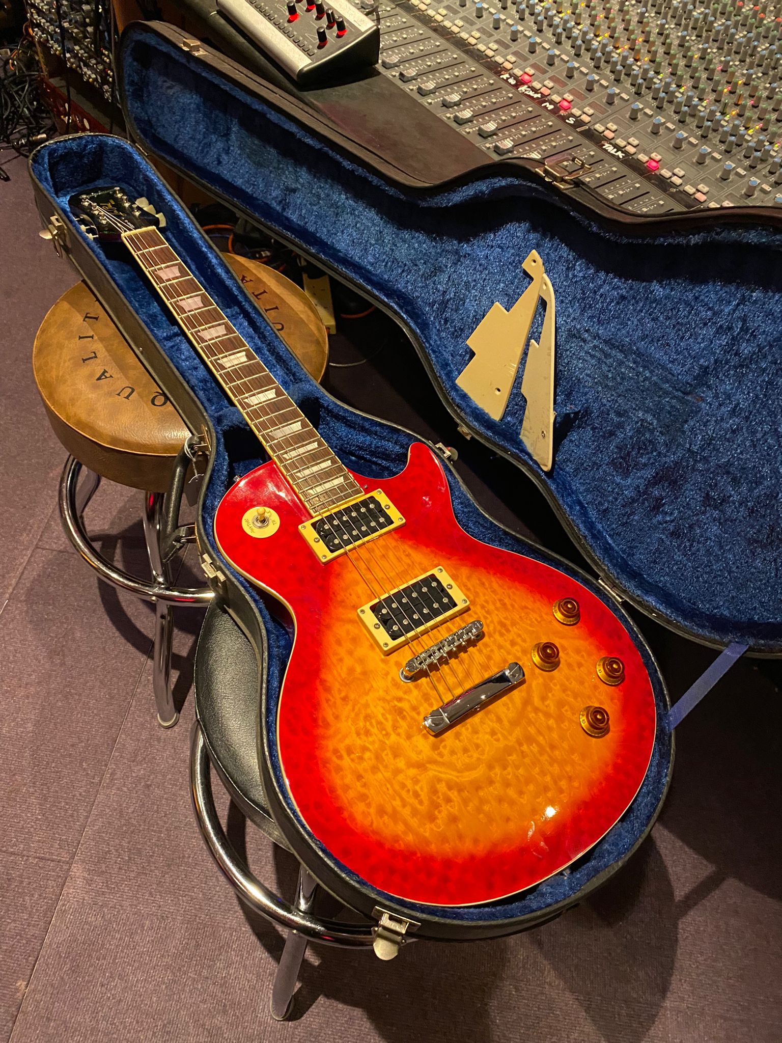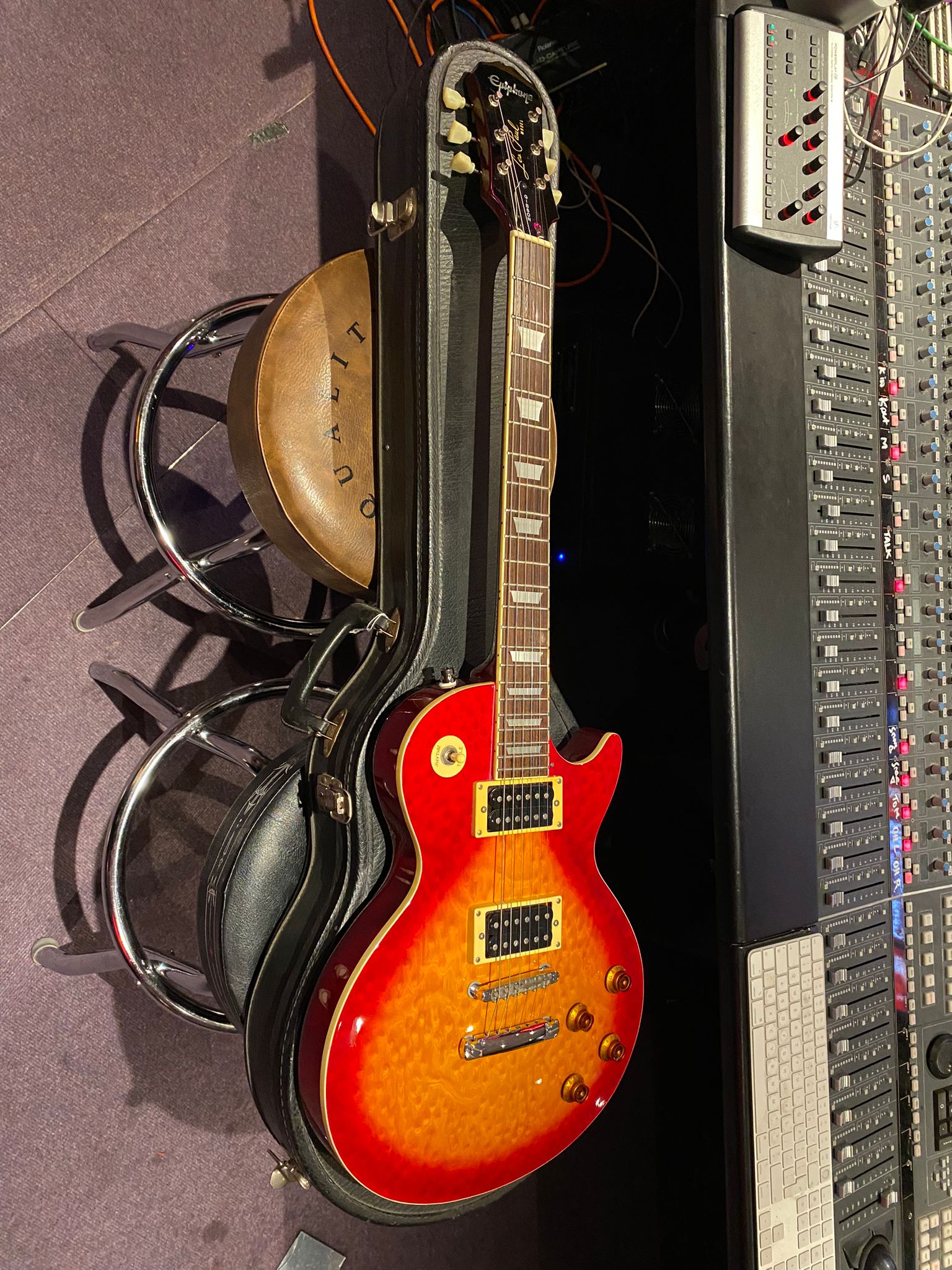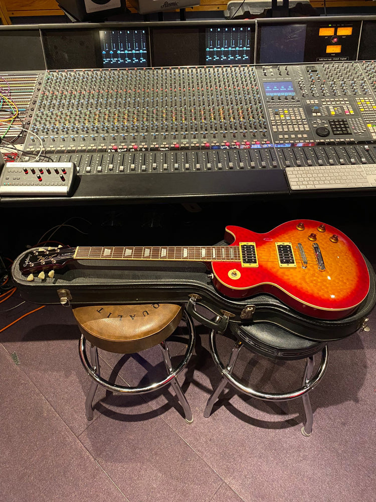 This premium Epiphone Les Paul guitar is part of the world famous instrument collection at Essex Recording Studios! All pics, info and best prices are always on our official Essex Recording Studios site. Follow us on Facebook, Instagram, YouTube, TikTok, & Twitch @essexrecordingstudios