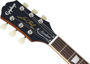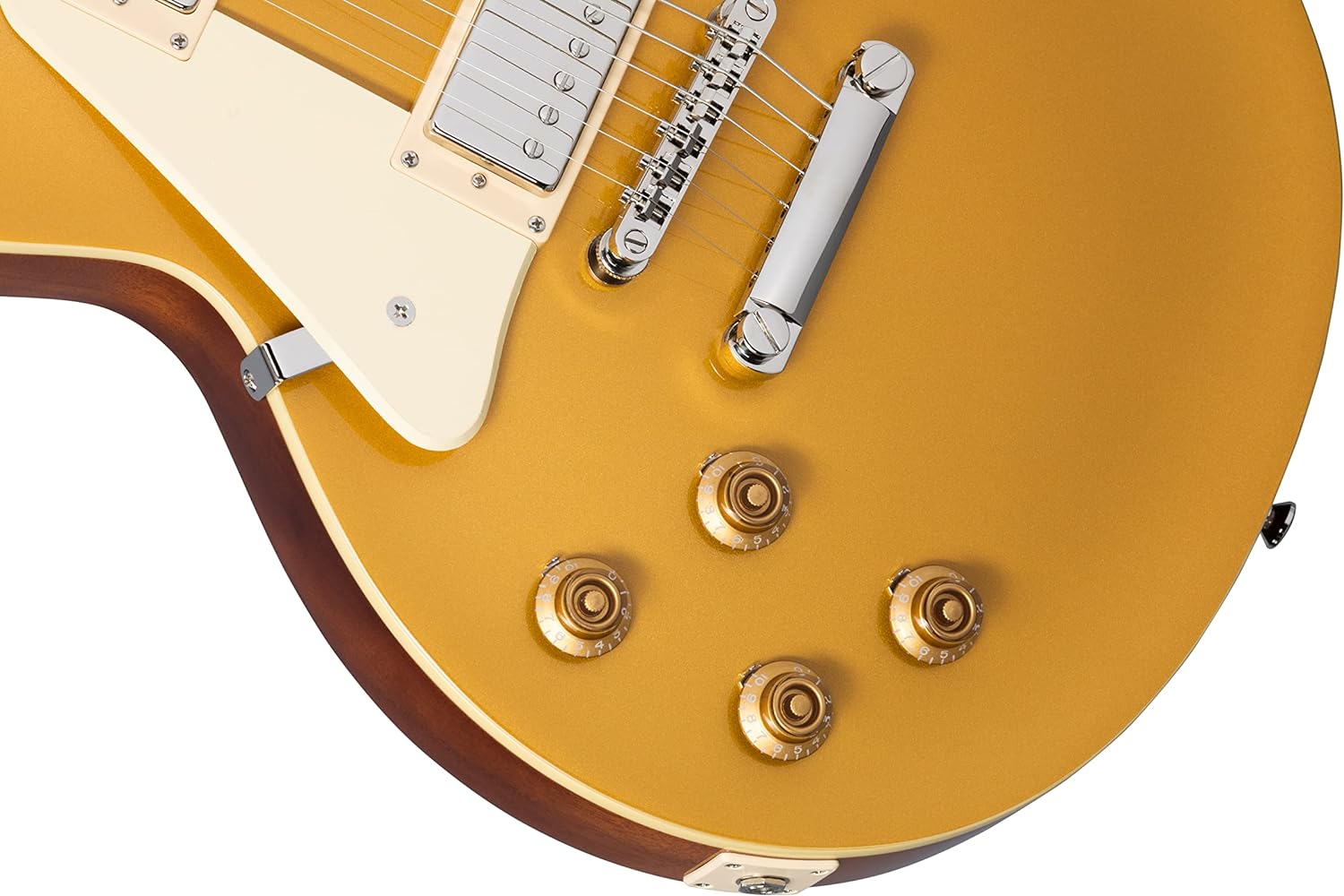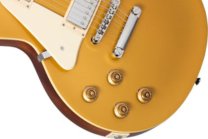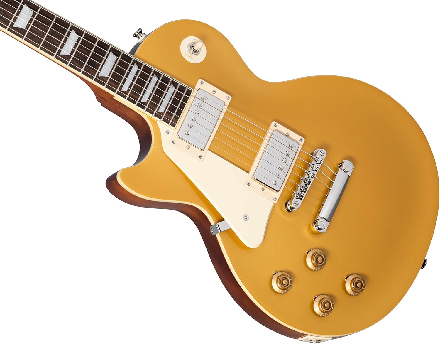 BRAND NEW Epiphone Les Paul Standard '50s Metallic Gold Top left hand! Inspired by the Gibson Les Paul, it offers the same feel and character as the iconic and revered guitar - but at a much more affordable price. The neck/body joint is also based on the original and features the long glued neck heel (Long Neck Tenon) of the classic LP models. On the tonal side, there are two Epiphone ProBucker-1 and ProBucker-2 with original CTS electronics, which produce sought-after PAF tones between the neck and bridge positions, expertly covering the classic Paula soundstage from steamy rock tones in bridge position to Clapton's warm 'woman tone' with the tone pot rolled down on the neck.