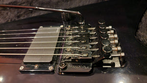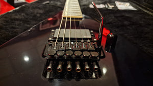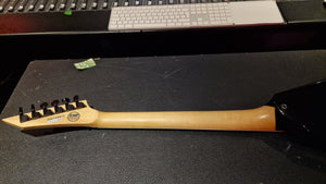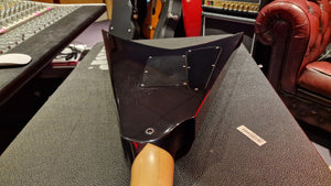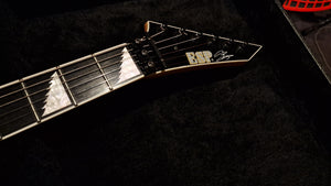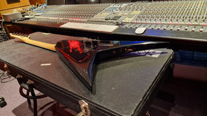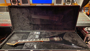 ESP Alexi Laiho Signature Sawtooth V guitar customized by heavy metal royalty artist Andy Sneap, who toured this guitar with Sabbat and later Hell where the body was professionally changed from white with black bevels to all black for the Hell tour. Sneap brought this guitar to our studio after mixing the last Dream Theater album to winning a Grammy for Best Metal Performance and performing on stage with Judas Priest for multiple tours. Andy Sneap is arguably the most prolific engineer and producer in the world for the heavy metal genre and is an accomplished guitarist touring with one of the most famous bands in the world! The case has tour travel transportation stickers for Los Angeles and Germany!