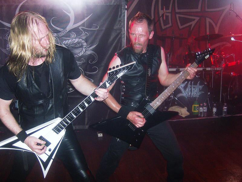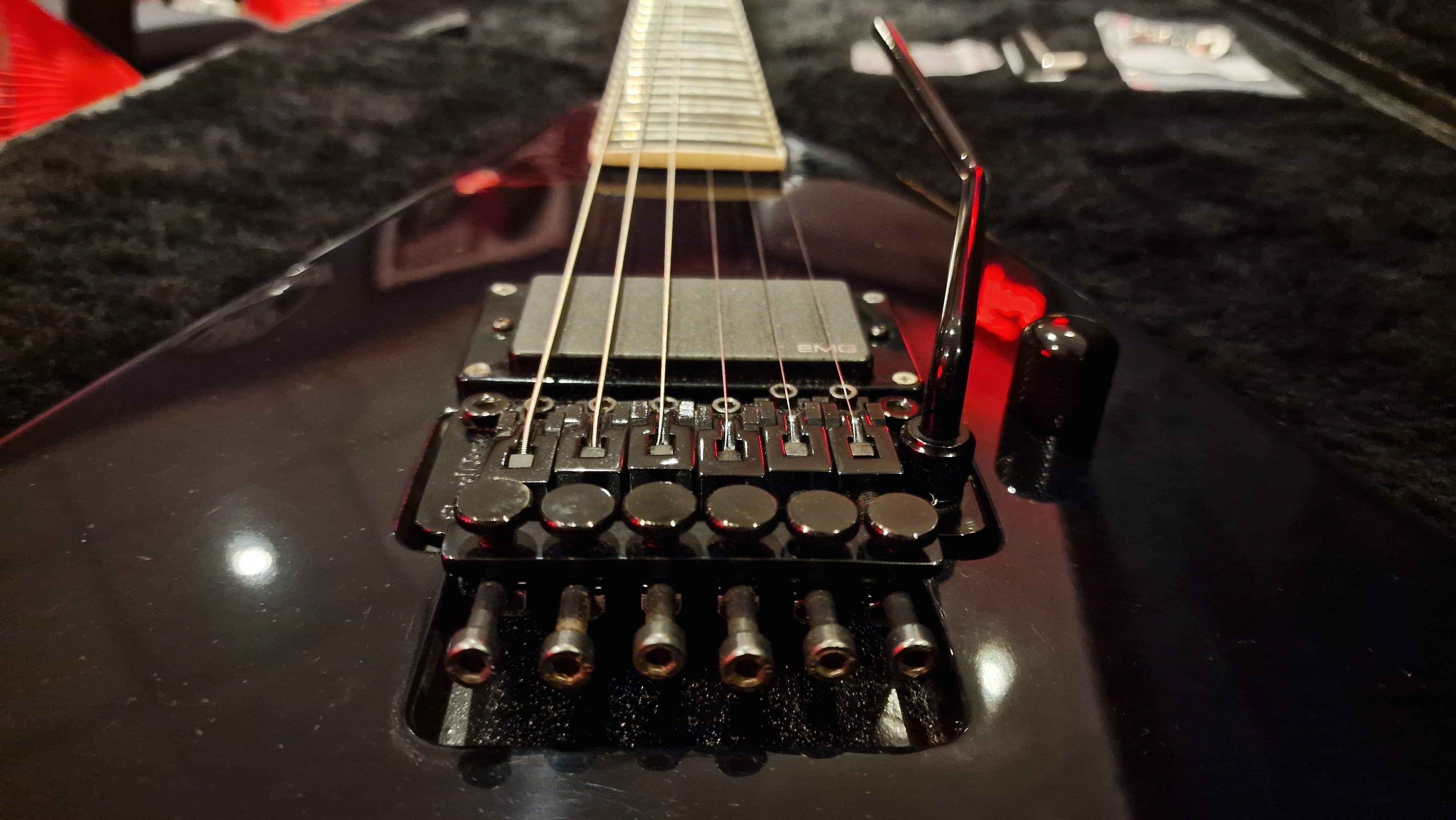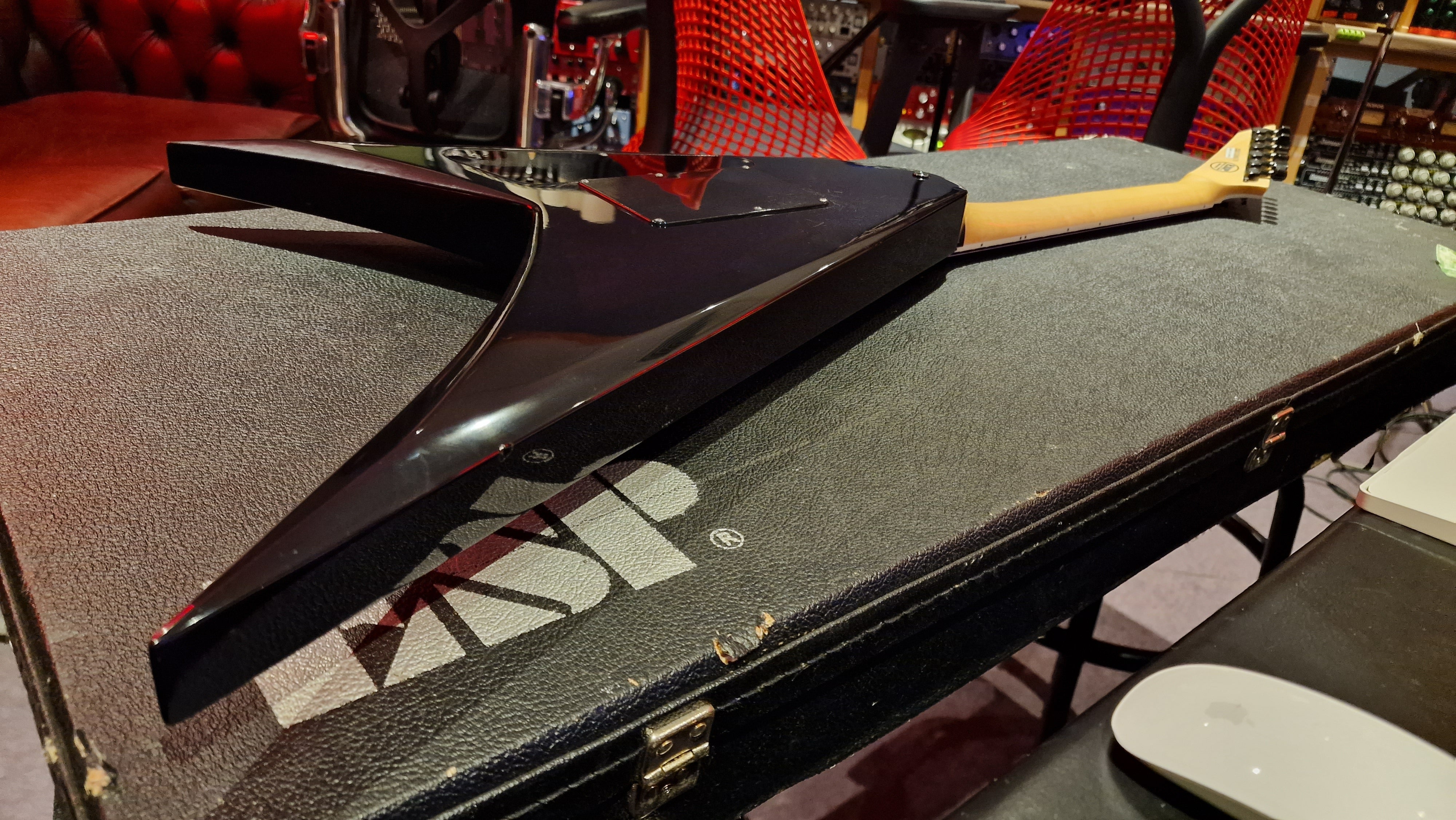ESP custom Alexi Laiho Signature Sawtooth Flying V artist owned by Andy Sneap (Sabbat, Hell, Judas Priest)
