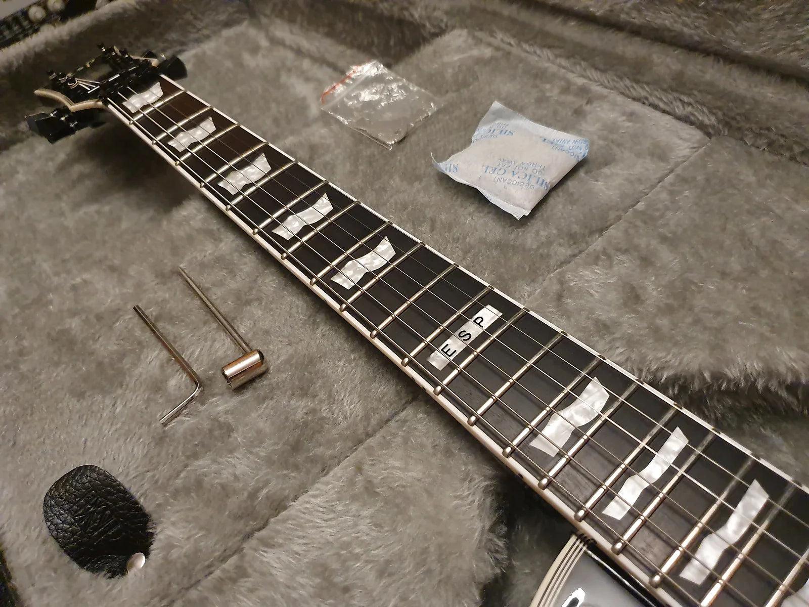 ESP Custom Shop Eclipse Prototype guitar built for Doug Scarratt of Saxon! RARE opportunity to buy a major artist owned ESP custom prototype guitar built by the company's top luthiers in their best factory for about half the price of a new ESP Kirk Hammett Ouija guitar. This is an ESP Eclipse FR Floyd Rose Prototype built for Doug Scarratt of Saxon! It was used on tour by him as can be seen in many photos and also used to record on Saxon's "Battering Ram" & "Thunderbolt" albums!