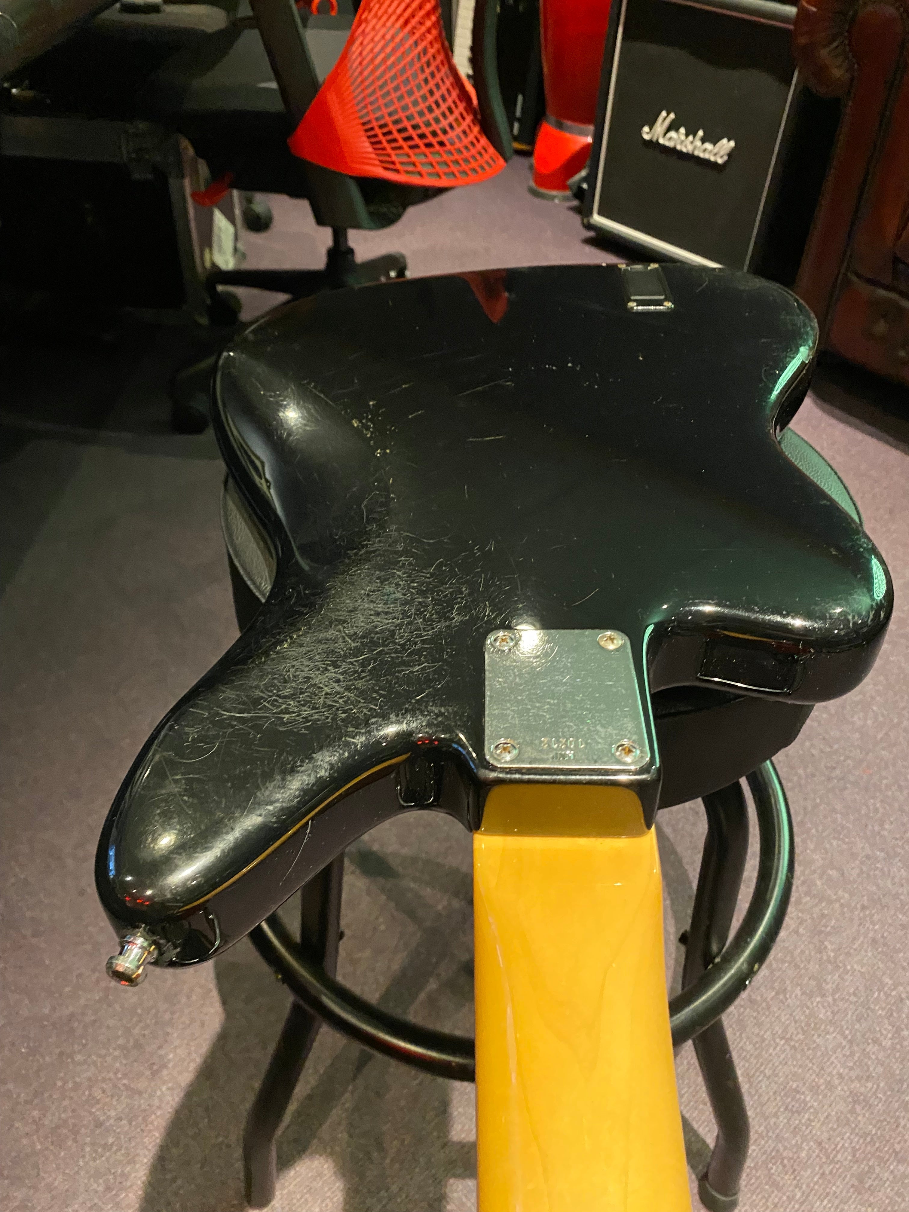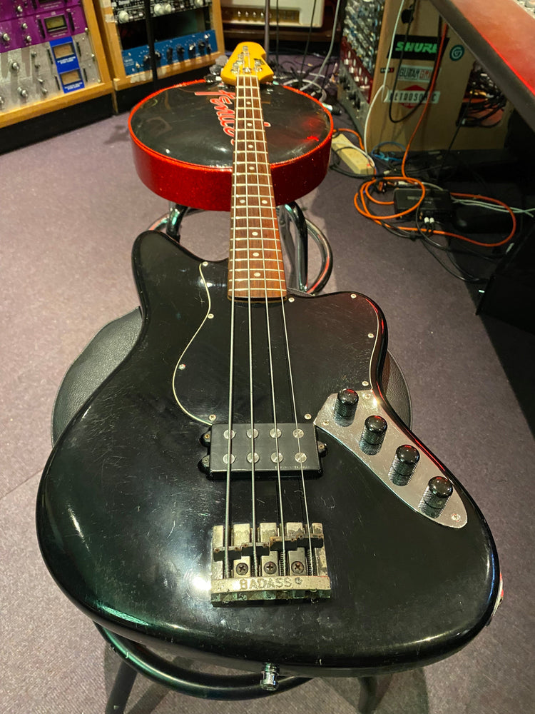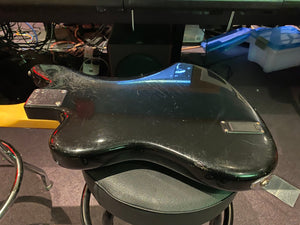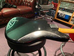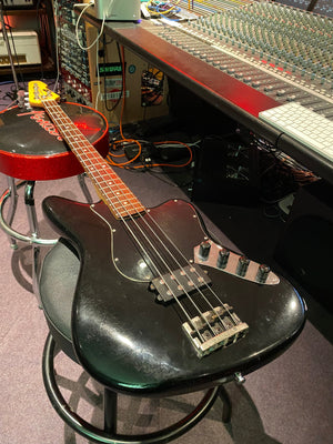 RARE ESP Japan Custom Shop Groover Bass with the original BADASS Bridge, USA Seymour Duncan Bass Lines Music Man (Stingray Bass) pickup and active EQ! This is the only one in the world! This is an absolutely killer bass that will make your stand out sonically in the studio and visually on stage. Epic tones from this with a huge range of sounds you can get out of it. The bridge could use a nice clean, and the paintwork is a bit scuffed... but that's rock & roll for you. Since the body is black anyway, give it a fresh paintjob of whatever color you love and it will look brand new! Or keep it the way it is! The offset shape looks awesome on stage. A new ESP Japan bass can cost well over £3,000 today with the lower E-II and Edwards series selling at around the £2,000 mark. This is an absolute bargain for a unique ESP Japan Custom Shop bass!
