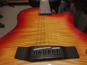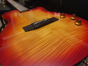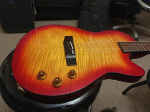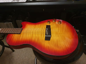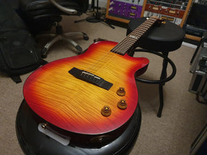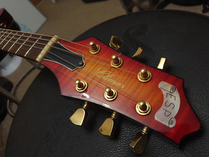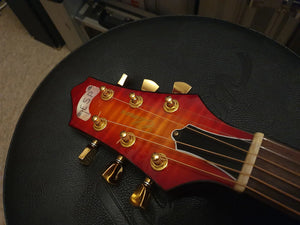 ESP Custom Shop Climax piezo solid-body electric guitar in the familiar PRS Singlecut / Les Paul body style. One of the nicest AAA maple flame tops I've ever seen! These were built by the Custom Shop exclusively for the Japanese market in the early 90's with less than 100 ever made! According to the ESP forums, there is one on display in the Rock & Roll Hall of Fame. Very similar to the Taylor solid-body with maple body and mahogany neck. Extremely well balanced with incredible tone. This is a very rare ESP with only a very limited amount ever made. This is a must have for the ESP collector and anyone wanting a unique sound for the studio and unique look for the stage! This flame top is absolutely stunning!