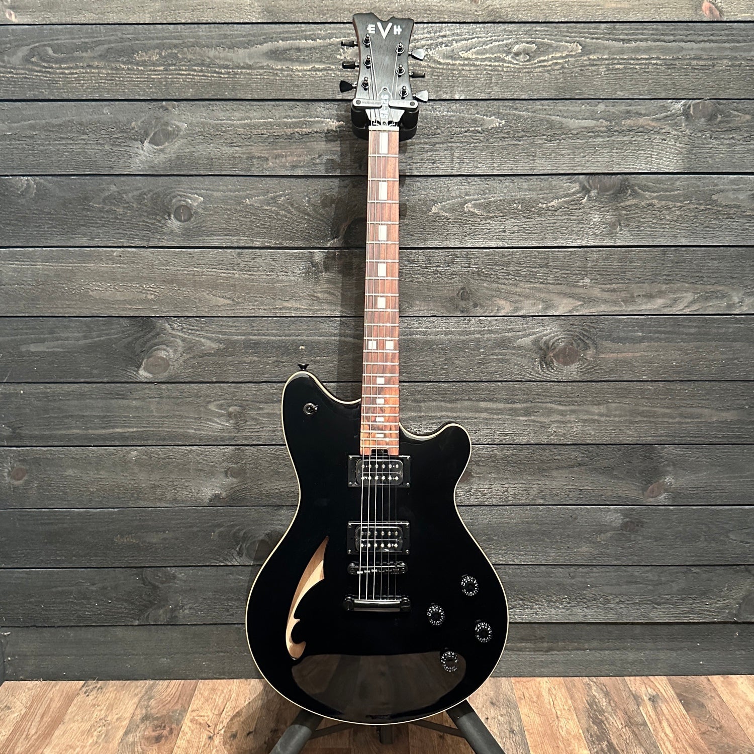 The EVH SA-126 Standard electric guitar is a groundbreaking instrument that redefines the boundaries of guitar design. This guitar, conceived by Wolfgang Van Halen, seamlessly blends elements of semi-hollow and solid-body construction, resulting in a versatile and tonally rich instrument that's perfect for a wide range of playing styles. Whether you're craving chunky rhythms, soaring leads or pristine cleans, the SA-126 Standard is ready to unleash your musical potential.