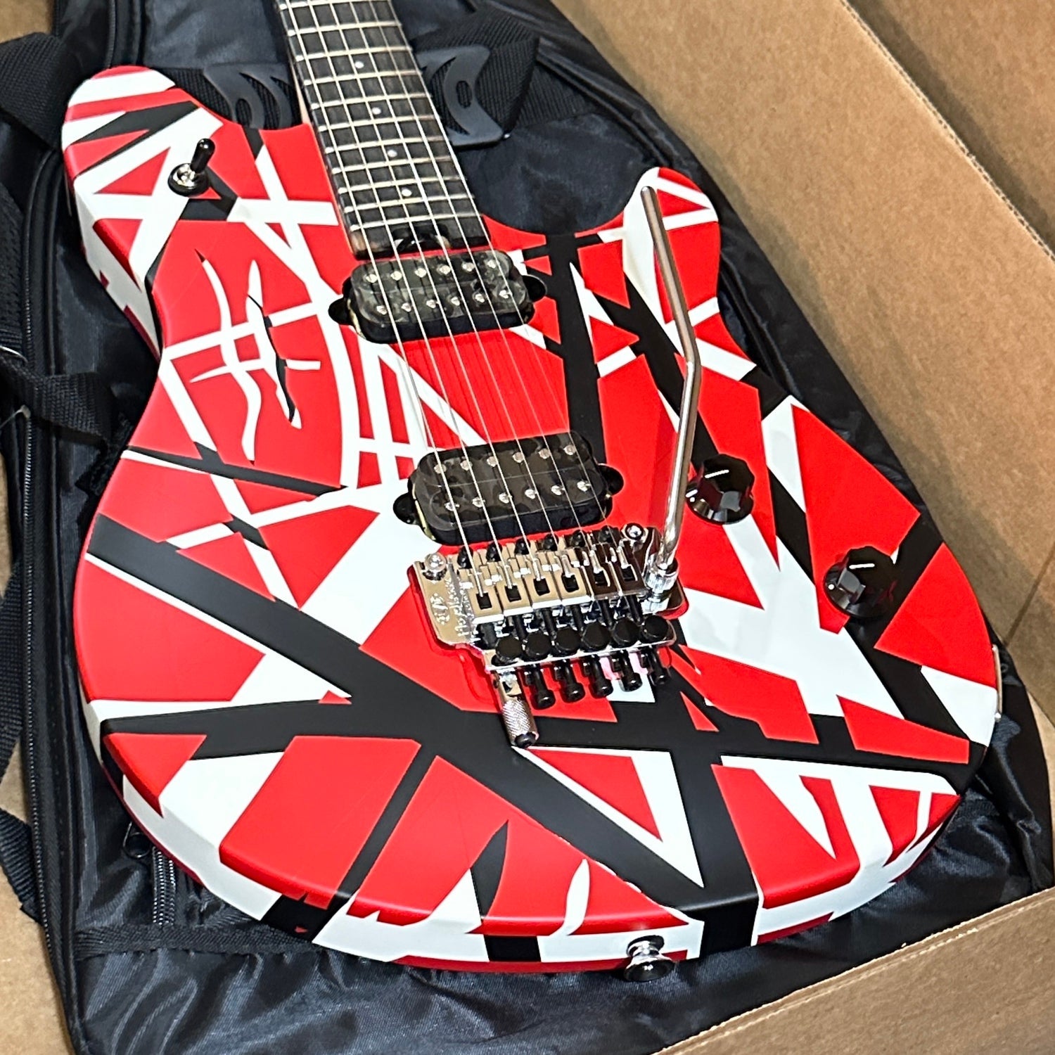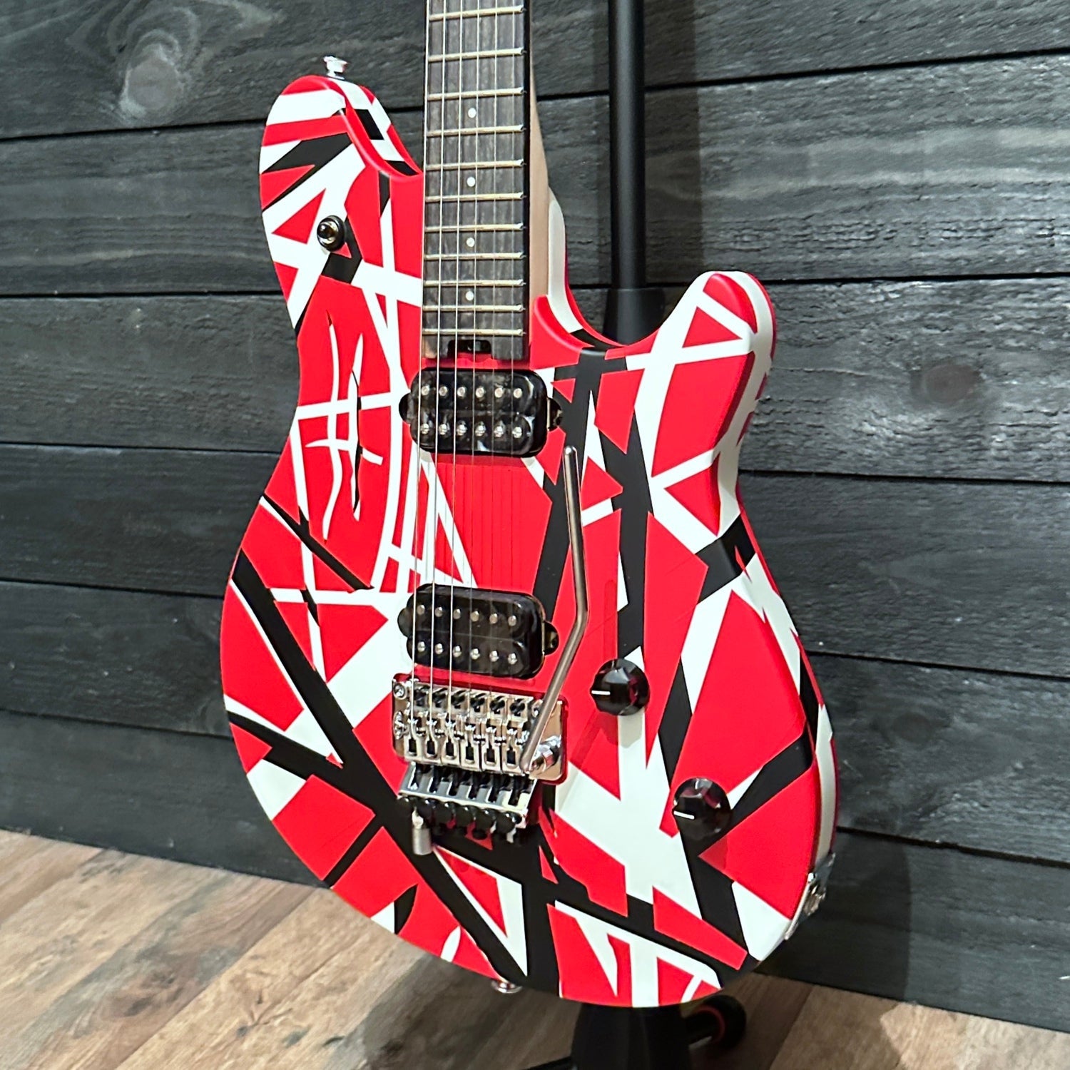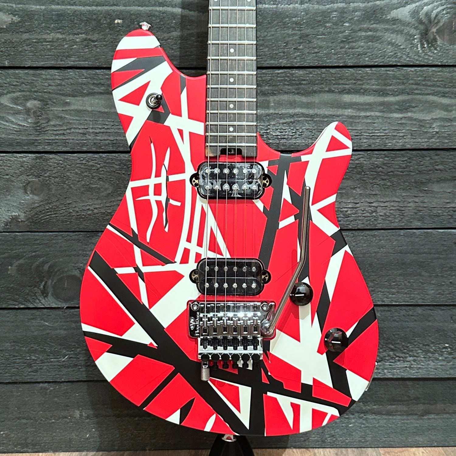 Every component of this guitar has been selected and positioned for high-speed playing. The low-friction volume knob lets you perform speedy violin-like volume swells with ease while the tone knob resists easy turning - avoiding unwanted tonal shifts as your picking hand flies furiously across the strings. The rock-solid EVH-branded Floyd Rose® locking tremolo bridge combines with the Floyd Rose locking nut to maintain precise tuning, no matter how insane your whammy-bar histrionics get. The EVH D-Tuna® retunes to Drop-D and back with strict accuracy at the mere flick of a finger, making this the only guitar you'll need onstage.