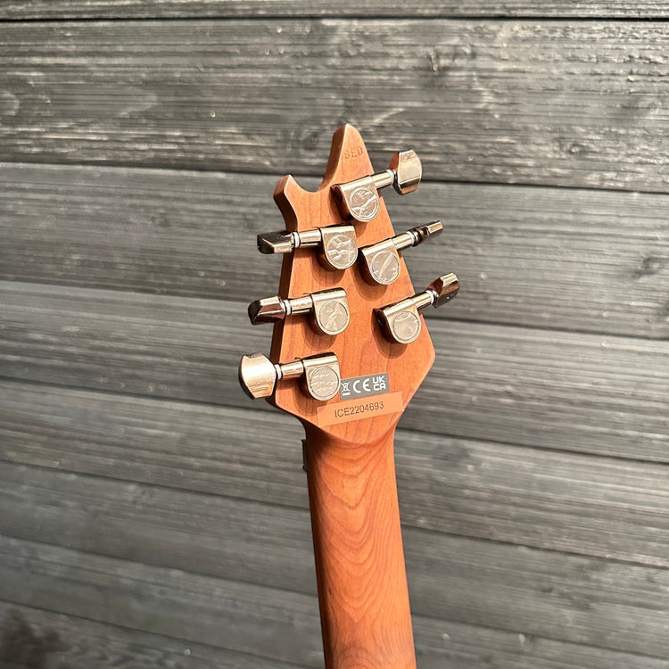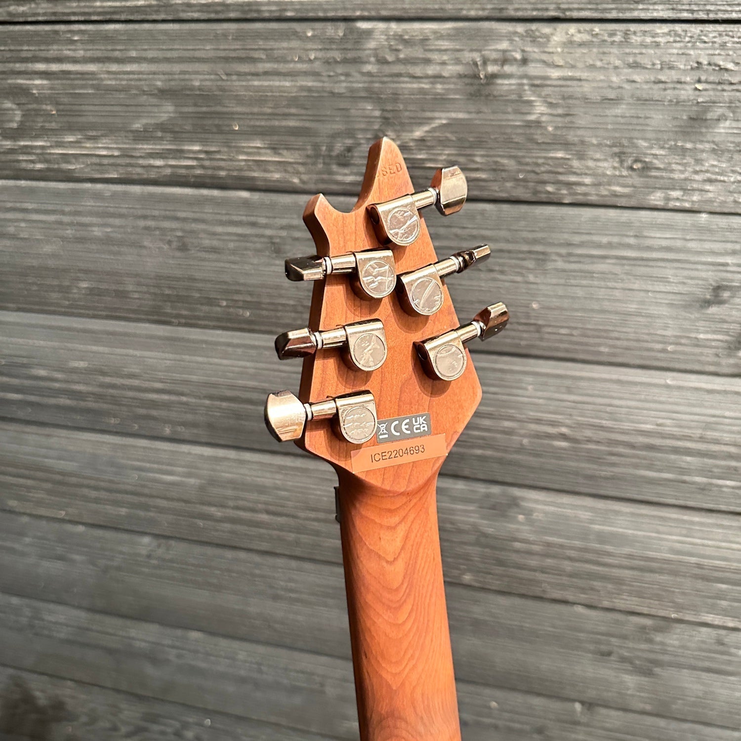 Designed for comfortable playability and speed, this stylish axe also features an oiled finish on the back of the neck and a 12"-16" compound radius baked maple fingerboard with rolled edges, 22 jumbo frets and black dot inlays.