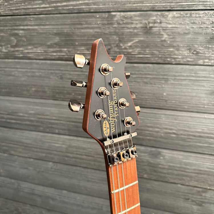 The Wolfgang WG Standard Exotic Koa offers a basswood body with special "comfort cut" forearm contour for maximum playing ease, along with attractive masked-off natural body binding and a gorgeous koa top. Its bolt-on baked maple neck with graphite-reinforcement rods holds strong against the ravages of temperature and humidity, while a conveniently located spoke wheel at the base of the neck makes for quick and painless truss rod adjustments.