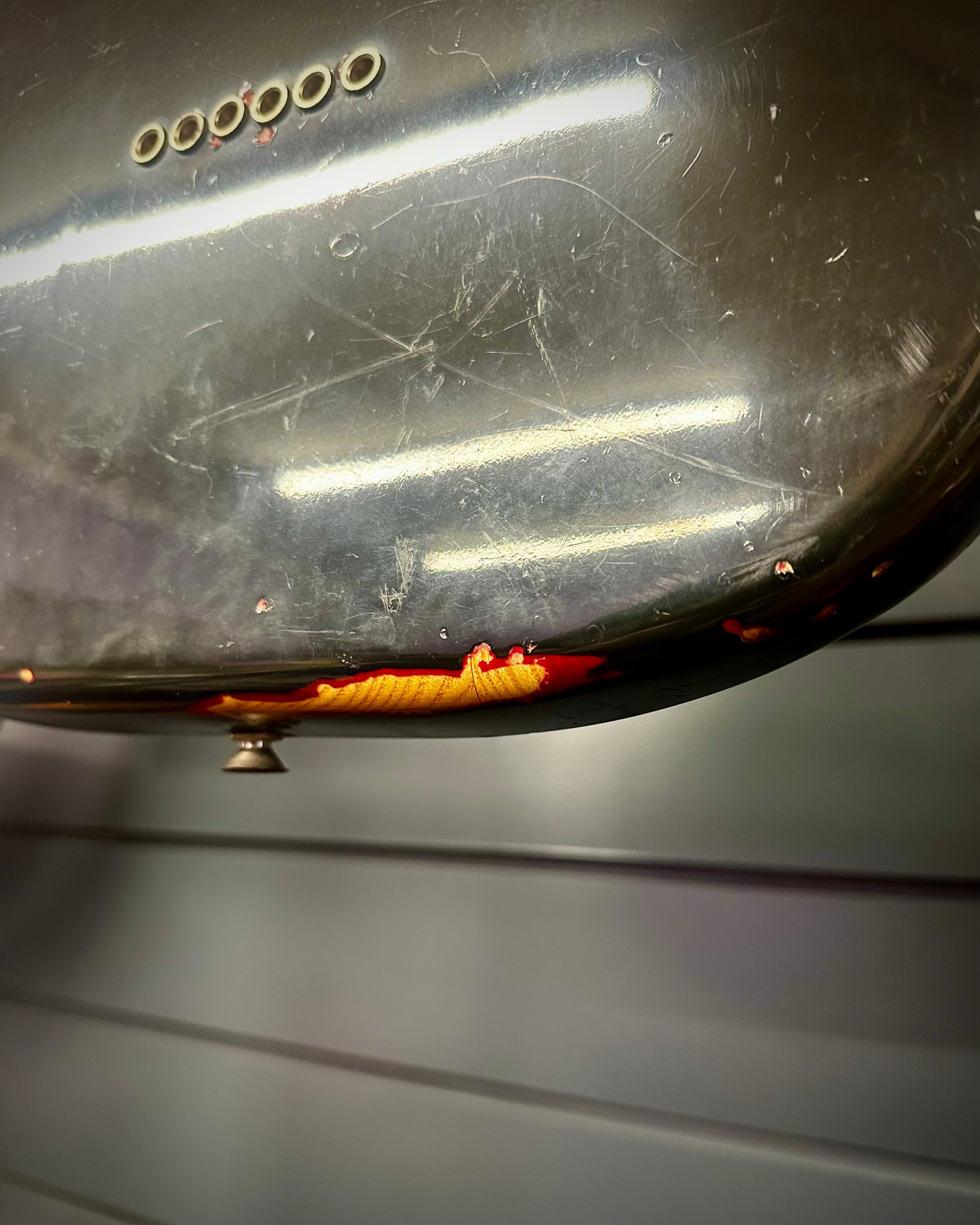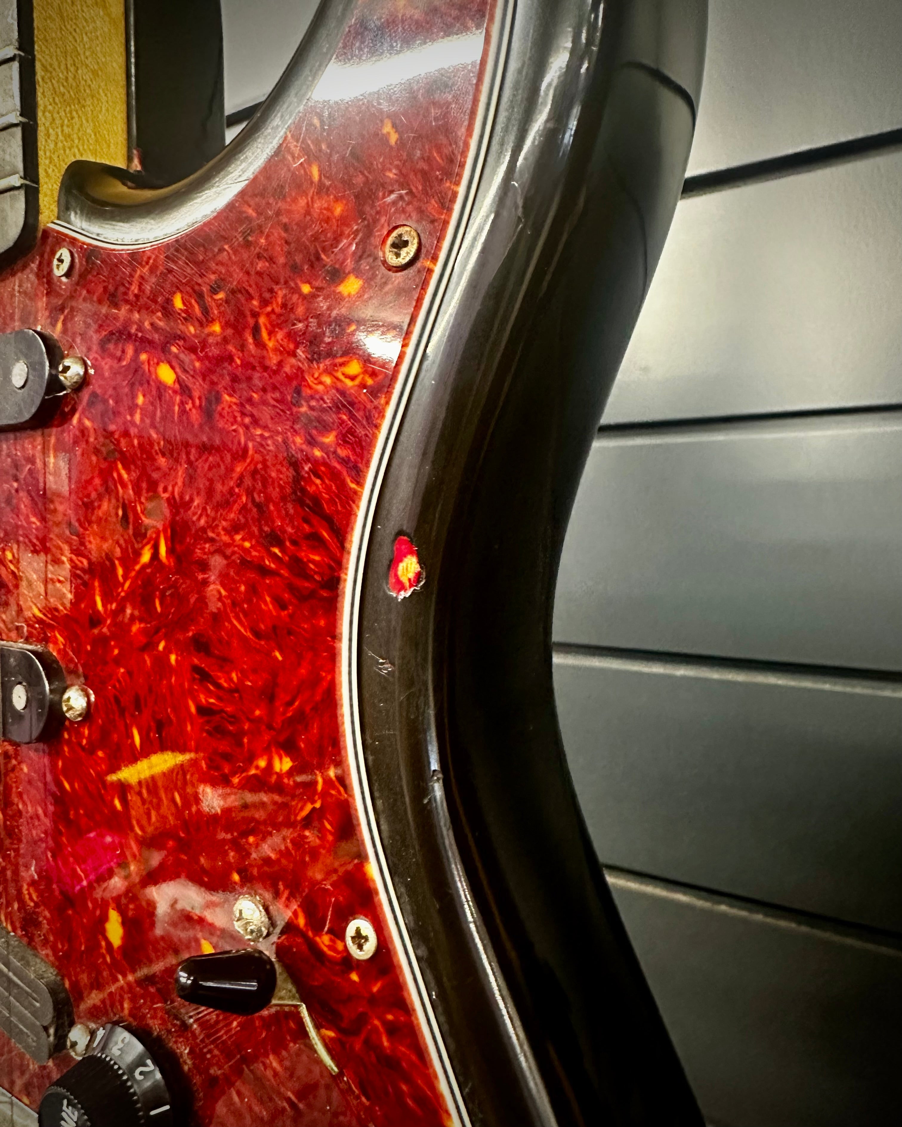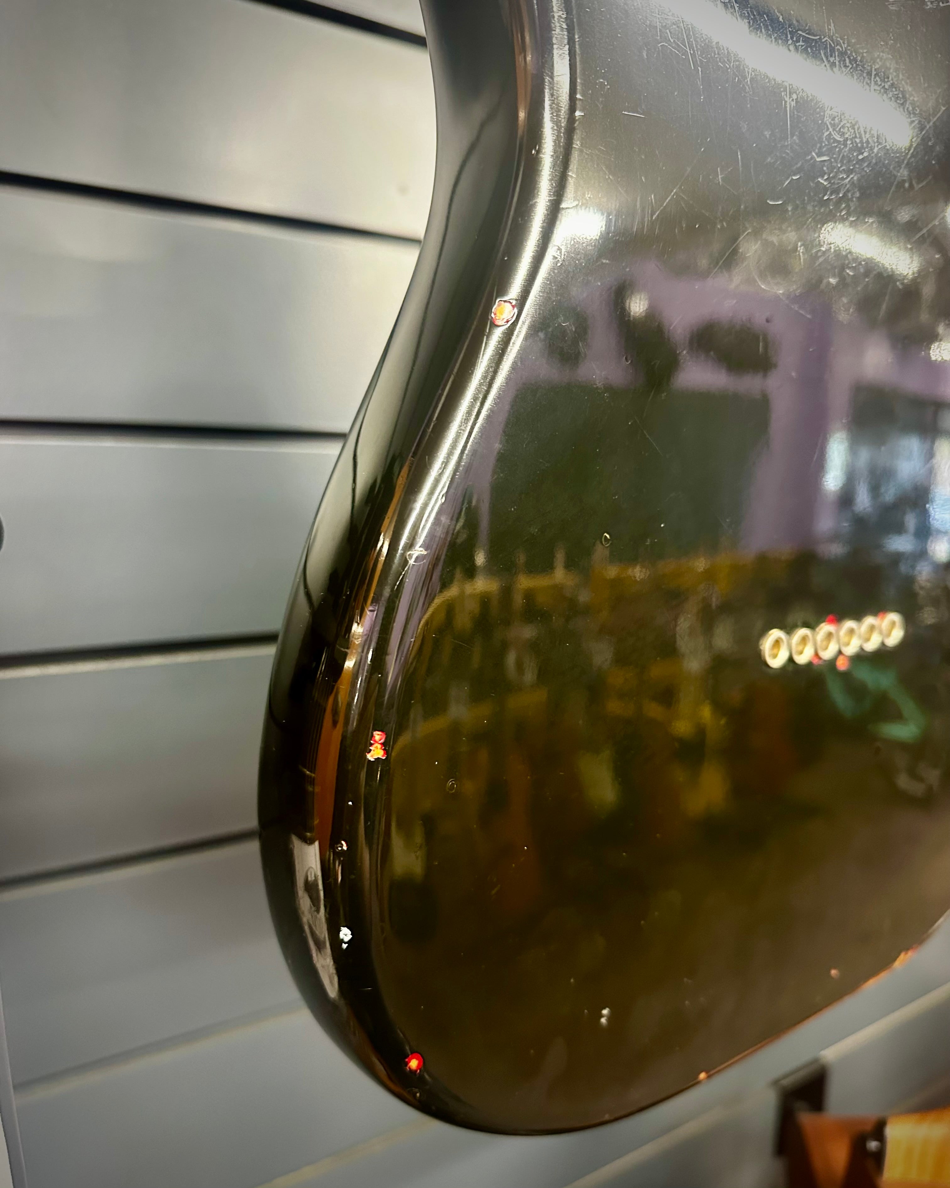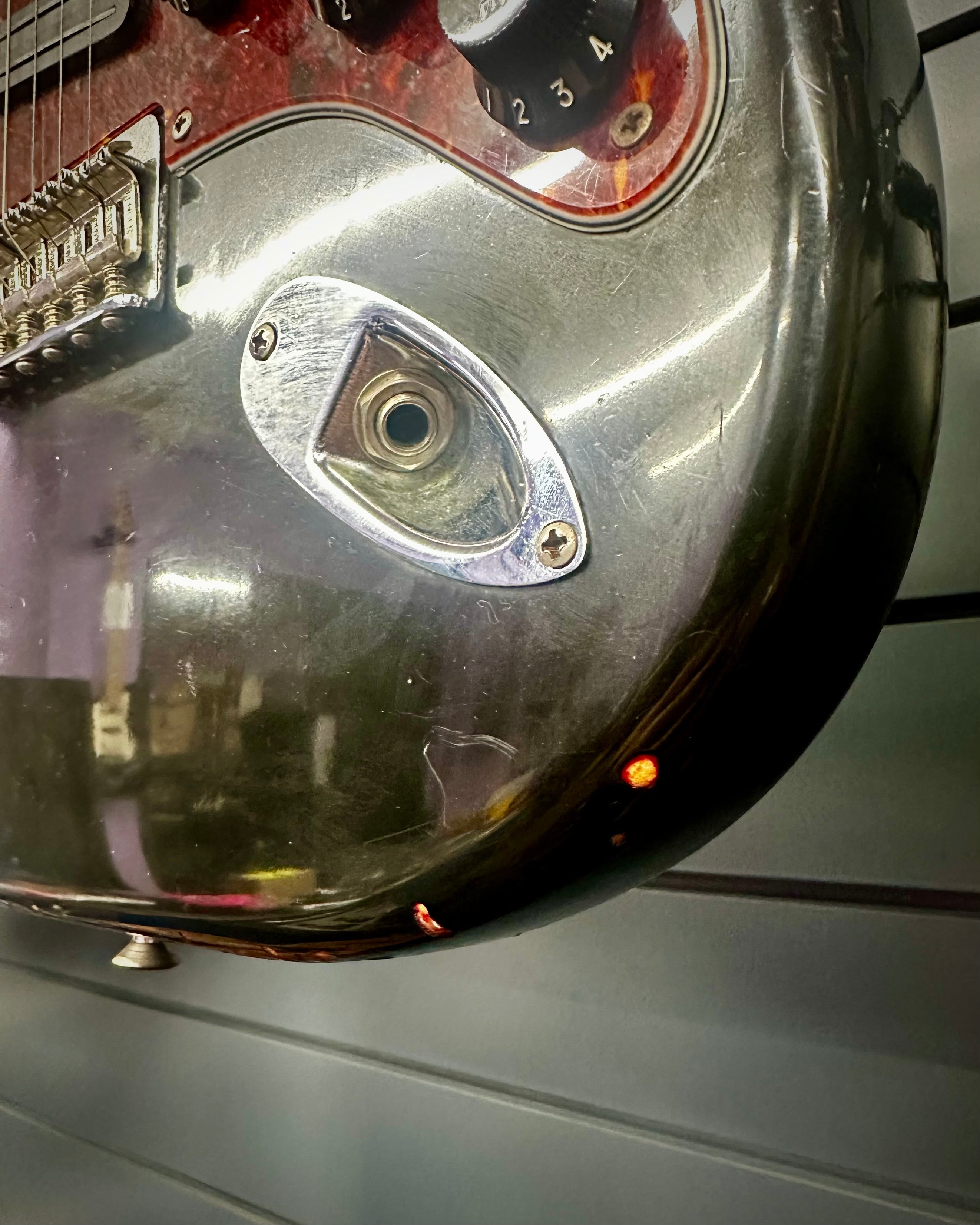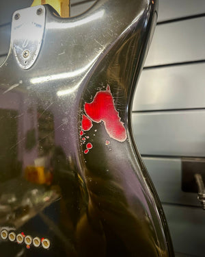 This is a true vintage instrument. Featuring an overspray paint job which was done by the Fender factory themselves.
