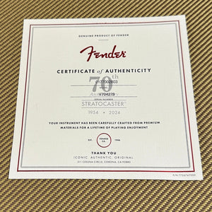 Celebrate the birth of a legend with the 70th Anniversary American Vintage II 1954 Stratocaster. Crafted with a resonant 2-piece ash body finished in nitrocellulose lacquer, this instrument radiates vintage charm. The 1-piece maple neck and 7.25" radius fingerboard with vintage frets provide the smooth playability that players have cherished for decades. 70th Anniversary 1954 Single-Coil Strat® pickups conjure authentic tones that sparkle and bark when pushed. Other appointments include a vintage-accurate synchronized tremolo with cold rolled steel block and bent steel saddles, single-line "Fender Deluxe" tuners and a single-ply pickguard with period correct pickup covers, switch tip and knobs. The included vintage-style tweed case is packed with a bevy of period case-candy to complete the package. This limited-edition model captures the essence of the original Stratocaster, a must-have for collectors and Strat enthusiasts.