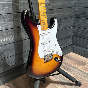 Celebrate the birth of a legend with the 70th Anniversary American Vintage II 1954 Stratocaster. Crafted with a resonant 2-piece ash body finished in nitrocellulose lacquer, this instrument radiates vintage charm. The 1-piece maple neck and 7.25" radius fingerboard with vintage frets provide the smooth playability that players have cherished for decades. 70th Anniversary 1954 Single-Coil Strat® pickups conjure authentic tones that sparkle and bark when pushed. Other appointments include a vintage-accurate synchronized tremolo with cold rolled steel block and bent steel saddles, single-line "Fender Deluxe" tuners and a single-ply pickguard with period correct pickup covers, switch tip and knobs. The included vintage-style tweed case is packed with a bevy of period case-candy to complete the package. This limited-edition model captures the essence of the original Stratocaster, a must-have for collectors and Strat enthusiasts.