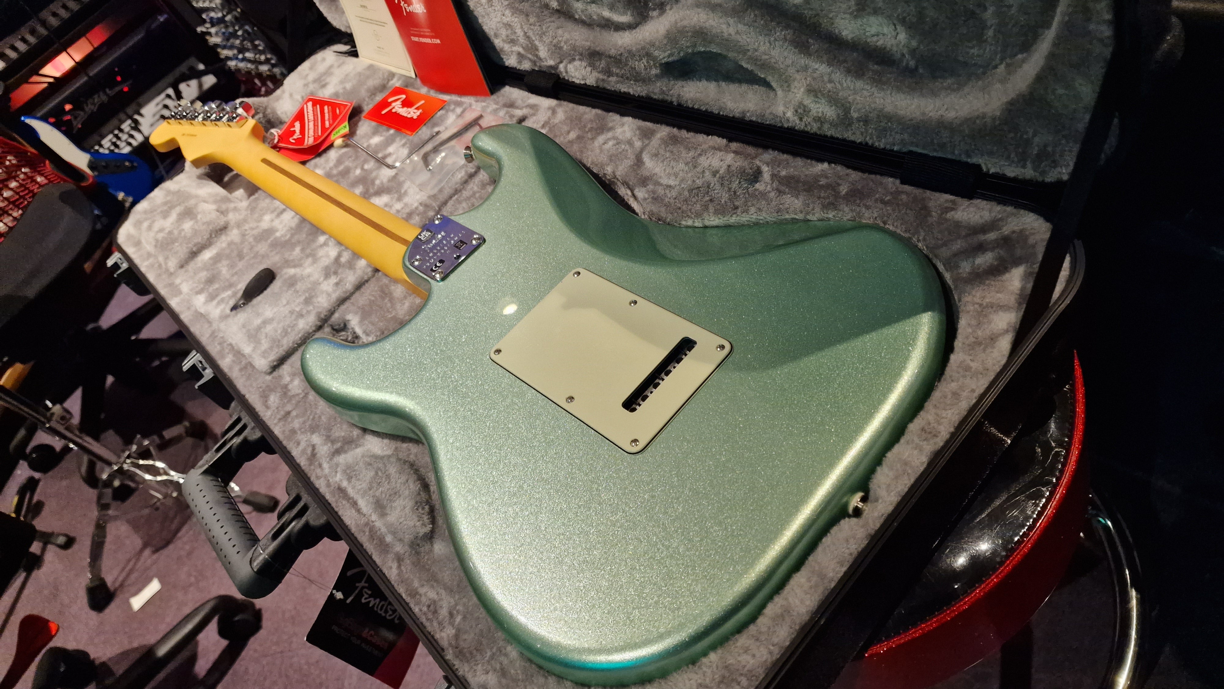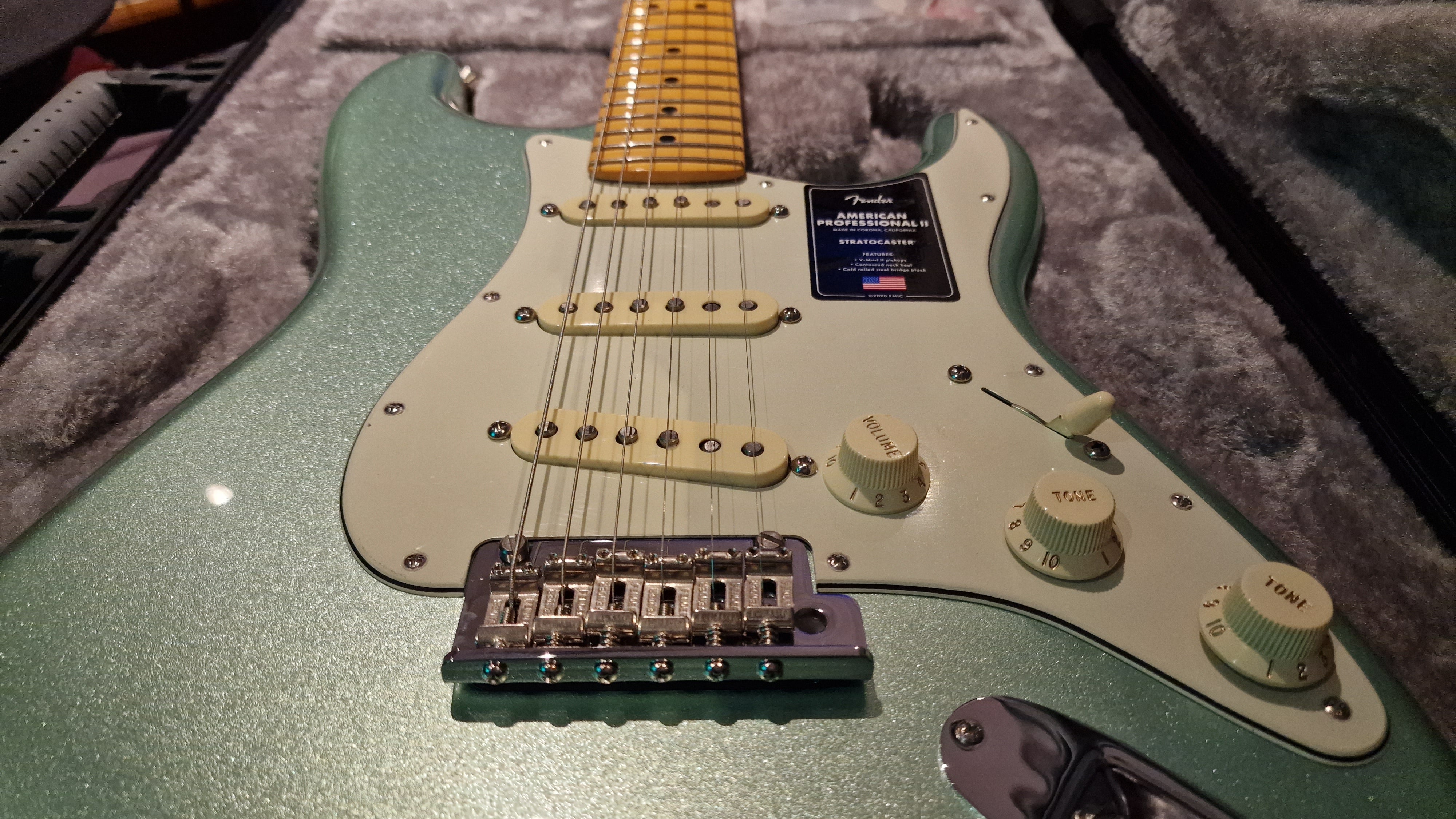 BRAND NEW Fender American Professional II Stratocaster finished in stunning new Mystic Surf Green finish with maple fretboard! This model features so many new upgrades from a freshly designed state-of-the-art neck heel, to brand new pickups with better articulation, to new push/push tone control for engaging the neck pickup when the pickup selector is at the 1 & 2 positions (a first!) to rolled fretboard edges and a newly designed tremolo with steel block. This is the best of the best for the world's best players. There is a global shortage on USA Fenders, and all of the major guitar manufacturers are announcing 10-20% price increases going into the new year, so get it while you can! There are none of these at any of our local Fender shops!