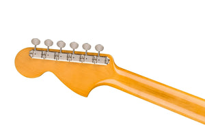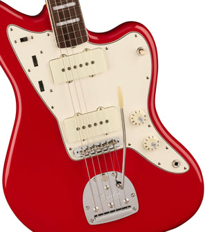 The American Vintage II 1966 Jazzmaster features a comfortable "C" shape maple neck that plays like a dream with a 7.25" radius round-lam rosewood fingerboard and vintage tall frets. Characteristic of production in 1966, this guitar is offered with white neck binding, pearl blocks, single-line "Fender Deluxe" tuners and matching painted headstock (on custom colors only). The patented "floating" tremolo, adjustable bridge with threaded saddles and Pure Vintage '66 Jazzmaster pickups, wired to the signature rhythm and lead circuits, deliver classic tone and authentic Fender feel.