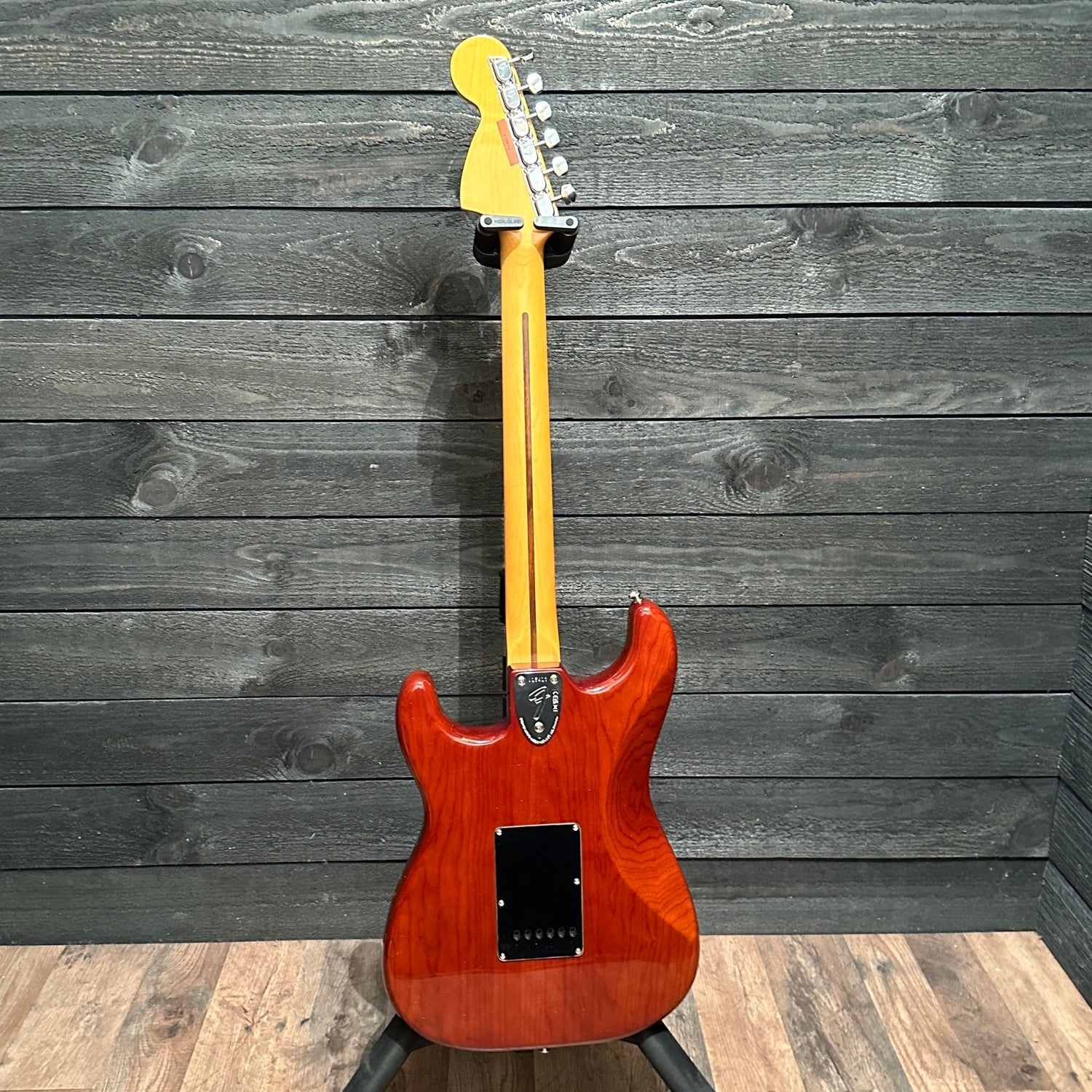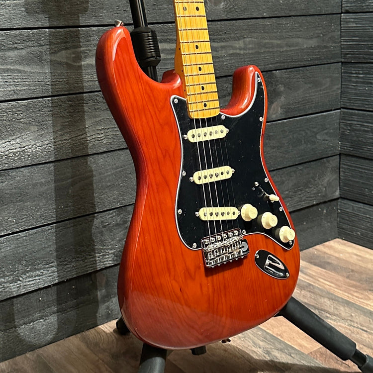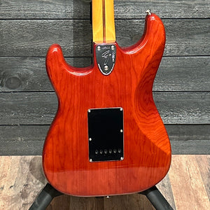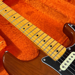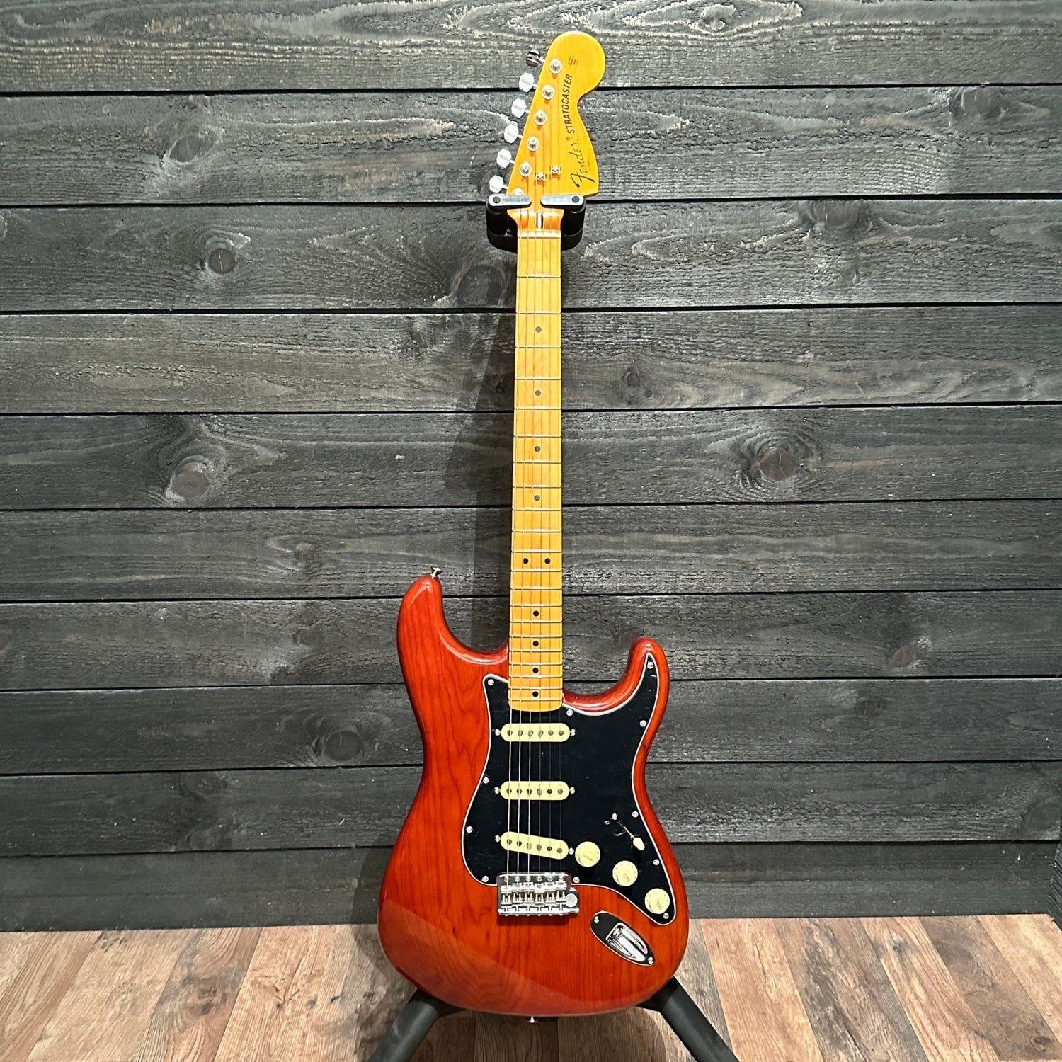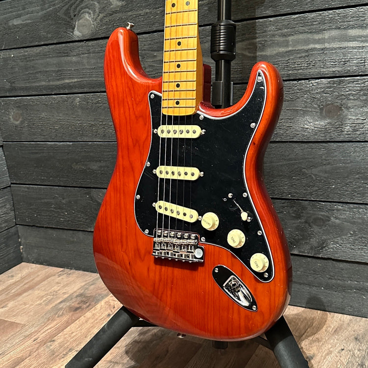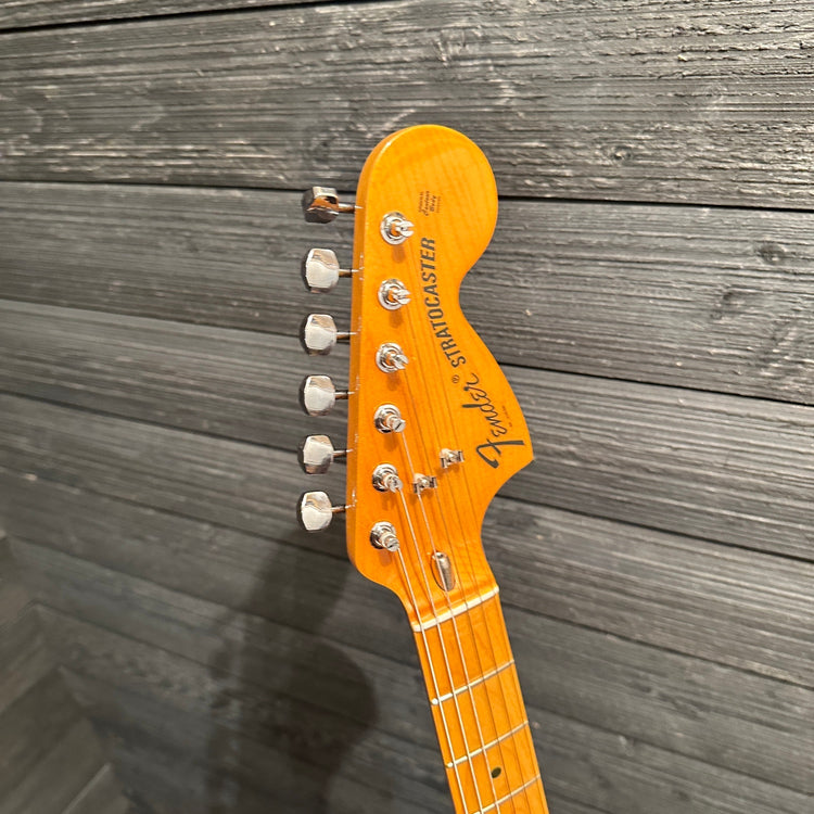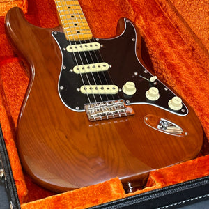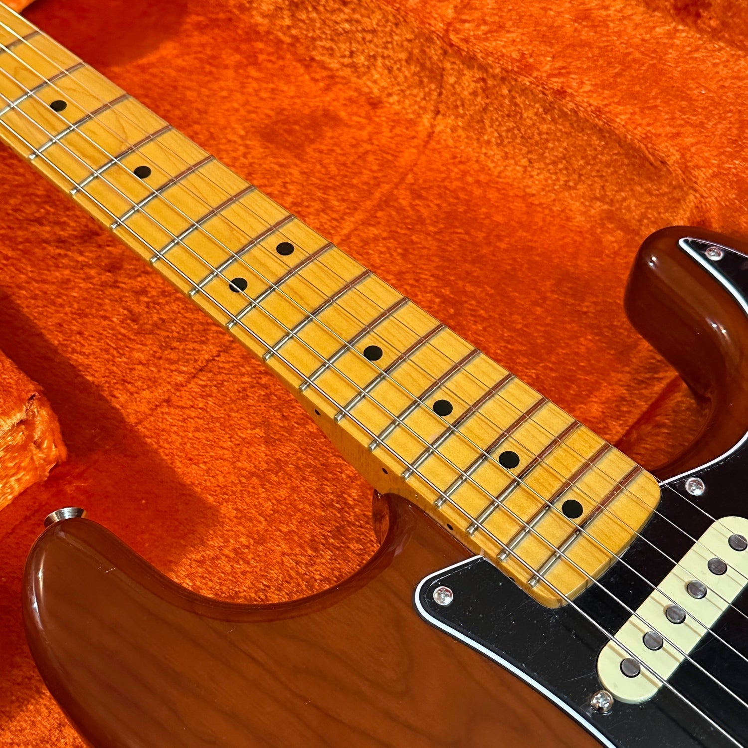 The American Vintage II 1973 Stratocaster® exudes the spirit of the era and is outfitted with a trio of Pure Vintage '73 staggered pole pickups, a large headstock with dual string trees, a convenient "Bullet" style truss rod nut and a three-bolt neck plate with Micro-Tilt™ mechanism. The "C"-shape maple neck plays like a dream with a 7.25" radius rosewood or maple fingerboard and vintage tall frets. The guitar is offered in three classic colors over ash: Aged Natural, Lake Placid Blue and Mocha, the latter being the first custom color ever to feature a black pickguard on a Strat®. Additional features include vintage-style "F" stamped tuners and a synchronized tremolo with bent steel saddles and cold rolled steel block.
