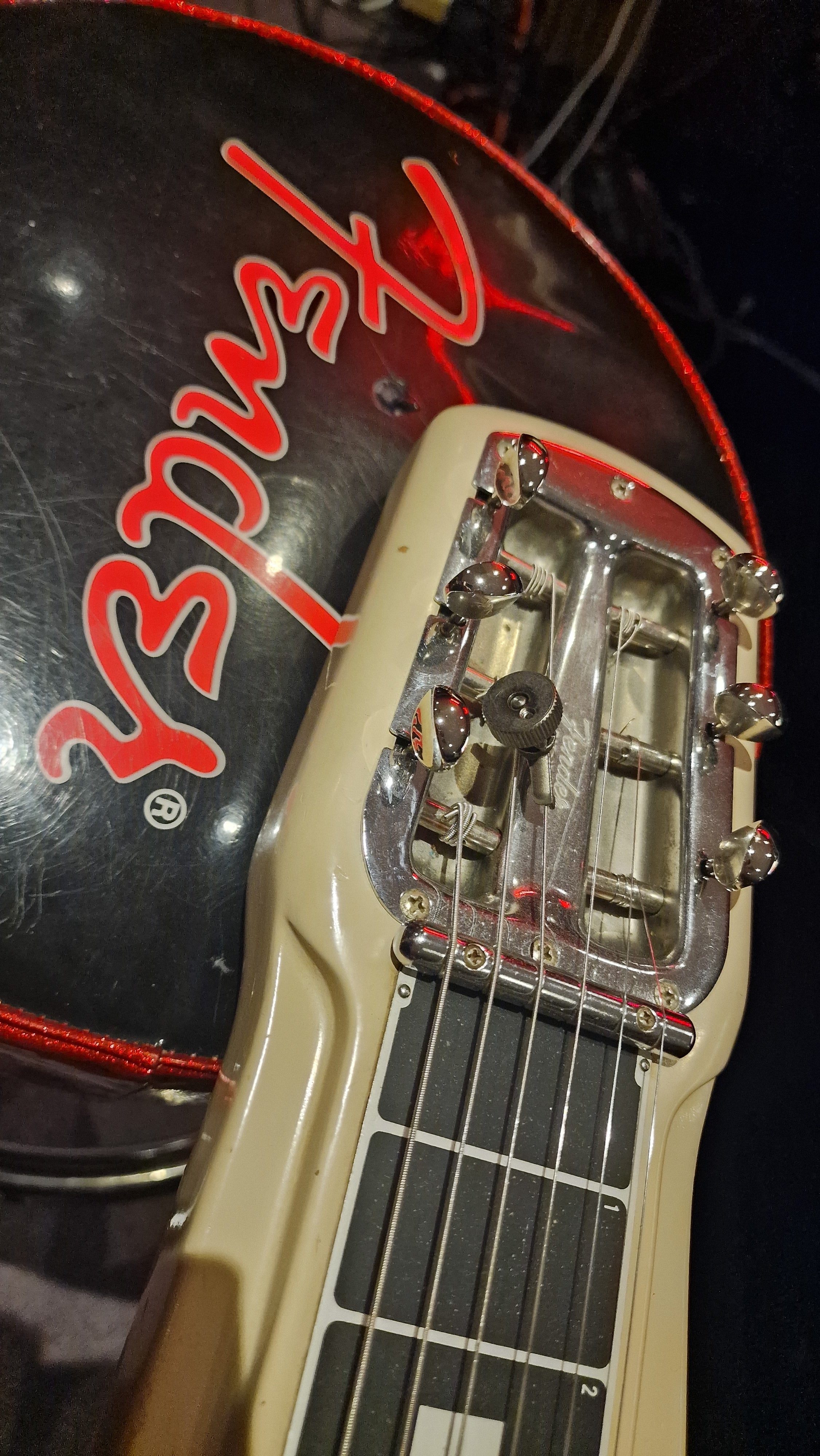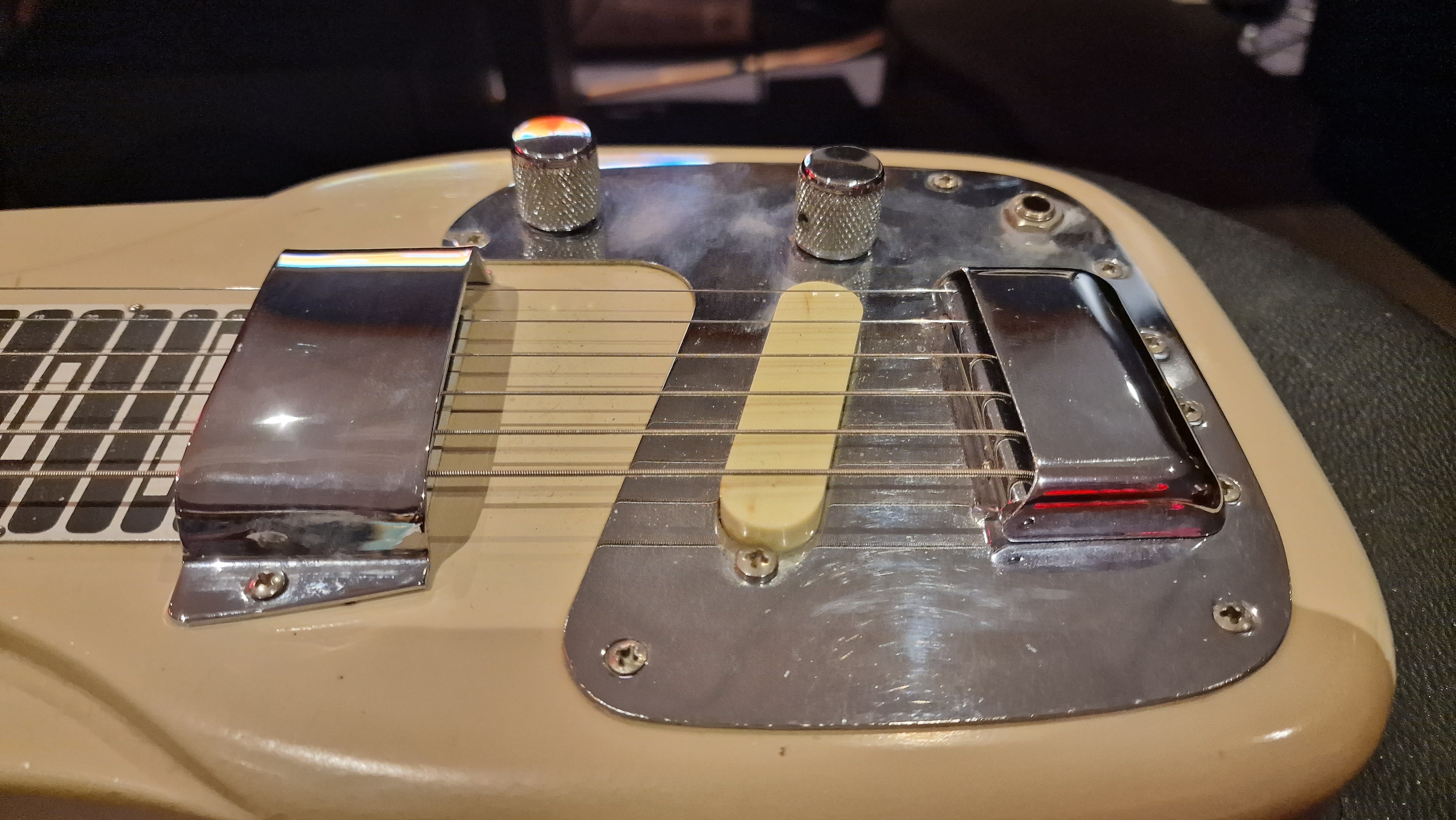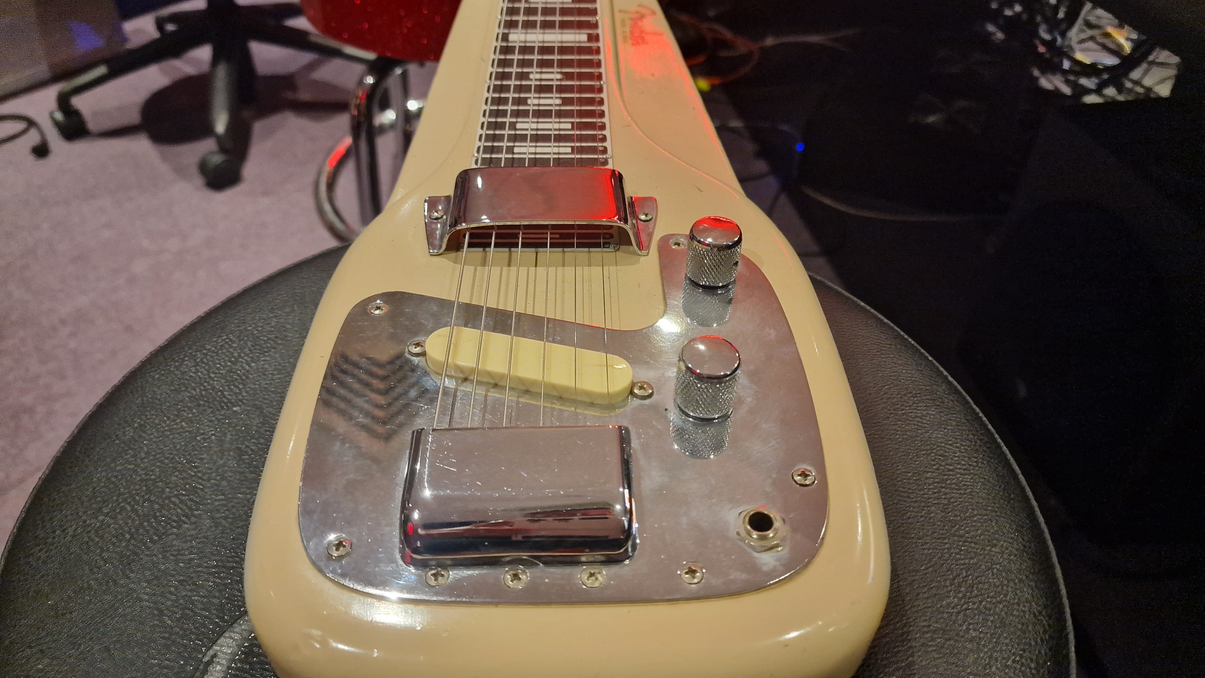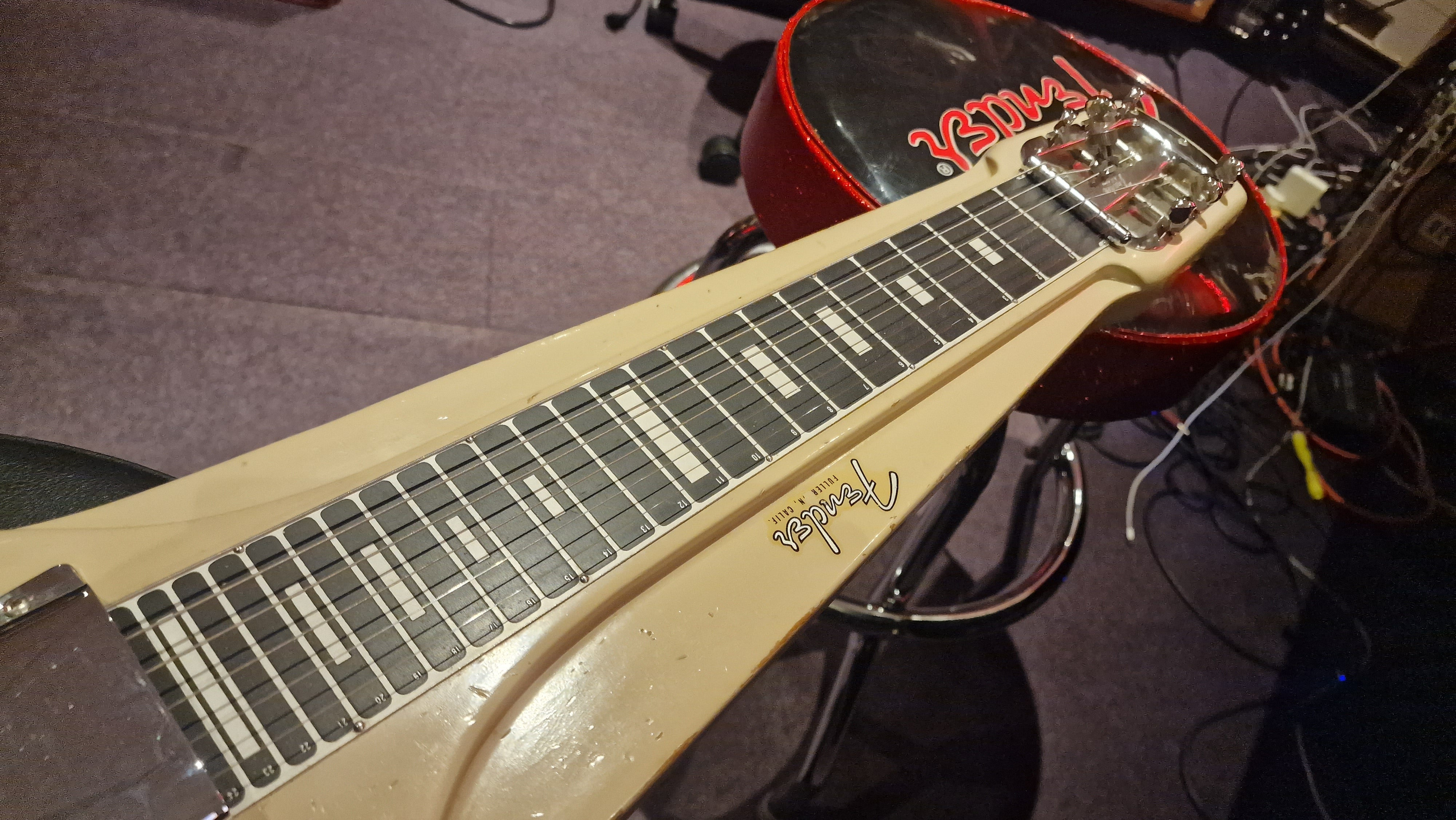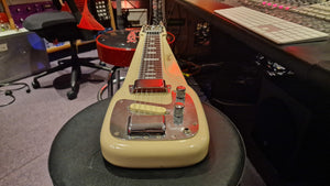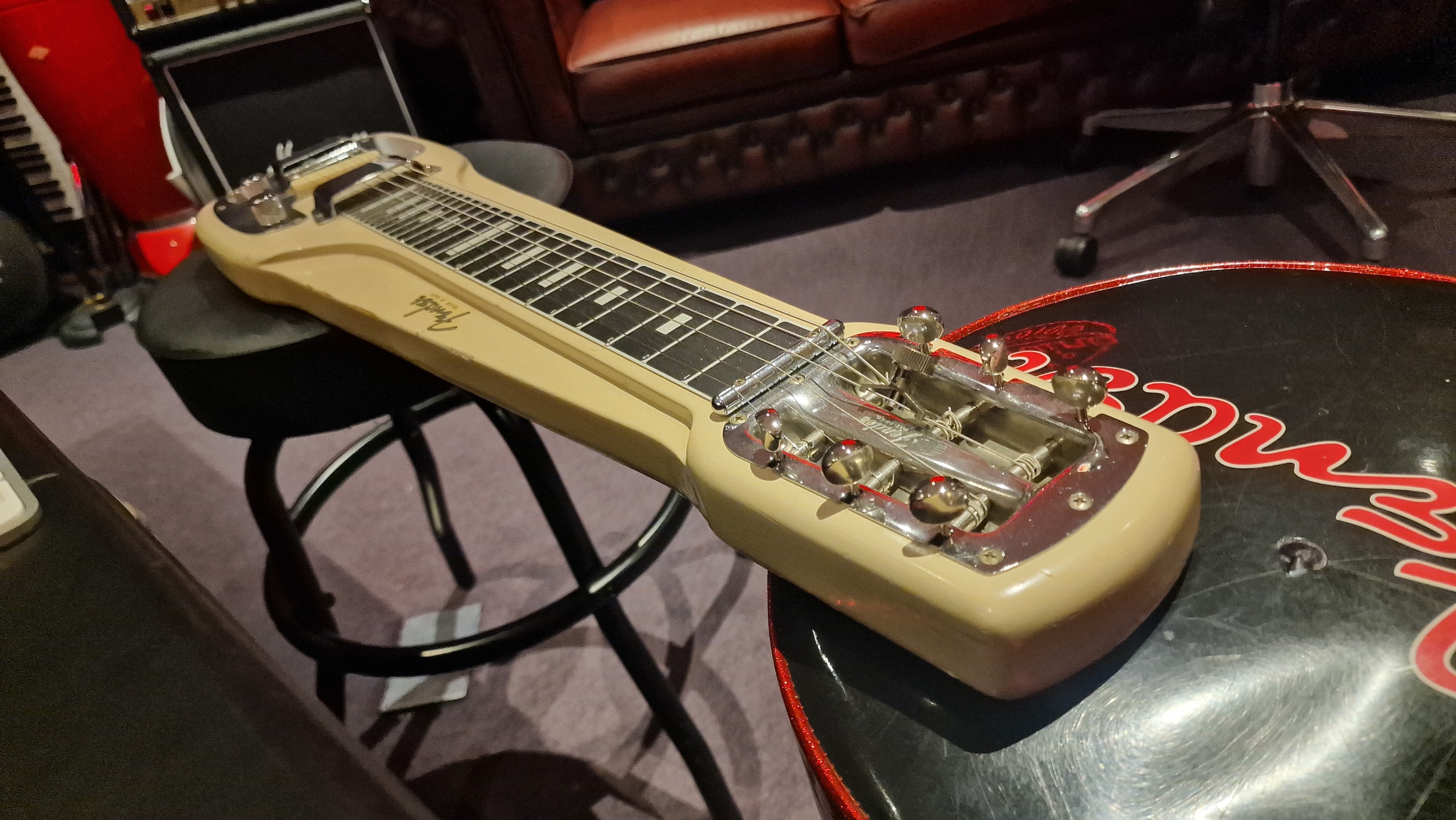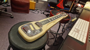Fender Champion Lap Steel Vintage Deluxe Studio Electric Guitar. This is a clean example and highly resonant. There are no legs included, but you can easily source replacements if you prefer to play standing and don't want to place it on a simple table top (more secure). We have several vintage Fender lap steels in our shop, so have a look.