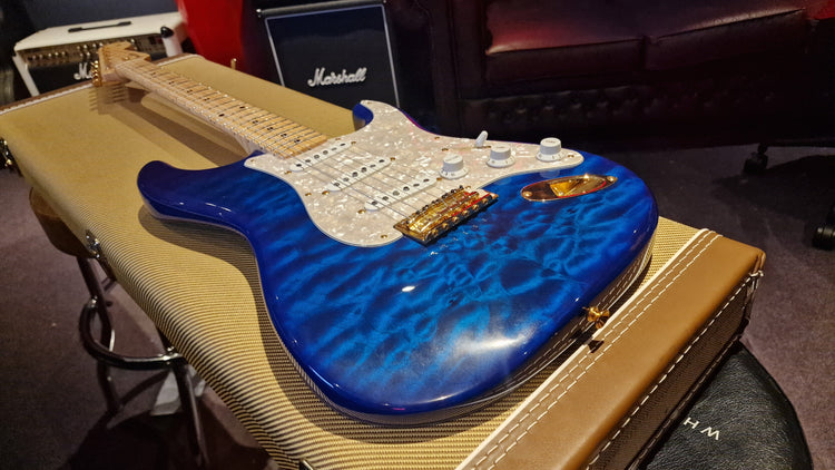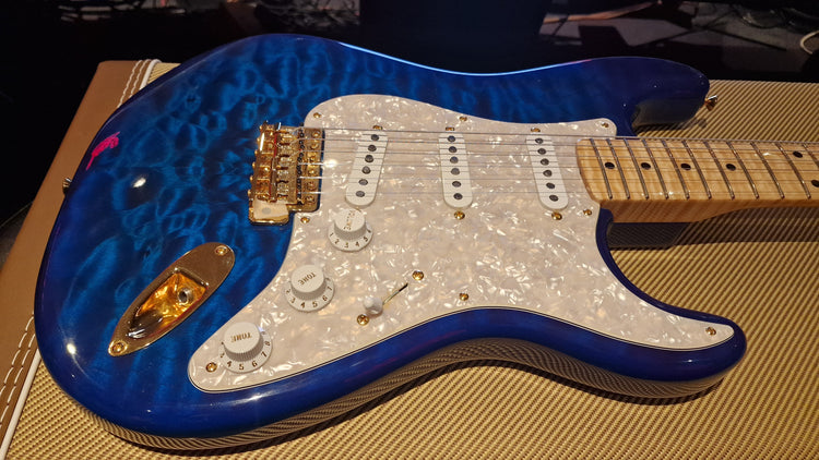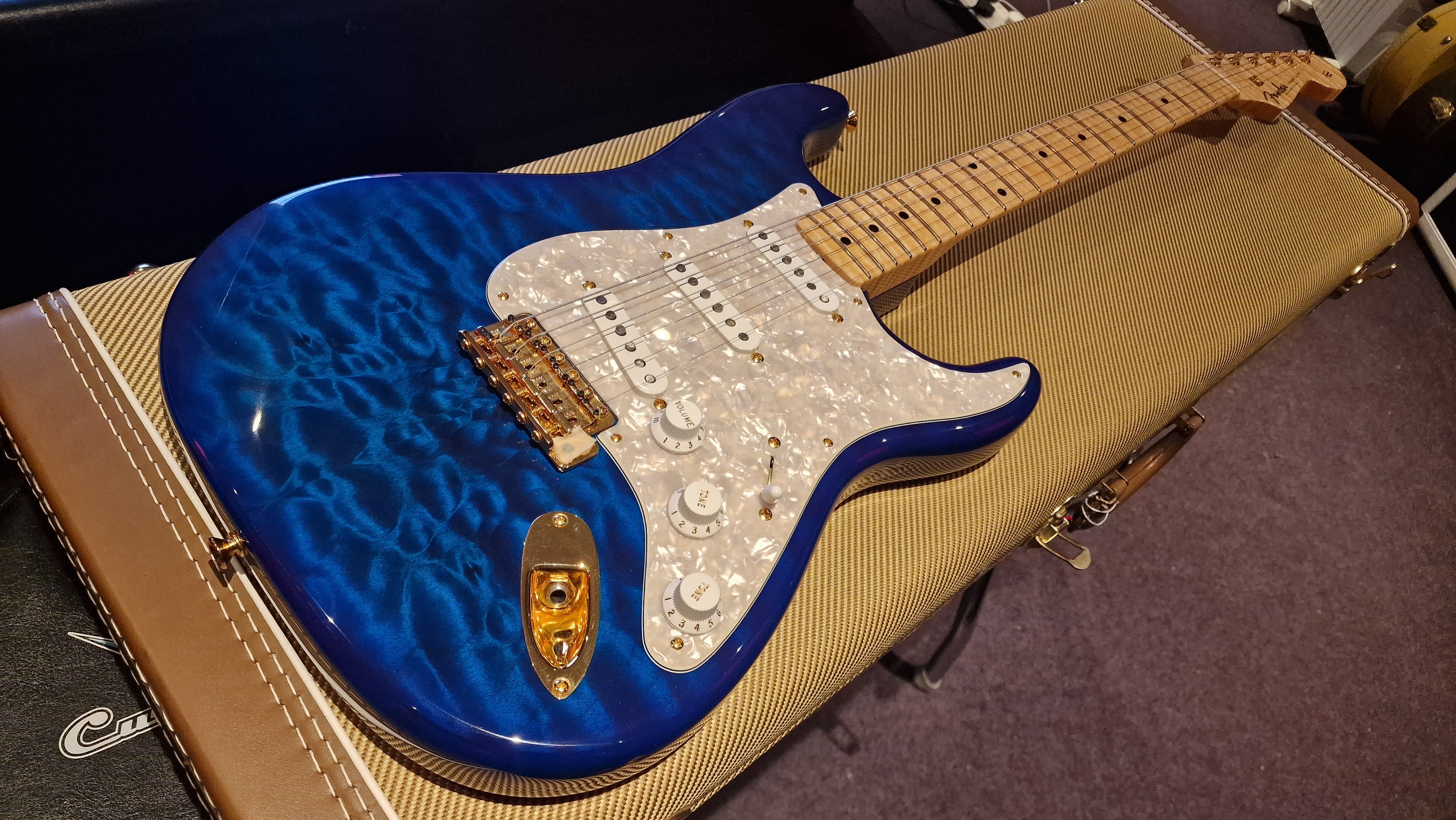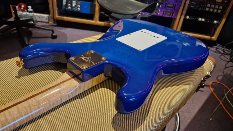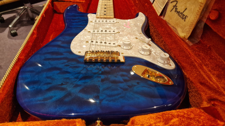 Fender Custom Shop 50s Stratocaster NOS MASTERBUILT by Stephen Stern 2008 Trans Blue Quilt Top, AAA Flame Neck USA American Master Built Strat Electric Guitar For Sale