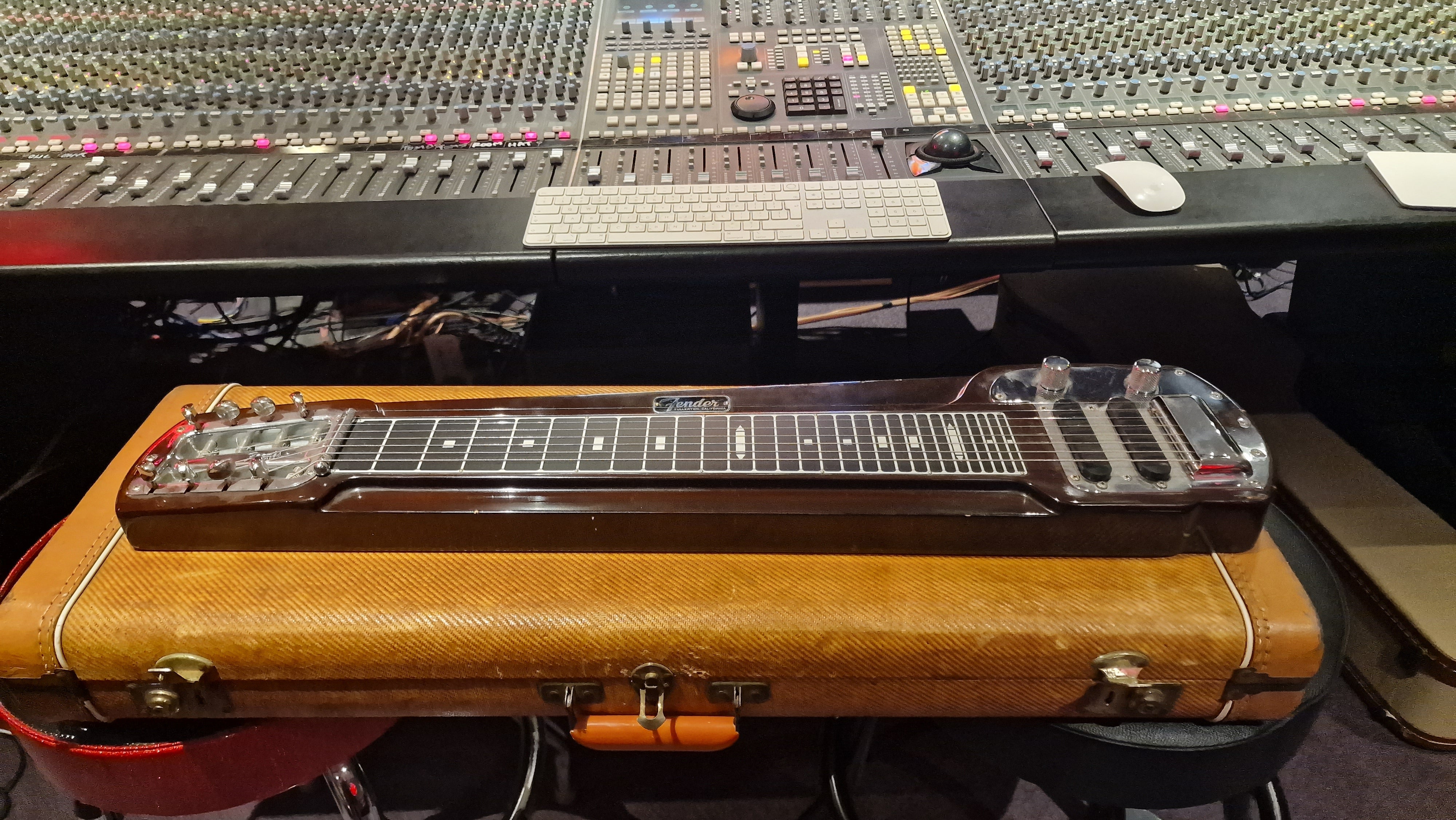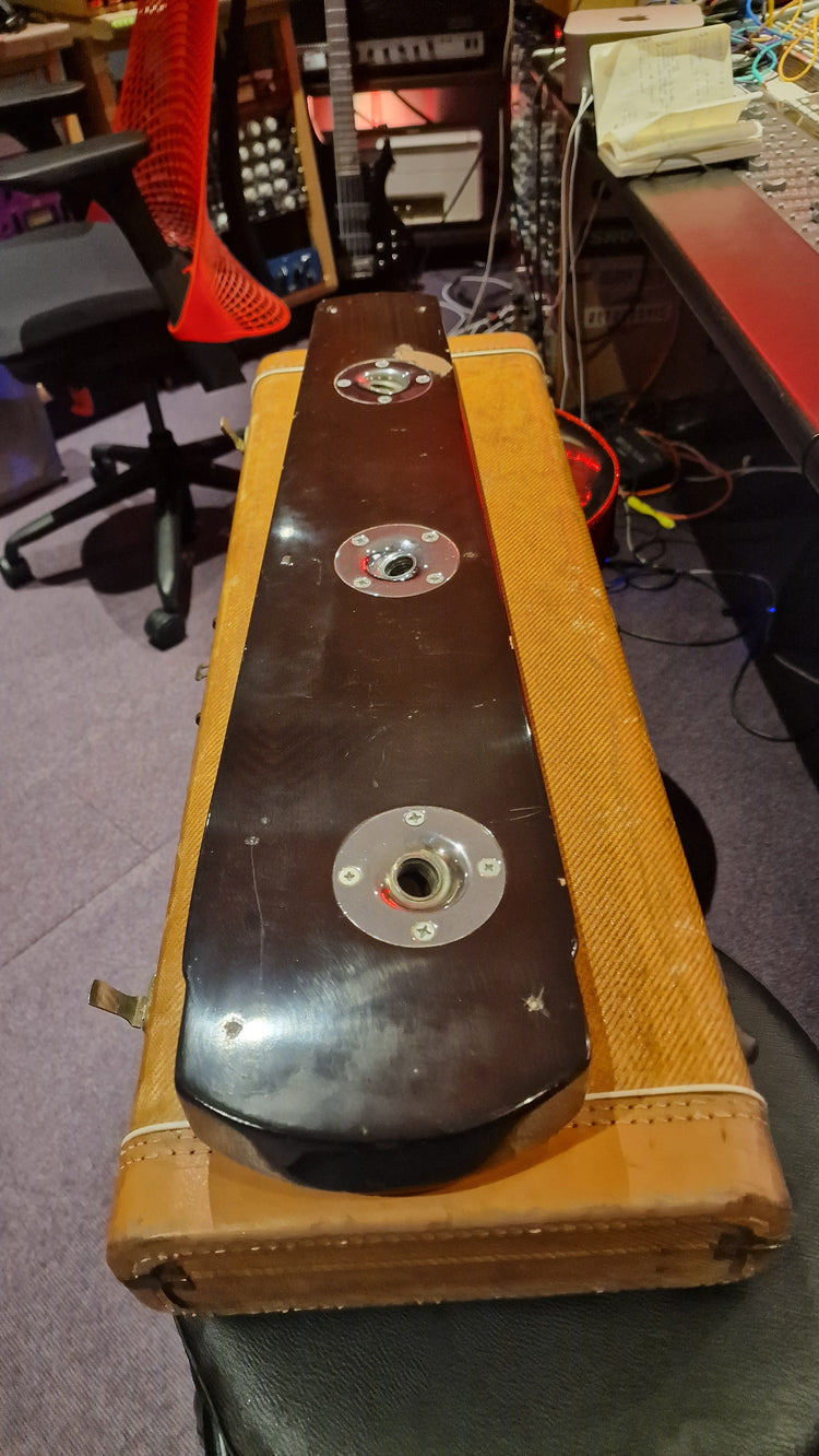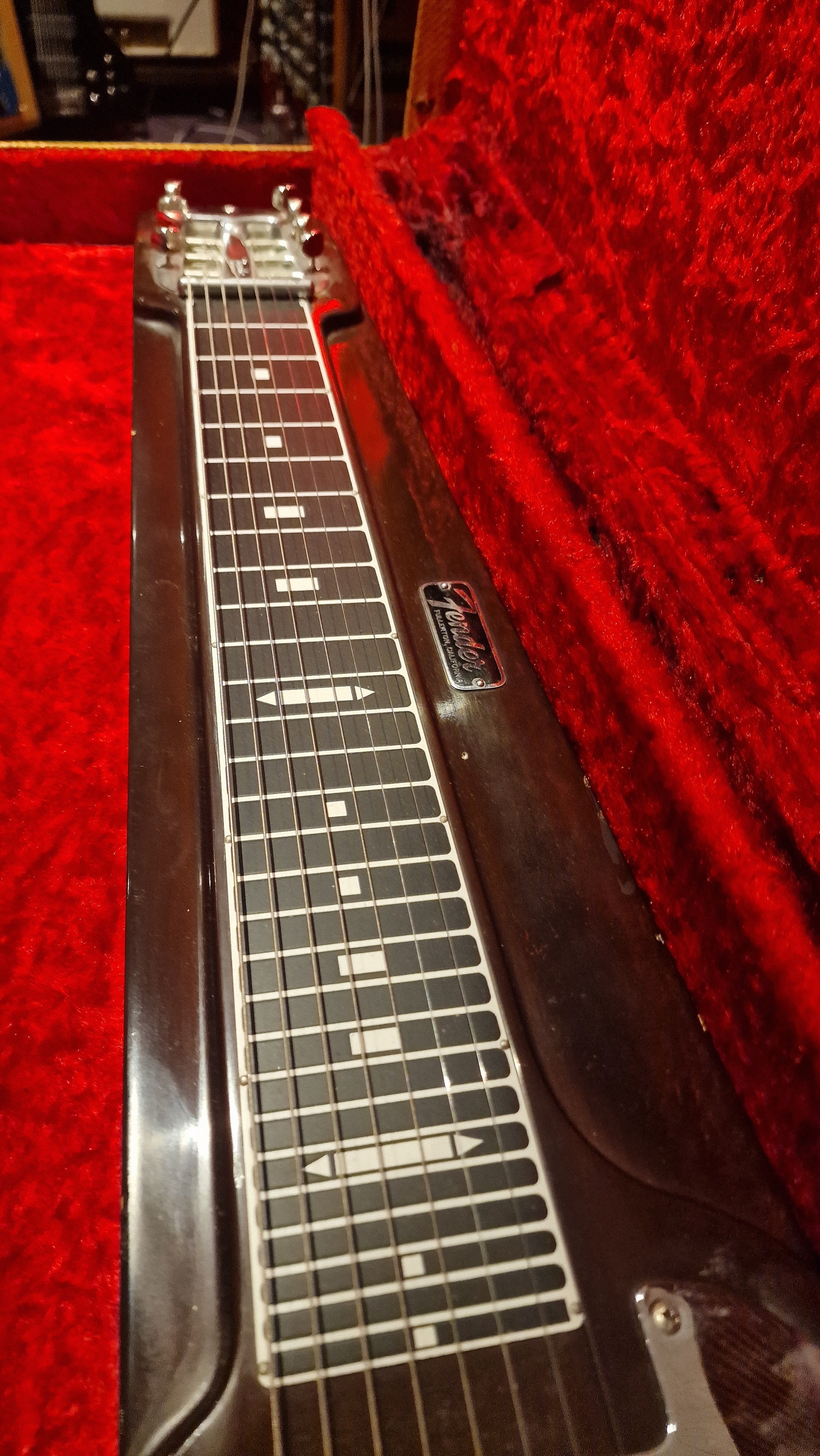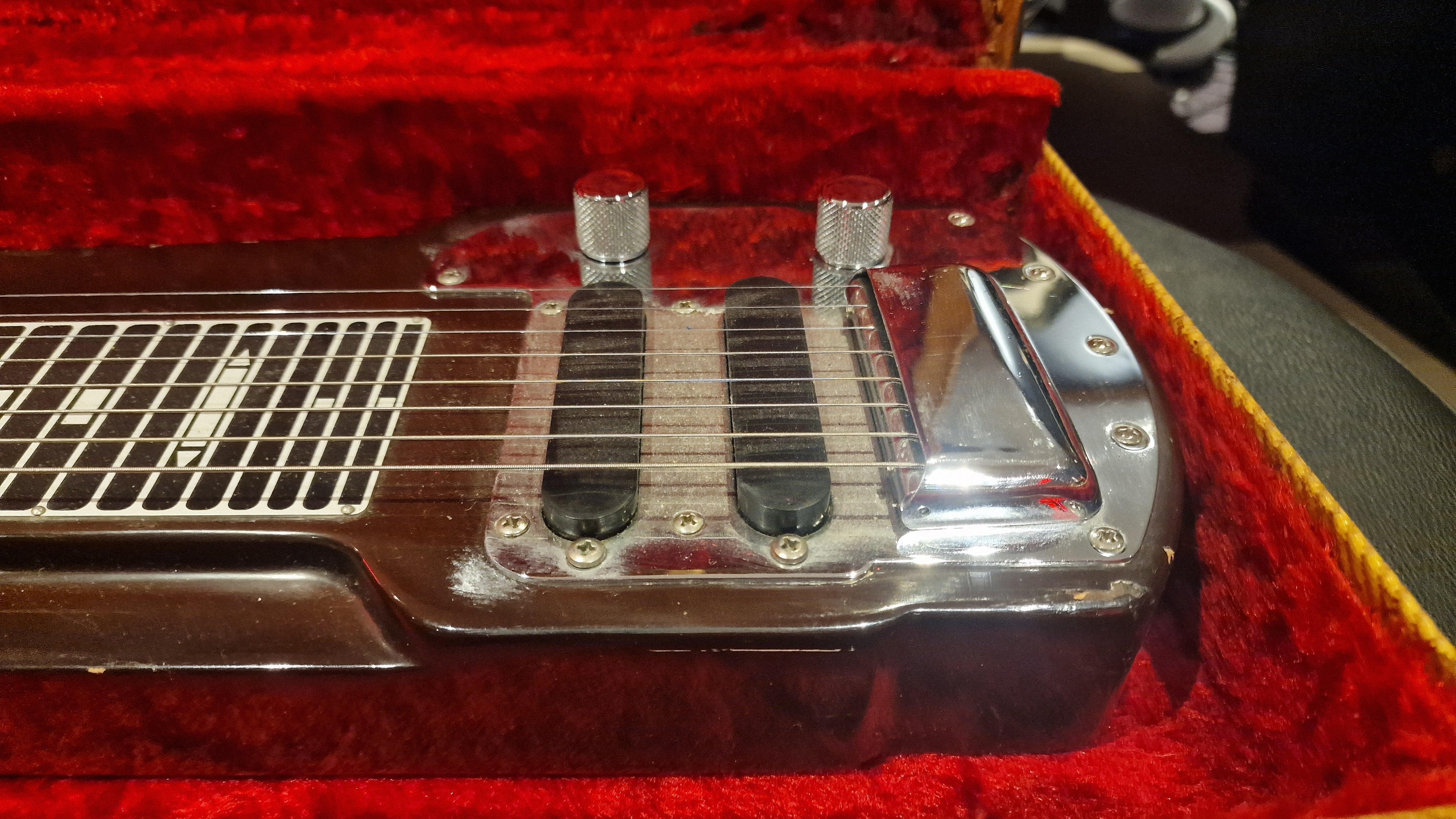 Fender Deluxe 6 Stringmaster Vintage Lap Steel Six String Electric Guitar with suitcase. This is a clean example and highly resonant. There are no legs included, but you can easily source replacements if you prefer to play standing and don't want to place it on a simple table top (more secure). We have several vintage Fender lap steels in our shop, so have a look.